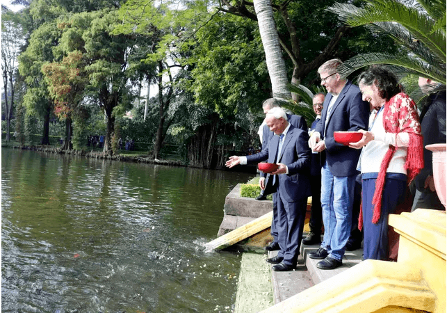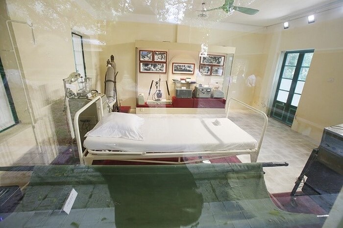 大統領官邸のホーチミン大統領記念エリアは、ハノイ市バーディン区ゴックハ区にあります。ここはホーチミン大統領が革命人生(1954年12月19日から1969年9月2日まで)で最も長く住み、活動した場所であり、ベトナム党と国家の成功後の中央委員会の本部でもある。 8月革命(1945年)。 メモリアルエリアの総面積は10ヘクタール以上で、住宅、庭、庭園、芝生、魚のいる池、小道が含まれており、そのうちのハイライトは3つの構成要素である遺物です:ハウス54、アンクル・ホーの高床式の家、そしてアンクルホーの家67。 ハウス54 ホーチミン大統領は、ほぼ 4 年間 (1954 年 12 月から 1958 年 5 月中旬まで) この家に住み、働いていました。その後、大統領官邸の庭に建てられた高床式の家に移ったが、毎日の食事や定期的な健康診断のためにここに戻ってきたという。したがって、ハウス 54 は、ホーチミン大統領の生涯の最後の 15 年間の日常生活に関連した場所であり続けています。 ハウス54には3つの部屋があり、池に隣接する側がオフィス兼来客を迎える場所で、真ん中がダイニングルーム、その次が寝室です。 ホーチミン大統領の食堂には、大統領が毎日よく使う食器セットが飾られている。寝室では、ホーチミン大統領の持ち物はすべての普通の人々と同じようにシンプルでした。夜に本を読むためのテーブルと椅子のセット、余分な装飾や大騒ぎのないシンプルな小さなベッド、ワードローブ、ワードローブにはただそれだけがありました。毎日着る服や、来客時や出張時に着るカーキの服…。 House 54 にある文書と遺物の総数は 400 ユニット近くあり、特に紙の遺物は 300 ユニット以上あります。これらは最も本物の証拠と考えられ、ホーチミン国家主席の極めて純粋で単純、それでいて秩序的で科学的な日常生活を最も強く印象づけるものである。 ホーおじさんの高床式の家 ここはホーチミン大統領が夏に住み、仕事をする場所であり、政治局の同志、省庁、支部、地方自治体の責任者、特にホーチミンに行った南部からの将校や兵士たちと会い、仕事を交換する場所でもある。治療と仕事のために北部へ。 高床式の家の上階には彼のオフィスと寝室があります。オフィスには机、椅子、本棚があります。本棚の一番下の棚には、ホーチミン大統領がペンとして毎日使っているタイプライターがある。 寝室の生活設備はシンプルです。スゲマットを敷いた木製のベッド、冬には追加のマットレス、綿の毛布、小さな電気ヒーターがあります。 寝室の机の上には、タイ在住のベトナム人から贈られた本、雑誌、帽子、トランジスタラジオが今も残っている。ベッドの頭側に置かれた小さなキャビネットには、時計と、彼が読みかけていた『13世紀のモンゴル侵略に対する抵抗戦争』という本がまだ残っている。 ホーチミン大統領は、生涯最後の 11 年間 (1958 ~ 1969 年) をこの家に住み、働いていました。 現在、ホーおじさんの文書約 250 点と高床式住宅の建築物と敷地全体が、ホーチミン国家主席がここに住んで働いていた最後の時代のまま保存され、保存されています。 ハウス67 この住宅は高床式住宅の裏側(約30メートル離れたところ)にあり、1967年5月1日に着工し、1967年7月20日に落成した。ここはホーチミン大統領が政治局と頻繁に会談した場所であり、米帝国主義者が北朝鮮への攻撃をエスカレートさせた時期(1967年から1969年)に勤務し、そこで治癒し亡くなった場所でもあるため、よくこの場所と呼ばれている。ハウス67またはDK2。 1967年、アメリカ帝国主義者の空軍と海軍による北での破壊的戦争を拡大する冒険はますます激しくなった。ハノイ、ハイフォン、その他多くの都市と多くの工業地帯が昼夜を問わず爆撃されました。そのような状況に直面して、政治局は、米軍機が突然爆撃したときに人々の絶対的な安全を確保するために、高床式住宅の後ろに頑丈な住宅を建て、右側に防空壕を設けることを決定した。軍事技術司令部の下にある建設省の将校と兵士は、このプロジェクトの設計と建設の任務を割り当てられました。壁の厚さは60センチ以上、天井の厚さは1メートル以上、すべてコンクリートと鉄筋で造られています。 ホーチミン大統領はこの家を自分のものとして受け入れなかった。同氏は、中央の同志らと協力して国の重要な問題について話し合う政治局の会合の場としてそれを使用することを提案した。 1969 年 8 月 25 日以降、ホーチミン大統領は重病に陥り、彼の状態は日に日に悪化し、複雑になっていきました。政治局の決定により、67番議院が彼の治療の場となった。ホーおじさんの健康を気遣うために、政治局の同志、教授、一流の医師たちがここに集まった。ホーチミン大統領は高齢で健康が弱かったため、重病を克服できなかった。ベッドの横の小さなキャビネットの時計と壁掛けカレンダーは、彼が去った瞬間に止まりました:1969年9月2日午前9時47分。 過去 40 年間にわたり、この家には 100 点近くの