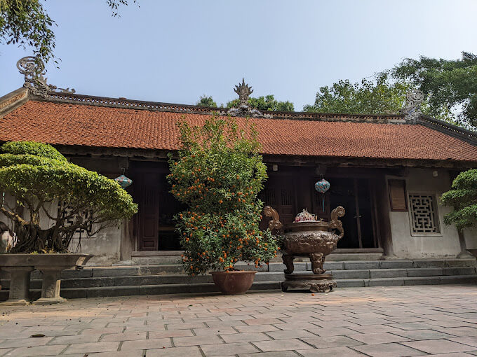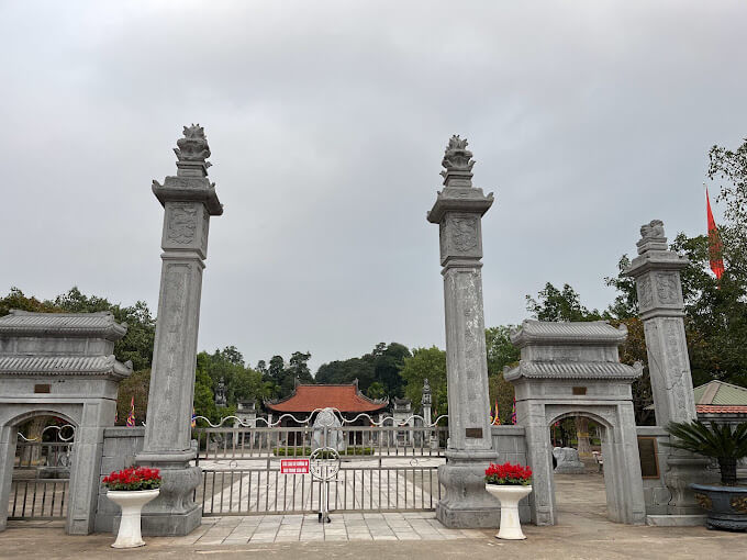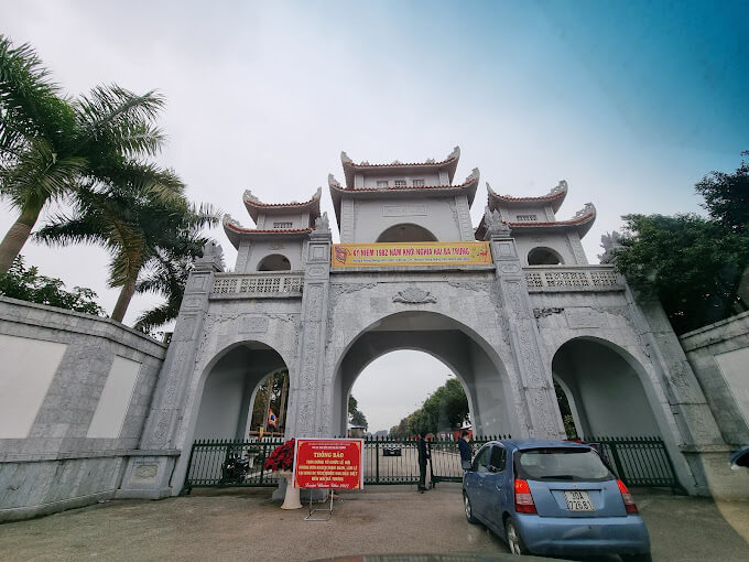ハロイ寺院としても知られるハイ バ チュン寺院は、ハノイ市メーリン地区メーリンコミューンのハロイ村に属しています。この寺院は、紀元 40 ~ 43 年に東漢王朝の支配を打破し、独立と国家の自治を回復した反乱の指導者である国民的英雄、チュン トラックとチュン ニーの 2 人の殉教者を崇拝しています。 紅河堤防を見下ろす高く広い土地に位置し、敷地面積は129,824.0平方メートルで、山門、客殿、外門、内門、鼓楼、鐘などが整備されている。塔、左の家 - フー・モク、ハイバ・チュン寺院、ハイバの父と母の寺院、ティ・サック氏の父と母の寺院、ハイバ・チュン王朝の女性将軍の寺院、ハイバの男性将軍の寺院チュン王朝、記念碑の家、チュオン・チン同志の秘密の郵便ポスト、半円形の湖、象の目の湖、象の鼻の流れ、象の水浴び湖、メーリンの古代城塞... - 山門: 2 階建てで、下層には 3 つのアーチ型の扉があり、上層は火縄式で造られ、2 階 8 屋根があります。屋根は太陽の両側にある一対の龍の形で装飾され、マッチの首には4枚の花びらの花が、ナイフの角には火の葉が、柱の角には火の葉が飾られています。柱の本体は花と葉の形をしています。 - ゲストハウス: 7 つの部屋で構成され、切妻壁のスタイルで建てられています。 - 外祭門:四本柱とも呼ばれる青銅柱の様式で建てられています。柱の上部には葉を裏返したような4羽の鳳凰が描かれ、その下の提灯箱には四神獣が描かれています。四柱システムは 1 つの正門と 2 つの補助門に分かれています。 - 内門: 1 つの部屋、2 つの棚で構成され、屋根の端とストリップの端はレモンの花の形で覆われ、切妻の両側には 2 つの龍の頭があり、曲がり角には 2 頭の陶製の豚が崇拝する姿勢で覆われています。四隅の剣は曲線を描き、屋根を支える垂木は「上に梁を積み、下に梁を通す」形式で作られています。 - 鐘楼と鼓楼:鼓楼と鉦楼はすべて4つの湾曲した屋根のスタイルで作られ、端はレモンの花の形で覆われ、2つの破風は虎の形で覆われ、上の階は4つの屋根で開きます。ドアは四方向を向いています。 - ハイバーチュン寺院: + 正面祭壇は7つの区画と2つの棚で構成され、切妻壁のスタイルで建てられ、屋根は釘のスタイルで覆われ、両端は堂の形をしており、両岸の端は鳳凰の形をしていますダンス。祭壇の前には、ひざまずいた一対の石象が置かれています。 「マッチの積み重ね」のスタイルで作られた、屋根が湾曲した 2 つの小さな門。 2 つの小さな門を繋ぐのは 2 つの「風羽」の絵で、その前には象徴的な柱があり、柱の上部は鶏の形をしており、灯籠には 4 つの神聖な動物が浮き彫りにされています。 + Trung Teの家は、5つの区画、2つの棚で構成され、切妻壁のスタイルで建てられ、屋根はレモンの花の形で覆われ、中央には虎の形の屋根、2つのマッチを重ねた屋根があります...真ん中手前には石の香炉があります。 + Trung Te の中央の空間にハーレムが接続されています。これは 3 つの区画からなる 1 部屋の家で、垂直に建てられ、Trung Te と結合してディンの字の形をした全体的な建築を形成しています。ハーレムの屋根を支えるフレームは「上鉦、下梁」「上鉦、下下」の構造になっているため、4組で構成されています。列状の柱は直径35cmで、脇にはThoの文字と花と葉が彫られています。 - ハイ・バ・チュンの父と母を崇拝する寺院: 祭壇とハーレムを含むディン型の間取りがあります。正面の祭壇は、切妻壁のスタイルで建てられた 5 つの部屋で構成され、屋根は月の両側にある 2 頭の龍で覆われ、堤防は釘のような形をしています。ハーレムは1部屋と2部屋で構成されています。 - ティサック氏の父と母を祀る寺院:ハイバーチュン寺院の左側にあります。寺院は南西に面しており、祭壇とハーレムを含むディンの字の形をした建築計画があります。 - ハイバチュン王朝の女性将軍の寺院: 切妻壁のスタイルで建てられた 5 つの区画を含むモノグラム形の間取りがあります。 2つの側室にはトー形のドアがあり、遺物に光をもたらします。屋根支持システムは「上鉦、中中、下縁、後壁」の形で構成されているため、6セットで構成されています。祭壇の中央には玉座と位牌が置かれた高い台座が建てられ、その前には香炉があります。 - ハイバーチュン時代の南方将軍を祀る寺院:北東を向いており、ニャット形の建築計画があり、5つの区画、切妻壁を含み、「上部の鉦台、中鉦の形で構造されているため、6つのセットで構成されています」 ". を送信し、7 つのポーチと後壁を下げます。祭壇の中央には、祭壇とタブレットが置かれた高い台座が建てられます。 - 左/右モックハウス: 7つのコンパートメントの家で、切妻壁、屋根の端、レモンの花の形で覆われたストリップの端のスタイルで建てられ、屋根の支持システムは「上部の鉦の価格が梁に重なり、中央の梁の形で構造化されています」 、下部トラップ」。寺院の右側のポーチ前には 8 頭の象、馬、