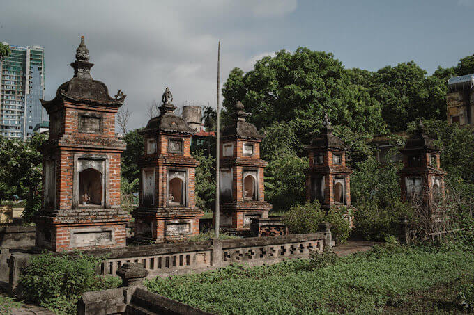 ラングパゴダはラン村にあります。ラングまたはケランは、現在ハノイのドンダー地区ラントゥオン区にあるイェンラン村の名前です。ランパゴダは、当時の著名な人物であるトゥ・ダオ・ハン禅師ゆかりの仏陀と聖人を崇拝する寺院であるため、多くのユニークな特徴を持っています。 李朝 (1010 ~ 1225 年) の間、仏教が栄えました。多くの寺院が建設され、拡張されました。タンロンとハノイでは、この時期にチャンコック塔、ホエナイ塔、一柱塔、キムリエン塔、ラン塔などの多くの塔が修復、建設されました。中でもランパゴダは、当時の著名な人物、トゥ・ダオ・ハン禅師ゆかりの仏陀と聖人を祀る寺院であるため、多くのユニークな特徴を持っています。 ラングパゴダはラン村にあります。ラングまたはケランは、現在ハノイのドンダー地区ラントゥオン区にあるイェンラン村の名前です。ランパゴダはこの区のランパゴダ通りのすぐ隣にあります。ラング パゴダは、リー タン トン王 (1128 ~ 1138 年) の治世中に、有名な禅師トゥ ダオ ハンを生んだトゥ ヴィン夫妻の旧家のすぐそばに建てられました。禅師トゥ・ダオ・ハンはかつてファティチ・パゴダ(ハノイのサイソン)で修行をしており、ホアンロン地区の著書によると、トゥ・ダオ・ハンはかつて仏教魔術を学ぶためにタイティエンに行き、雲に乗り、足を踏み出す方法を知っていたという。水、空へ飛び、這い降りる大地、計り知れない魔法。トゥ・ダオ・ハンがサイソン山に修行に行った後、ソンヒエン侯爵の息子(リー・ニャン・トンの弟)として転生し、リー・タン・トンとして王位を継承した(1)。ラングパゴダは仏陀を崇拝することに加えて、トゥダオハンとリータントンも崇拝しています。 朗塔の文字通りの名前はChieu Zen Tuです。チエウ・ティエン・パゴダの像を造った石碑(チエウ・ティエンは自己慈悲の像を創造する)は、ティンドゥック4年(1656年)に刻まれ、今もパゴダに保管されており、パゴダの名前を次のように説明しています。祝福された土地と神聖な世界には、最高のチエウ ティエン パゴダしかありません。」明らかに縁起が良いことから「チュウ」と呼ばれています。ここはダオ・ハン禅師の生誕の地であるため、禅と呼ばれています。 李朝時代の塔と塔像を研究する准教授。トラン・ラム・ビエンは次のように書いている:「第 3 のタイプの塔は李王朝に起源を持ち、ラン塔である。タイパゴダや2つのケオパゴダ(ナムディン、タイビン)と同様に、古代には寺院性が強かったであろう「寺院」的な建築のパゴダです。多くの貴重な仏像で仏陀を崇拝することに加えて、聖トゥ・ダオ・ハンを「道教」の祖先として崇めることにも大きな関心が払われています。時々人々はそれが仏塔であることを忘れますが、トゥ氏は僧侶であるため、彼の後継者はかつては魔術の要素を備えたシャーマンとしてのトン氏またはトゥ氏でした。そのため、ここで古代の塔や先祖代々の家を見つけるのは困難です。 この寺院を探索する場合、上記の説明は完全に合理的です。この塔には 2 つの 3 つの入り口がある門があり、そのうちの外側の 3 つの入り口の門は、研究者らによって、4 本の大きな角柱と 3 つの小さな湾曲したレ チュン フン時代 (1533 ~ 1789 年) の王宮の儀式用の門であると考えられています。屋根が取り付けられています。柱リブ。この 3 つの入り口の門は、ヴォイ フック寺院の門、タイ フォン塔の門、キム リエン共同住宅の門 (ハノイ) など、後に修復された他の文化作品のモデル 3 つの入り口の門と考えられています。 チエウ ティエン パゴダの特注の石碑は、ラン パゴダの風景を称賛し、「この世界は三千世界の頂点にある。この禅の境地は禅の三十六境を超えます。それは本当に最も有名な場所であり、世界中のどの寺院もそれに匹敵することはできません。右側のフオンタインの良いエネルギーがどこまでも広がり、左側のトーリッチ川が周囲を流れています。首都の周囲何千マイルにもわたるニーハは、群がる緑のドラゴンのように蛇行し、タンビエン山脈は、リュートを演奏するホワイトタイガーが迎えに来るように、美しい空気に満ちています。 これはソンナム地域で最も美しい風景です 神聖な土地は富と才能のある人々を形作ります。 天は聖母、仏陀の子を生んだ。」