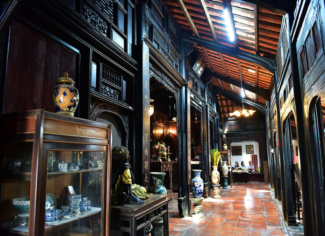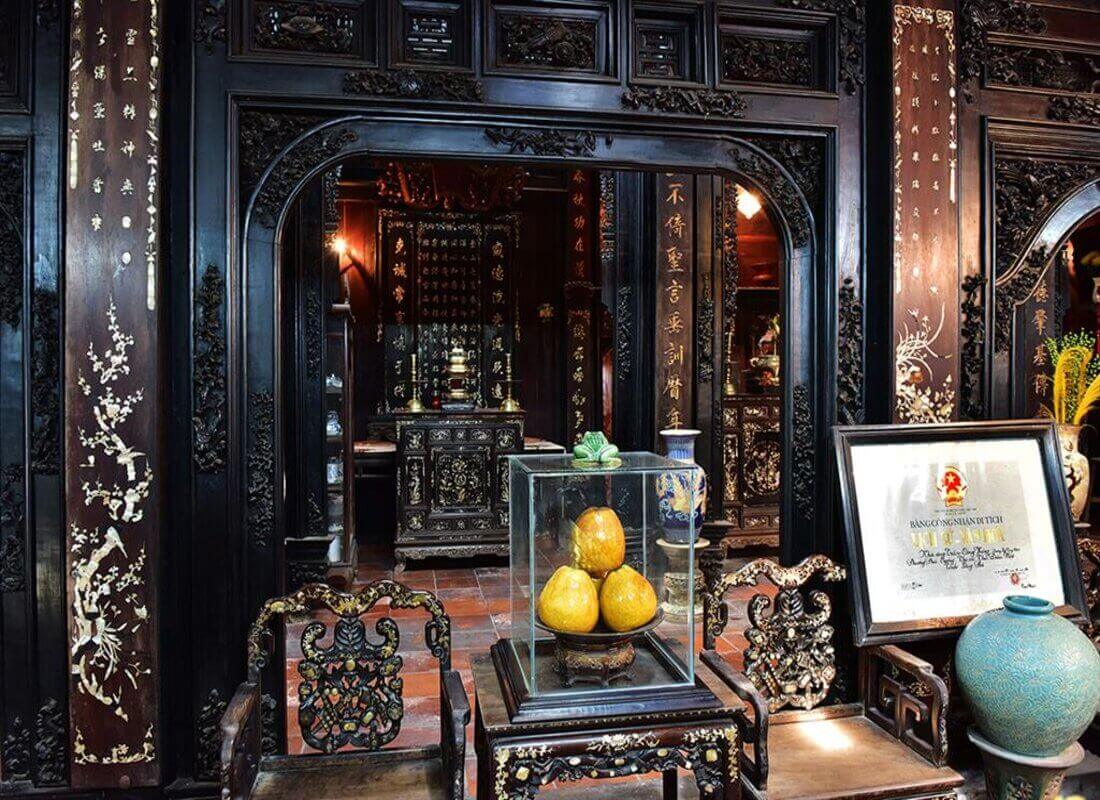 チャン ヴァン ホー古代の家は、ビンズオン省トゥ ダウ モット タウン、フー クオン区、バク ダン ストリート 18 番地にあります。トラン・ヴァン・ホー氏(トゥ・ダウ) - フランス植民地時代の元宮殿総督。このプロジェクトは、寅年 (1890 年) にダウ氏の父、トラン ヴァン ラン氏によって建設され、1993 年 4 月 29 日に国家の歴史的建築的および芸術的遺物として認められ、残りの総面積は1,296㎡。 家の正面は南西、サイゴン川に面しています。この家はもともと母屋、別館、馬小屋などを含む大きな家でしたが、解放後、所有者がいなかったため、国が接収して没収しました。現在は母屋が1棟だけ残っており、これは主に中層の礼拝に使われる大家族家屋である。 前庭は、花畑、観賞植物、岩場などのミニチュアの自然の風景で覆われ、「魚 - ティウ - カン - ムック」のアクティビティのシーンで完全に装飾されています。外観からは少し背が低く、屋根は苔瓦で、市場の喧騒から離れた古風で清らかな自然の景観を醸し出しています。 中に足を踏み入れると、屋根からハンモックのドア、さらには階段に至るまで、ローズウッド、ローズウッド、ローズウッド、ローズウッド、ハチミツなどの貴重な木材で作られた材料が何層にもわたって装飾されているのが見える、これ見よがしな光景です。クォータ。木の棒や角線、レリーフに至るまで、細部に至るまで対称的に配置され、厳粛な外観を生み出し、階層性、秩序、王室のスタイルを示しています。 家の建築は「丁」の字の形をしており、総建築面積は200平方メートルです。この家は、3つの区画、36本の丸い柱を含む2つの翼、前から後ろまで6列の丸い柱のスタイルで建てられており、各列には完全に岩の上に配置された6本の柱があり、床はタイル張りです。また、家の左側には外に通じる片開きのドアが3つあり、家の正面を除いて残りの3面はレンガの壁で建てられています。長く穏やかな陰陽瓦屋根…重厚でやや低めの屋根体系から、内殿内部はコの字型の偽壁を2つに分けて奥行きを持たせています。壁と祭壇の間には、金色の鋼鉄で描かれた王の側室の絵画や、柱に取り付けられた螺鈿で装飾された並行文のある霊廟が並んでいます。 上の中央のスペースには、四大神の像が浮き彫りにされた巻物が置かれた祭壇があり、その巻物の中央には、崇拝されている神々の名前が記された文字が 3 列並んでいます。左側は「Dong Tru Tu Mang」というタイトルの台所の神の崇拝、中央は「Hiep Thien Dai De」というタイトルの天の崇拝、右側は「Hiep Thien Dai De」というタイトルの祝福された神の崇拝です。タイトルは「Phuc Duc Chanh Than」、一番下は先祖の命を祀るという意味です。 19 世紀のベトナムの伝統的な家屋を閉鎖規模で建築したこの家は、ビンズオン省に古代の建築作品を残し、貴重な国家の真の伝統芸術である歴史的価値の一部に貢献し、国家の存在と力強い発展を証明しています。過去と現在のビンズオンの土地と人々の様子。それは尊重し保存する価値があります。 中央の祭壇の両側には 2 つの主室 (部屋) があります。夫妻の部屋の 2 つの部屋のドアには、グ ドゥオック、ディエン ピ (魚が飛び跳ねる、凧が飛ぶ: 試験を受けるか昇進するという希望を示す) という 2 つの横長の絵があります。ここにも美しく精巧な装飾が施された竹パネルがあります。寝室の両側には、美しい螺鈿のキャビネットが 2 つ、対称的に配置されています。 出典: ビンズオン省文化スポーツ観光局