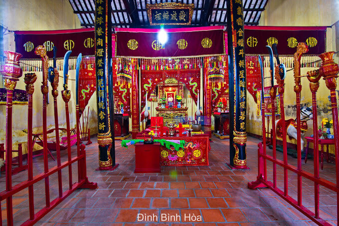 Binh Hoa Communal Houseは、Ho Chi Minh CityのBinh Thanh地区の第12区にあります。 1818年、ビンホア村が設立され、その年に共同住宅が建設されました。 1853年、ヌグエン王はトゥドゥックでした。共同住宅は高山の上に建てられ、東に向きを変えました。外側から武道家、電気、中型、および主要な電気までの主軸に続いて。新しい武道家は、1972年に長さ20.7m、幅13.49mに建てられました。長方形の電気料金の長さは13.49メートル、幅は9.56m、2つの翼の3つのチャンバーがあり、家には通常の家があり、4列の列があり、直径は0.35mから0.40m、高さ6mです。長方形の培地の長さは12.48m、幅は9.57mです。屋根の屋根は、3つの層のタイル、切妻のスタイルの建築、長い長いトランフチャウ(メソポタミアのトリューnguyet)の屋根の上にあります。ミドルパワーは4つの彫像のスタイルにあり、4つの主要な列で構成され、その後発達しています。メインの長方形は長さ11.03m、幅9.57mで、カルテットのスタイルにも組み込まれており、屋根層は1つだけ、壁の壁の木製のバーにはクロスバーがありません。家の長さは16.48m、幅8m、倉庫とキッチンに加えて、幅8mです。電気には3つの祭壇があります。フィールドでは、あなた、友人を説明しています。祭壇、教会、横隔膜、文はすべて洗練された彫刻が施されており、3つのテーブル表面が刻まれ、テーブルの四隅が4つのドラゴンヘッドに触れ、4本の脚が4つのドラゴンの脚に触れます。特に、電気予算の純粋な祭壇には、ドラゴン型のドラゴンがあり、ドラゴンの体はアプリコットの枝で様式化されています。 Mai do Batパターンを備えた電気竹の祭壇のフリンジも非常に顕著です。さらに、Confucian、Soc、Phuong、Hoa Sen.のパターンがあります。毎年恒例の円式は、月カレンダーの9月11日から14日までの最大の式典です。神は、牛の年(1853年)にトゥ・ドゥック王によって叙階された帝国の城塞であるビン・ホアの共同住宅で崇拝されていました。 共同の家には、貴重なコラムに加えて、現在39の貴重なアーティファクトがあります。特に、5つの木製の祭壇は絶妙に刻まれています。古代サイゴンのセラミック香の2つのボウル、王の叙階など。 1993年1月7日、共同住宅は、文化 /決定の決定第43号の下で、文化文化省によって国立美術建築記念碑として認められました。 ホーチミン市のビン・タン地区、12区のウェブサイトのソース。