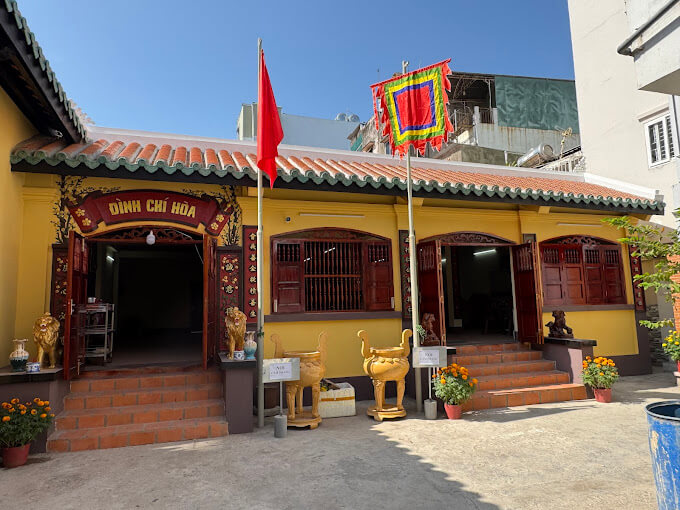 現在、Alley 475 Cach Mang Thang Tam、13区、10区、ホーチミン市にあります。 共同住宅の年が、Nguyen Huu CanhがNam Kinh Luoc(1698)に到着した後に持っていたことを知っていたことがわかっていて、ベトナム人のために村を設立したことは不明です。当初、Dinh Chi Hoaは、陰とYangタイルの屋根の壁と屋根がある「Tam」(三三)のスタイルで非常にシンプルに構築されていました。 Tu Duc王(1852年のNham Tyの年の月のカレンダーの2月16日)に任命された後、新しい共同住宅はしっかりと建てられ、数回後に改装されました。過去には、キャンパスはサンプル(Hecta)で広く、現在侵食されて狭くなっています。共同住宅の前にあるバンヤンの木でさえ、3つの抱擁の根源、茎から余分な根が成長します... 1980年にも削減され、景観が大きく変わりました...これは都市で最も古い共同住宅であり、文化省によって国家の歴史的および文化的関連性が決定No. 1460 - 1996年6月28日に署名された文化として認められています。 13区のウェブサイト、10区、ホーチミン市。
