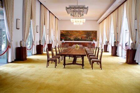 現在、独立宮殿は統一宮殿またはトンニャット学校協会と呼ばれています。ここはかつてベトナム共和国大統領の住居兼職場でした。独立宮殿は現在、ベトナム政府によって特別な国家記念物に指定されています。 1962 年、ゴ ディン ディエムは建築家ゴ ベト トゥーの建物設計によりこのプロジェクトを建設しました。 1868 年、フランス植民地主義者はリュック ティン コチンシナを占領した後、ここに邸宅を建てました。ディンはもともとコーチシナ総督の邸宅でした。 1887 年にフランス大統領がインドシナ連邦設立の法令に署名して以来、独立宮殿はインドシナにおけるフランス総督となった。 1954年、ディエンビエンフーでの敗北とジュネーブ協定に従い、フランス遠征軍はベトナムから撤退しなければならなかった。 1954年9月7日、インドシナのフランス軍司令部高等弁務官は、フランスを代表して、サイゴン政府の代表ゴ・ディン・ジエム首相に独立宮殿を返還した。 1962 年 2 月 27 日にクーデターが発生し、サイゴン軍のパイロットまたは爆撃機 2 人が宮殿の左翼全体を破壊しました。それが修復不可能だったため、ゴ ディン ディエムは 1962 年 7 月 1 日に宮殿の建設を開始することを決定しました。 。 新しい宮殿の建設中に、ゴ・ディン・ディエムの家族はギアロン宮殿に住むために引っ越しました。このプロジェクトの建設中に、ゴ ディン ディエムは 1963 年 11 月 2 日にクーデター派によって殺害されました。そのため、宮殿の落成式当日、式典を主宰したのは国家指導委員会の委員長であるグエン バン チューでした。 。独立宮殿で最も長生きしたのはグエン・ヴァン・チューさんでした。ここは、ベトナムでの残忍な戦争で多くの外国の軍事介入が目撃され、ベトナム共和国のグエン・バン・チュー大統領による多くの反人民政策が生まれた場所であるサイゴン政府の本拠地です。 1975 年 4 月 30 日のホーチミン作戦では、戦車番号 390 が独立宮殿の門を突き破って宮殿内に進入しました。同日午前11時30分、車両843を指揮する中隊指揮官ブイ・クアン・タン中尉は旗36を降ろし、南ベトナム解放国民戦線の旗を掲げた。 独立宮殿の屋根にはためく国旗は、ベトナム人民にとっての30年に及ぶ過酷で英雄的な戦争に終止符を打った。この瞬間、ベトナム共和国最後の大統領ズオン・ヴァン・ミンとサイゴン政府閣僚全員が、両南の人民に対する完全勝利を目指すホー・チ・ミンのキャンペーンへの無条件降伏を発表し、バクは再び団結した。家族。 独立宮殿は州によって歴史的および文化的遺物として認められています。独立宮殿という名前に加えて、総督宮殿、大統領宮殿、または別名ドラゴンズ ヘッド パレスなど、さまざまな名前もあります。 建築家 Ngo Viet Thu は、現代建築芸術と伝統的な東洋建築を調和的に組み合わせました。宮殿全体が、幸運や幸運を意味する猫の形をしています。独立宮殿の中心は、最上階の国家文書提示室トゥ・フォンの場所です。口の形をしたメインドアは教育と自己表現を促進します。宮殿の建築の美しさは、様式化された花柄のカーテンによっても示されています。これはフエ王宮のイメージを改変したもので、宮殿の美しさを高めています。使用可能面積は20,000㎡、95部屋に分かれています。ここの各部屋は、その用途に適した建築と装飾を備えた独自の機能を備えています。 1975 年以降も、母屋は観光客向けに一部で使用され続けました。 1975年以前、グエン・ティ・ミンカイ通りのプリンセス・フエン・トラン通りの角には、グエン・バン・チューのために飛行機を操縦した衛兵隊員の居住エリアがありました。現在は、トンニャットホールスタッフのための昼休みエリアと集合キッチンとして改装されています。グエンドゥ通りの下にある面積 160 平方メートルの 2 階建ての建物は、1975 年以前は民主党の本部であり、1975 年以降は取締役会の職場でした。グエン・ティ・ミン・カイ通りの宮殿の左隅にある上記の建物に加えて、トン・ニャット・ホールには高い丘の上に建てられた高さ4メートルのヴァン・ザップ・ズオンの家もあります。 独立宮殿はユニークな建築作品であるだけでなく、歴史の証でもあります。独立宮殿は、歴史の多くの浮き沈みを乗り越えて私たちの国とともにあり、私たちの祖先の人生における愛国心と回復力についての貴重な教訓を私たちの子供たちや孫たちに生涯にわたって残しました。 出典:ホーチミン市電子情報ポータル
