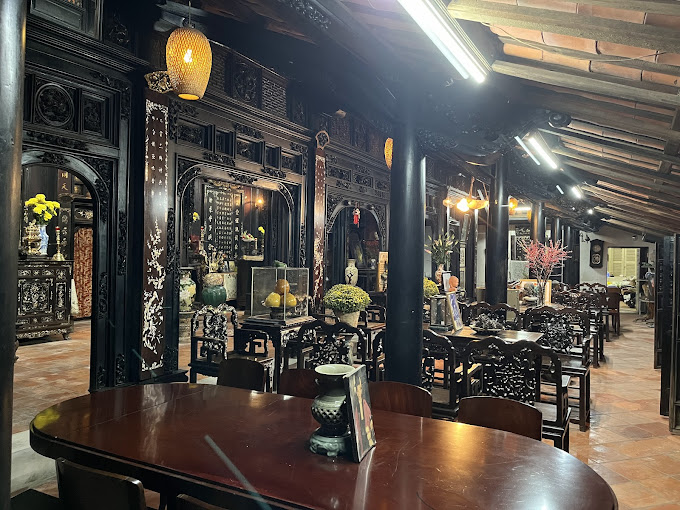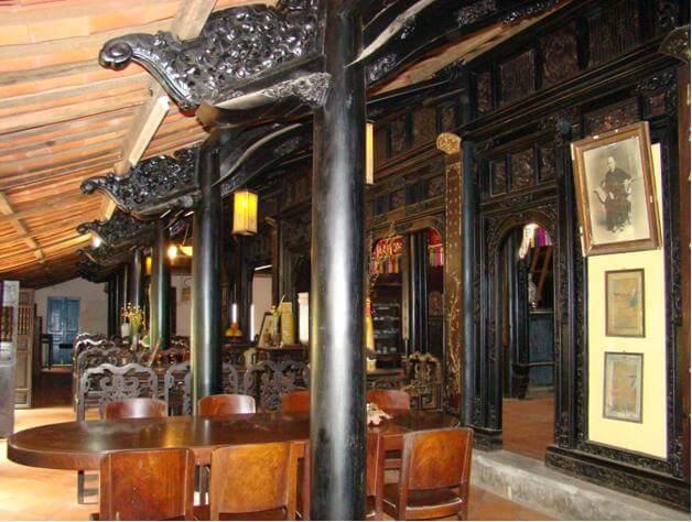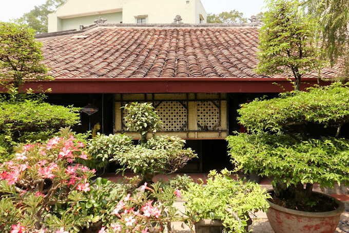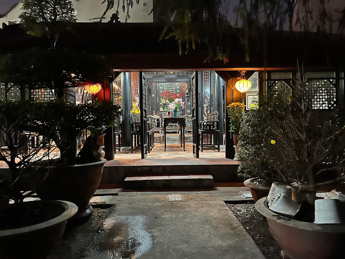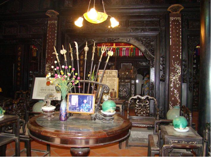 家は、1,333m2の土地面積にある21のNgo Tung Chau Street、Phu Cuong Ward、Thu Dau Mot町、特に主要な部分(上院)にあります(上院)は323m2、補助家(下院)が119m2(下院)を占め、1889年から1892年頃に建設および完成しました。 家は南に向きを変え、彼の背中は丘(現在の州の人民委員会の本部)に寄りかかった、これも古代の風水によると好ましい立場である。ゴールデンハウスの地理的位置と、プークオン区のトラン科の2つの古い家はサイゴン川の近くにあり、森から木材の木を輸送するのに非常に便利です。ヴァン氏の祖先は、のこぎりとのこぎりのある木材を備えた森のように働いていたことが知られています。建物は、ディンノイの建築に従って建てられています。つまり、右側にあるのではなく、家の家の左側にある家の左側にあります。これは改良されたネイルハウスであり、上部と下の家を分離する部分があります。小さな橋の2つの部分の接触により、子供の庭を切断して、その庭の先端にある下院の2つのドア部分をゲーブルに咲かせることなく作ります。他の多くの家と同様に、ゴールデンハウスには十字架のスタイルにフレームがありますが、2つの翼には8つのパンチ、8つの決定があります。一連の宝物、宝物、迫撃砲は巧みに皮をむき、曲げて終了し、棚を作成します。トラスは細心の注意を払って綿密に触れ、葉は3番目の列にまっすぐです。家全体が48の丸い柱を数え、すべて遠くに立っていました。家の中の装飾は最も興味深い訪問者であり、柱の足から屋根、椅子のテーブル、椅子、ケージのドアフレームを崇拝している精巧な訪問者です。一般に、ここで刻まれたモチーフは、平和で幸せな生活と人間の生活、道徳への欲求を表現する、しばしば推定される象徴的であると推定されています...柔軟性と柔らかさに焦点を当てています。刻まれた画像には、植物、花、鳥、アイテム、幾何学的道路が含まれます。特に、Tung Locを見るために内側から右の祭壇にぶら下がっているプレイヤー、Ma Duongには、エレガントでエレガントでペッパーの外観を作成するために漢字の2つの詩があります。家の地面の分布、最初に家の中で、家には2つの翼の5つのスペース、崇拝の部分、レセプション、富の家具を住み、保管するための部屋が明確に分割されています。礼拝の部分は、祖父母を礼拝する権利であるホストの家の左空間の原則に基づいて3つのコンパートメントを占めています。各祭壇はナーカーの祭壇で構成され、上は5つのピースの地図であり、内部は故人の味または肖像画であり、絹の壁に近いのは礼拝、礼拝、反対の文、教会の頭はやや触れました。両側の2つのスペースは所有者の寝室です。祭壇の壁の後ろには家具が入っている部屋があります...祭壇には、聖なる皇帝、地球、東部、運命、聖霊、幸運を置いた礼拝のページがあります。ゲストのレセプションは、2つのベースハート(2番目の列から4列目から4番目の列まで)で構成されています。この場所には、大きな丸いテーブルの中央、大理石の裏面の表面、テーブルの上のボウル(8つのアンティークの武器)のボウルなど、ゲストを受け入れるテーブルと椅子があり、洗練されたキャビングと豊富なシンボリックな意味があります。丸いテーブルの両側は、椅子のスタイルの長方形のテーブルです。最初は、モダンな椅子に囲まれた2つのマンゴーボックスの形のテーブルがあり、すべてのテーブルと椅子は木製です。レセプションと教会の間のパーティションに沿って、上に磁器皿が付いている小さな正方形のテーブルがあり、ここの所有者は彼らの人々のものを一般化するために系図を入れます。家の両端には、祭壇の左側に所有者のために場所もあります。特に、寝室の正面にはガラスのキャビネットが置かれていました。内部には、首のお金、スポーツ帽子、夫の家に戻るときの花嫁のための衣服など、多くの貴重な料理がありました。水平の家は、普通のゲスト、家族活動の場所、カフェテリア、キッチンなどを受け入れるために使用されます...水平の家の前には、ゲートのドアに向かってガレージがあります。前庭には、装飾用の花、観賞用の植物の多くの鍋が植えられました...家の古代の美しさを加えました。 黄金の楽器は、芸術的な人道的な大胆なベトナムの伝統文化です。同時に、彫刻と刻まれたテクニックを肯定することは、ビン・デュオンで長い伝統を持っています。装飾的なアーティファクトと家庭用品は依然として多く、ほとんどは骨que品です。家と人工物の建築全体が中にあり、19世紀後半の裕福な家族の活動を示し、ビン・デュオンのベトナム人住民の生活の発展を示しています。 ビン・デュオン州の港湾港の供給源。