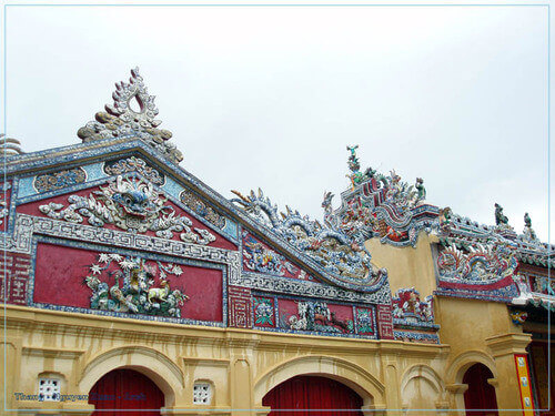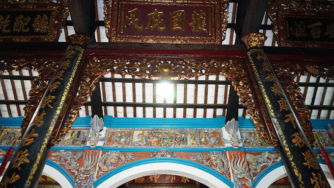 「フーロンの精神寺院」としても知られるフーロン共同住宅は、トゥアンアン市ライティウ区のホアロン地区にあり、トゥドゥック5年に制定され、国家レベルの歴史的・文化的記念物として認められています。 200 年近くが経過した後、多くの修復が行われたにもかかわらず、建築と貴重な工芸品は今もこの共同住宅に保存されています。 この共同住宅は、タイン・ホアン・ボン・カイン神を崇拝するために地元の人々によって建てられました。当初、この共同住宅は荒れた地面に竹と木で建てられました。その後、共同住宅は 1865 年、1935 年、1997 年と何度も修復されました。現在、共同住宅の総使用可能面積は 5,828 平方メートル、建築面積は 1,258 平方メートルです。 共同住宅は「天に一致する」という三文字のスタイルで建てられ、屋根は陰陽瓦で葺き、床には花柄の瓦が敷かれています。共同住宅の門、垂直および水平の壁にはパターンやモチーフが刻まれており、そのほとんどは古代の磁器で細心の注意を払って装飾されており、色彩豊かで、多くの多様なイメージや伝説が豊かで、調和のとれた自然の水域の敵です。建築に関しては、共同住宅のファサード全体とコンクリート部分が色とりどりの陶片で覆われており、トゥ・ダウ・モットの共同住宅やパゴダの建築に伝統的な陶芸の独特の美しさを生み出しています。 電気料金明細書全体には、豊饒と繁殖を象徴する、アプリコット、蘭、菊、ザクロ、ブドウ、バナナなどの果物をテーマにした彫刻が施された木製パネルが施されています。中央ホールとメインホールの間のスペースには、ドラゴン、ユニコーン、八仙の場面、ロンハイの将軍、ドラゴンに変わる魚などのイメージで装飾された青い釉薬のセラミックパネルがあります。 中央ホールの屋根には、中央に太陽と月の形があり、破風は龍、一角獣、亀、鳳凰の形をしています。後殿の屋根にも、魚が龍に変化する文様や二頭の龍が真珠を描いた文様が描かれています。中央ホールと後ホールの屋根の内側には、直径 40cm の 6 本の木で構成される 2 列の柱が縞模様に構造された 2 組の木造耐力トラスがあります。正殿の中央には、トゥドゥク王から与えられたタイン・ホアン・ボン・カイン神を祀る祭壇があり、その両側にはタ・バンとフー・バンが祀られています。ここでは村に貢献した人々も祀られており、共同住宅が整然と並び、各祭壇には位牌が置かれている。特に最上位の祭壇は四角い木の椅子の形をしており、杏、蘭、菊、竹などの彫刻が施され、龍の葉(グーと呼ばれる)の浮き彫りがとても荘厳に見えます。 本堂には多くの香炉が整然と並べられ、各地からの参拝者が焼香して参拝することで敬意を表します。香炉の隣には、持続可能性を象徴する一対の亀と鶴がたたずんでいます。 妻側の左側にはグー・ハン・ヌオンヌオン祭壇があり、その隣には長さ1.8メートルのスネア、右側にはホー氏の祭壇、その隣には礼拝や祭りに使用される太鼓があります。 前飛燕と後飛燕の祭壇も厳かに飾られています。外から本殿を真正面から見ると、亀の背に四対の鶴を乗せた多種多様な武具などの儀式が並んでいます。 この共同住宅には、柱や香炉などに多くの並行文が刻まれており、そのすべてが複雑な彫刻が施され、鮮やかな金メッキが施されています。共同住宅の内外の装飾パターンには、龍に変身する魚、様式化された龍、八仙の場面などが含まれます。 芸術的な建築的価値に加えて、フーロン共同住宅はかつて、フランスとアメリカに対する 2 つの抵抗戦争中に、地元の革命の将校や兵士の何世代にもわたる避難所と武器の場所でした。 出典: ビンズオン省観光促進センター