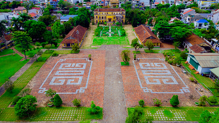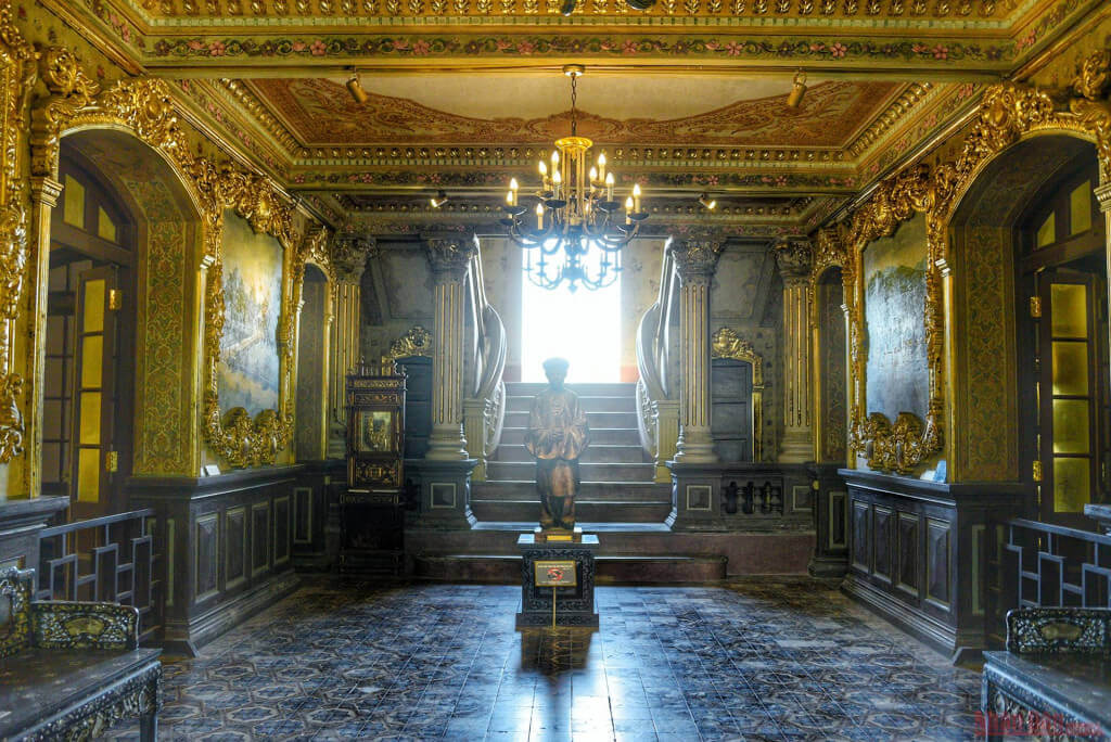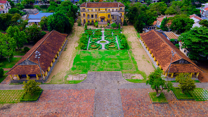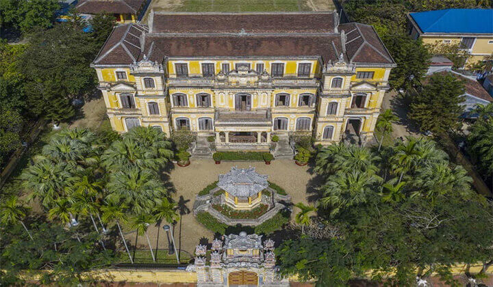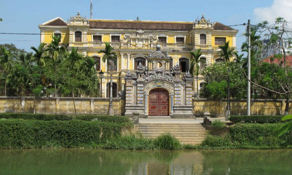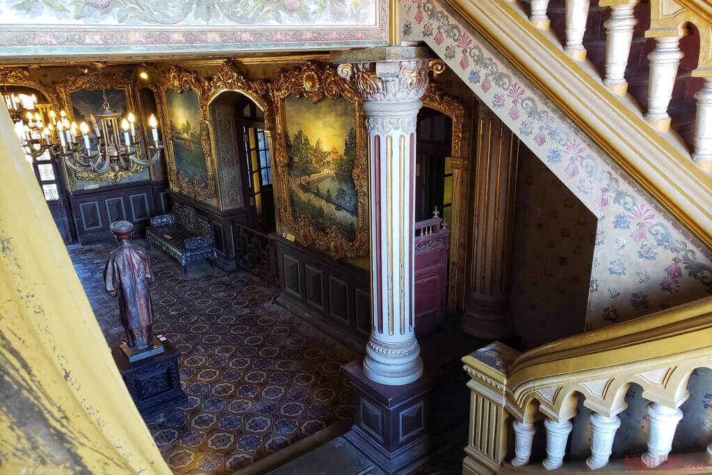 アンディンはカイディン王の私邸で、アンクー川のほとりに位置し、以前はフエ市デバット区、現在はフエ市ファンディンフン通り97番地にありました。もともとこの場所には、タン タイ 14 年 (1902 年) 以来、プン ホア コン グエン フック ブー ダオ (後のカイディン王として知られる) が宮殿を建設し、アン ディン宮殿と名付けました。 カイディン 2 年 (1917 年) に、国王は私財を投じて近代建築様式に従って宮殿を改修しました。 1919 年初頭に建設工事は完了しましたが、宮殿はまだその名前を残しています。 1922 年 2 月 28 日から、アン ディン宮殿はヴィン トゥイ皇太子 (後のバオ ダイ王) の住居となる可能性がありました。 1945 年の 8 月革命後、バオダイ元皇帝の家族は王宮からアンディン宮殿に移り住みました。 1954 年以降、ゴ ディン ディエム政府はアン ディン宮殿を没収しました。 1975 年以降、トゥ チュンさんはアンディン宮殿を革命政府に寄贈しました。現在までに、アンディン宮殿の遺物は修復されています。 アンディン宮殿は南、アンクー川に面しています。宮殿は平らな地形で、総面積は23,463平方メートルで、厚さ0.5メートル、高さ1.8メートルのレンガの壁に囲まれ、鉄の柵で囲まれています。無傷の状態では、宮殿には約 10 の建造物がありました。前から後ろへ: ボート埠頭、正門、チュンラップ共同住宅、カイトゥオンパビリオン、クトゥダイ劇場、動物檻、湖...時と戦争の荒廃を経て、現在は宮殿のみ 残りの3つ正門、チュンラップ共同住宅、カイトゥオンパビリオンなどの建築物はまったく無傷で残っています。正門は三扉式二階建てで、精巧な浮き彫りの磁器が装飾されています。ドアの内側にあるチュンラップ共同住宅は、高い基礎を備えた八角形の構造をしています。共同住宅には、1920 年に鋳造された等身大のカイディン国王の銅像があります。 カイ トゥオン パビリオンは、アンディン宮殿の主要建築物であるチュンラップ共同住宅の裏にあります。カイ トゥオン (良い兆しが生まれる場所を意味する) という言葉は、このフロアの名前をカイ ディン王によって付けられたものです。ヨーロッパの城のスタイルで新素材を使用して建てられた3階建てのフロアは、最大745平方メートルの面積を占めます。フロアは非常に凝った装飾が施されており、特に1階の内部には芸術的価値の高い壁画が描かれています。 カイディン廟、キエンチュン床、ヒエンニョン門などのカイディン時代の他の建築作品とともに、ディン宮殿は新古典主義時代のベトナムの建築様式を代表するものと考えられています。 この作品は 2006 年 12 月 13 日に国の記念物に認定されました。 出典: トゥアティエンフエ電子情報ポータル