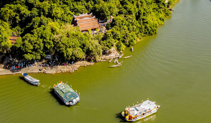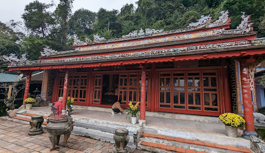 ホンチェン宮殿は、かつてチャンパの人々が女神ポー ナガルを崇拝した場所であり、その後、ティエン ティエン タン宗教を信仰するベトナム人は、聖母ティエン ヤ ナの名の下に彼女を崇拝し続けました。さらに、ホンチェン宮殿には、釈迦、タン・クアン・コン、そして上記の神々の弟子である100人以上の聖人が崇拝されています。 ホンチェンパレスが多くの人に知られているのは、宗教的な遺跡ではなく、美しい建築物と絵のように美しい風景がある場所だからです。ホン チェン パレスは、香水川の最深部である深淵の端にぶら下がっている、緑豊かな植物が生い茂るゴック チャン山に建てられました。山頂には直径数メートルの窪みがあり、その周囲を井戸のように造られた岩が輪状に囲み、雨が降ると水が結露してまるでお椀のように見えることから、別名「山」とも呼ばれています。ホン・チェンです。宮殿の約 10 の美しい建築物は、山の緩やかな南東斜面の中腹に位置し、青々とした葉が生い茂る古代の森の木陰に隠れています。宮殿から水埠頭 (フォン川) まで階段が続いています。宮殿全体の建築計画はそれほど大きくなく、中央にミン・キン・ダイ本殿、右側にクアン・クー邸、チン・カット・ヴィエン、タン・パゴダ、右側にグー・ヴィ・タン・バ宮殿、みかんの祭壇、ハ バン氏 (つまりホー氏) を崇拝する洞窟、ゴアイ カーン寺院。川岸の下、左側の通りの突き当たりにトゥイ フー庵があります。その建築面には、数多くの祭壇や小さな祠もあります。 ホンチェン宮殿は、文化情報省の 1998 年 9 月 26 日付けの決定第 2009/1998/文化スポーツ省により、国家遺物として認められています。 出典: トゥア ティエン フエ電子情報ポータル。