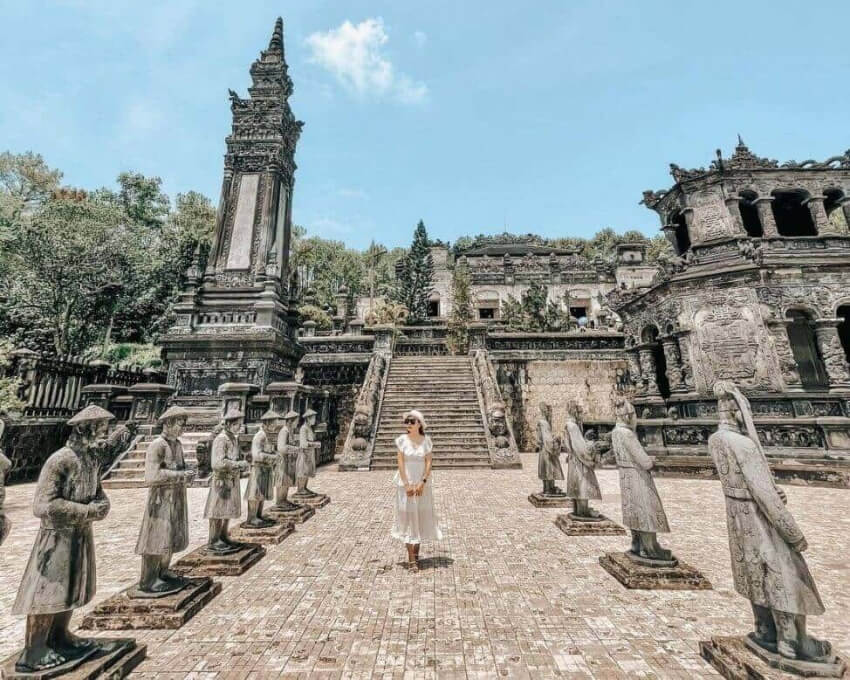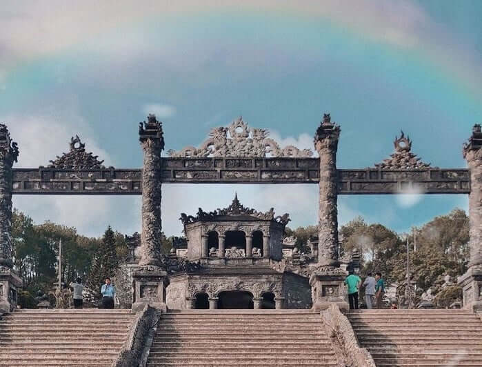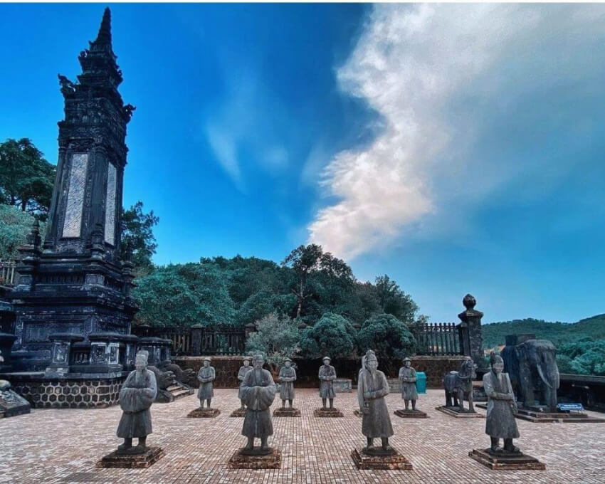 ウンランとしても知られるカイディン墓は、トゥアティエンフエ省フエ市トゥイバンコミューンにあります。 カイディン王 (1916-1925) はグエン王朝の第 12 代国王であり、王の「出発」に備えて霊廟を建設した最後の人物です。 カイディン墓は、フエ市の中心部から 10 km 離れたチャウ チュー山 (チャウ E としても知られる) の斜面に建てられました。霊廟の建設は 1920 年 9 月 4 日に始まり、完成までに 11 年かかりました。 カイディン国王は鉄、鋼鉄、セメント、タイルを購入するためにフランスに国民を派遣し、プロジェクト建設のための磁器やガラスを購入するために中国と日本に国民を派遣した。フエの廟系の廟と比べると、カイディン廟は面積が小さい(117m×48.5m)ものの、非常に精緻で手間がかかる。それは、多くの古典的および現代的なアジア、ヨーロッパ、ベトナムの建築ラインを統合した結果です。 霊廟全体は、127 段まで上がる長方形の浮遊ブロックです。霊廟の周囲の広い地域の山、丘、小川は、風水の要素として使用されています。犯罪歴、後頭部、左側のドラゴン フルーツ、右側のホワイト タイガー、きれいな道路、水が集まり、カイディンの自然な屋外環境を作り出しています。雄大な自然。 ティエンディン宮殿は最も高い位置にあり、霊廟の主要な建造物です。この作品は連続した 5 つの部分で構成されています。左右は霊廟を守る兵士の部屋、正面には祭壇とカイディン王の肖像画が安置されているカイタン宮殿、中央にはブウ祭壇、カイディン王の像。その下に王とその墓があり、一番奥には亡くなった王の位牌が置かれた祭壇があります。 霊廟の芸術的価値の最も高いものは、ティエンディン宮殿の内装です。宮殿の中央の 3 つの部屋はすべて磁器と色ガラスで作られたレリーフで装飾されています。特に銅像のブウの天蓋は重さ1トンもあり、柔らかで優美な曲線を描いており、まるでベルベットのような柔らかさを感じさせます。天蓋の下には、1922 年に国王の要請によりフランスで鋳造されたカイディン国王の銅像があります。 カイディン廟の芸術的傑作の制作責任者は、ティエンディン宮殿の中央の 3 つの部屋の天井に飾られた我が国の 3 つの最大の壁画「クーロン ヴァン」の作者であるアーティストのファン ヴァン タックです。 カイディン墓は磁器とガラスの造形芸術の最高峰であり、まさに芸術的、建築的価値のある作品です。 カイディン廟は、1979 年 4 月 29 日に国家記念物として認定されました。 出典: トゥアティエンフエ省電子情報ポータル
