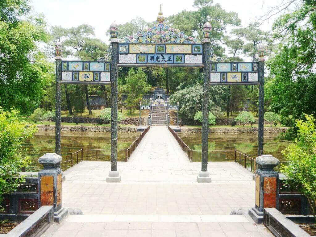 ミンマン墓はトゥアティエンフエ省フエ市フォントーコミューンにあります。 ミンマン墓 (ヒエウラン) は、フエ市から約 14 km のカムケ山に位置し、香水川の源となるバンランジャンクション近くにあります。霊廟の建設は 1840 年 9 月に始まり、チュー トリ王によって継続され、1843 年に完成しました。 ミンマン廟は、ダイホン門の外側から長さ700メートルの神道に沿って軸上に配置された、宮殿、寺院、記念碑を含む大小40の建物からなる大規模な建築模型です。王の墓の後ろにあるラ・シタデル。廟の形は、キム・プン山に膝を立てて休む人が目の前の川の合流点に向かって足を伸ばし、チュンミン湖の両半分が自然に腕を垂れているような形に似ています。 神道の開口部は大ホン門(陵への正門)で、高さ9メートル、幅12メートルで、この門には3つの道があり、真ん中の道は王の棺を陵に運ぶために1回だけ開き、その後しっかりと閉じます。門、タホンモンとフウホンモン。大ホン門の後ろには幅45メートル×幅45メートルの庭があり、その両側に役人、象、馬の像が2列に並んでいます。庭の端にはビ共同住宅があり、石碑には「Thanh Duc Than Cong」(ミンマン王の作とされる)という歌が刻まれています。次は中庭です。 Hien Duc Mon は、地面を象徴する正方形のレイヤーに限定された電気イマージョン エリアを開きます。聖安宮は中央に位置し、左、右、フォイディエン(前)、左フートン(奥)の部屋に囲まれており、これらも四角い壁内に限られています。ホアン・トラック・モンは、電気含浸エリアを終了する工事です。チュンミン湖にかかる 3 つの橋を渡ると、ミンラウに到着します。ミンラウは、王が瞑想し、始皇帝の魂が行き着く場所です。タン グエットという名前の月の形をした湖が、真ん中で円を描いてブウを抱きしめています。これは無限の世界の始まりであり、カイ トラック ソンという名前の丘の中心にある王の休息の場所です。霊廟の主軸の両側には、多数の補助作品が対になって対称的に配置されています。 2つの湖と美しく装飾された建築物を持つミンマンの墓は、グエン王朝の王の墓の中でも最も荘厳で荘厳な墓の一つです。 この作品は 1997 年 4 月 29 日に国の記念物に認定されました。 出典: トゥアティエンフエ省電子情報ポータル