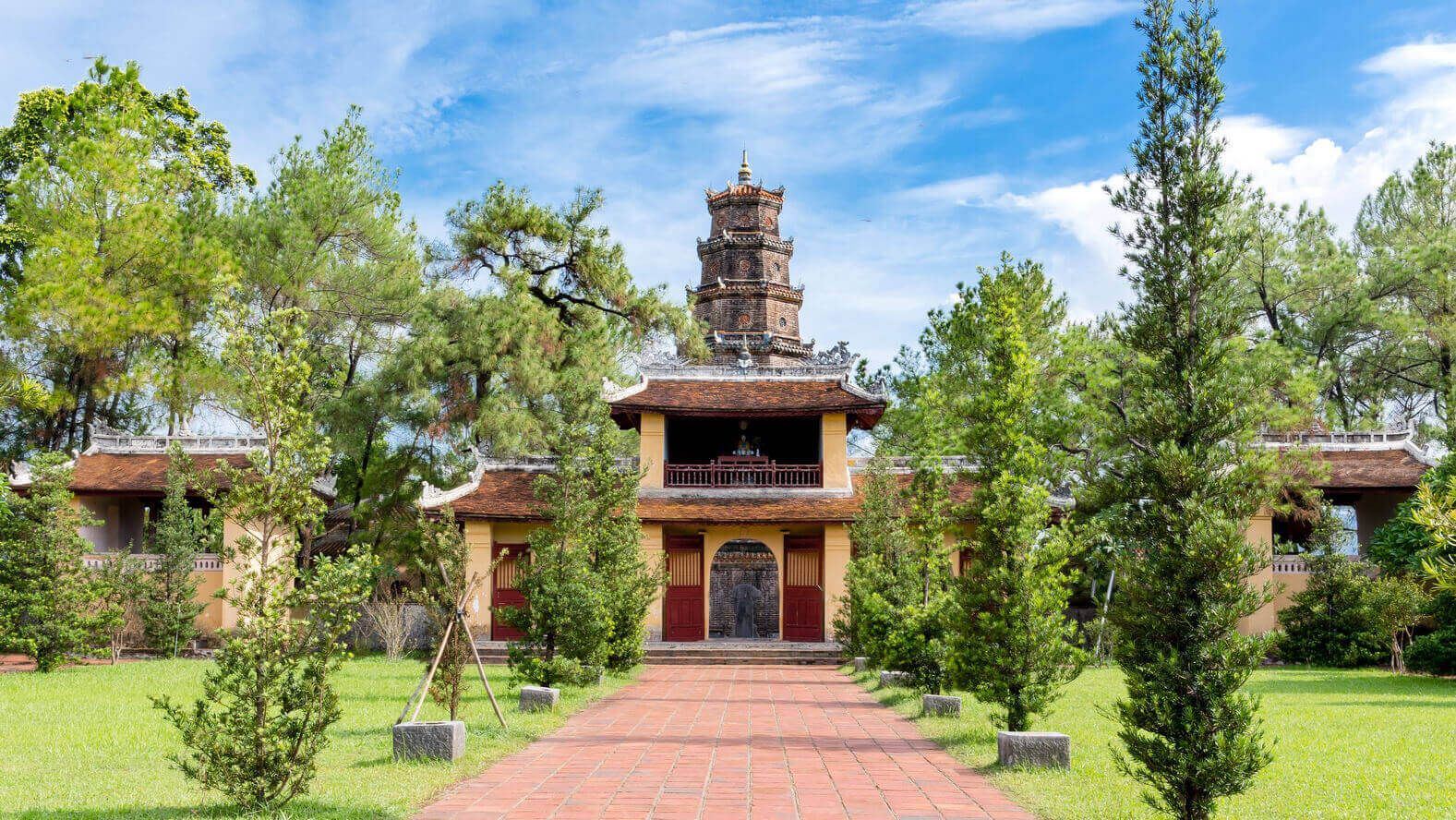 ティエン ムー パゴダは、香水川の左岸のハーケー丘に位置するフエ最古の塔です。 ティエン ムー パゴダは、古都フエで最も美しい場所の 1 つです。パゴダはナーガールジュナの土地の反対側、香水川のほとりの高い丘の上に建てられました。塔の扉の前には八角形の建築塔があり、八角形の配置になっています。このタワーは6つの等しいフロアで構成されていますが、上に行くほど面積が小さくなります。各階には、非常に洗練され、規則的で、異常に鮮やかな装飾的な線が突き出た小さな屋根があります。それぞれの側にはかなり大きな長方形の回転ドアがありますが、その周りには多くの龍と月のモデルがあります。頂上には小さな8面の屋根があります。中央には尖った鼻を持つワイン樽が飾られています。周囲には雲の模様が描かれています。 伝説によれば、グエン ホアン卿がトゥアン ホアの知事およびクアン ナムの知事になったとき、事業を拡大し、後のグエン家の家系のために国を建設する計画を準備するために、自らここの地形を調査しに行きました。ある時、彼は香水川の上流の岸辺に沿って馬のひづめに沿って走っていると、蛇行する透き通った青い水の隣にそびえる小さな丘に出会った。その地面はまるで龍が振り返ったように見えた。この丘はこう呼ばれている。ハーケーヒル。 地元の人々によると、夜になると赤いシャツと緑のズボンを着た老婆が丘に現れ、「いつか真の領主が来て、霊エネルギーを集めて龍脈を強化するために塔を建てるでしょう」と皆に告げるという。 、強い南の国のために」。したがって、この場所はティエン・ムー・ソンとも呼ばれます。 グエン・ホアン卿の偉大な思想は人々の意志と一致しているようです。グエン・ホアンはとても喜んで、1601 年に香水川に面した丘に塔を建て、「ティエン ムー」と名付けました。 拡大した規模と自然の美しさにより、ティエンムー塔はダンチョンで最も美しい塔となりました。歴史の浮き沈みを経て、ティエンムー塔はかつてタイソン王朝時代(1788年頃)にダットの犠牲祭壇として使用され、その後阮王朝時代に何度も修復・再建されました。 1884 年、トゥアン ティエン カオ王妃 (ジア ロン王の妻、ティウ トリー王の祖母) の「80 歳の誕生日」を祝う機会に、ティウ トリー王は塔をより大きく再建築し、トゥ ニャン塔を建てました。 (後にフック・ドゥエン塔に変更)、フォン・グエン共同住宅、そして王の詩を記録した 2 つの石碑が建てられました。 パゴダのキャンパスは 2 つのエリアに分かれています。 ギモン門前のエリアには建築作品が含まれています。 ボート乗り場には 24 段の上り下りがあり、3 つの入り口の門は幹線道路の近くに建てられた 4 本の柱で、3 つの柱からなっています。 15 段の階段を上がるとフオン グエン共同住宅があります (現在は 1 階と堅固な石の基礎だけが残っています)。フォンの両側には 7 階建ての高さのレンガで建てられたフック ズエンの塔があります。グエンの共同住宅、2 つある 石碑の建物は四角形 (ティウ トリの治世中に建てられた) で、奥には 2 つの六角形の床があり、1 つは石碑用、もう 1 つは鐘用 (グエン フック チュー時代に建てられた) です。これらは記念作品(石碑、塔)です。ギモン門の内側にはダイフン宮殿、ディアタン宮殿、クアンアム宮殿、トライハウス、ゲストハウス、花園などがあり、その奥には静かな松園があります。 ティエン ムー パゴダは、香水川のほとりで起こった歴史の証人のようなものです。パゴダは今でも特にフエの人々の心の中に、そしてベトナムの人々一般の文化生活の中に存在しています。 出典: ベトナム国家観光局