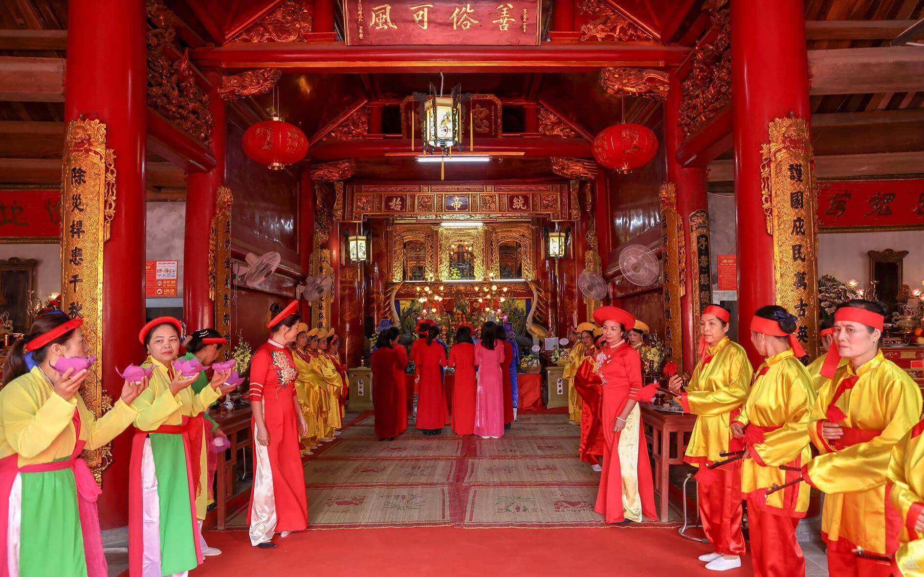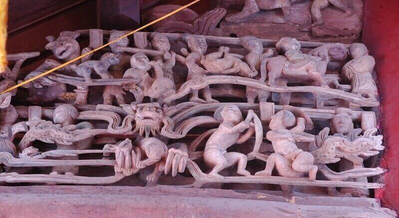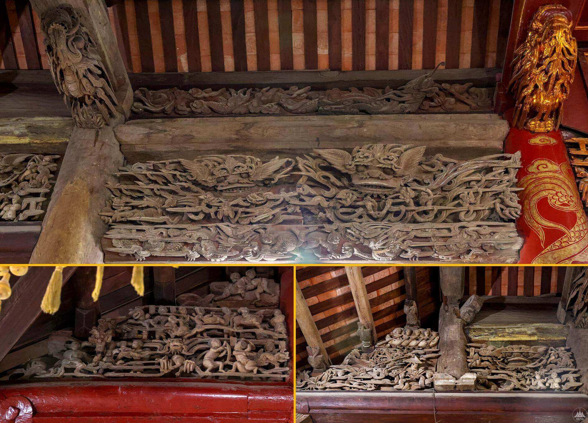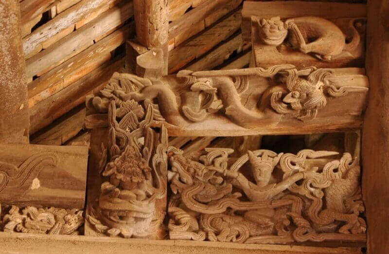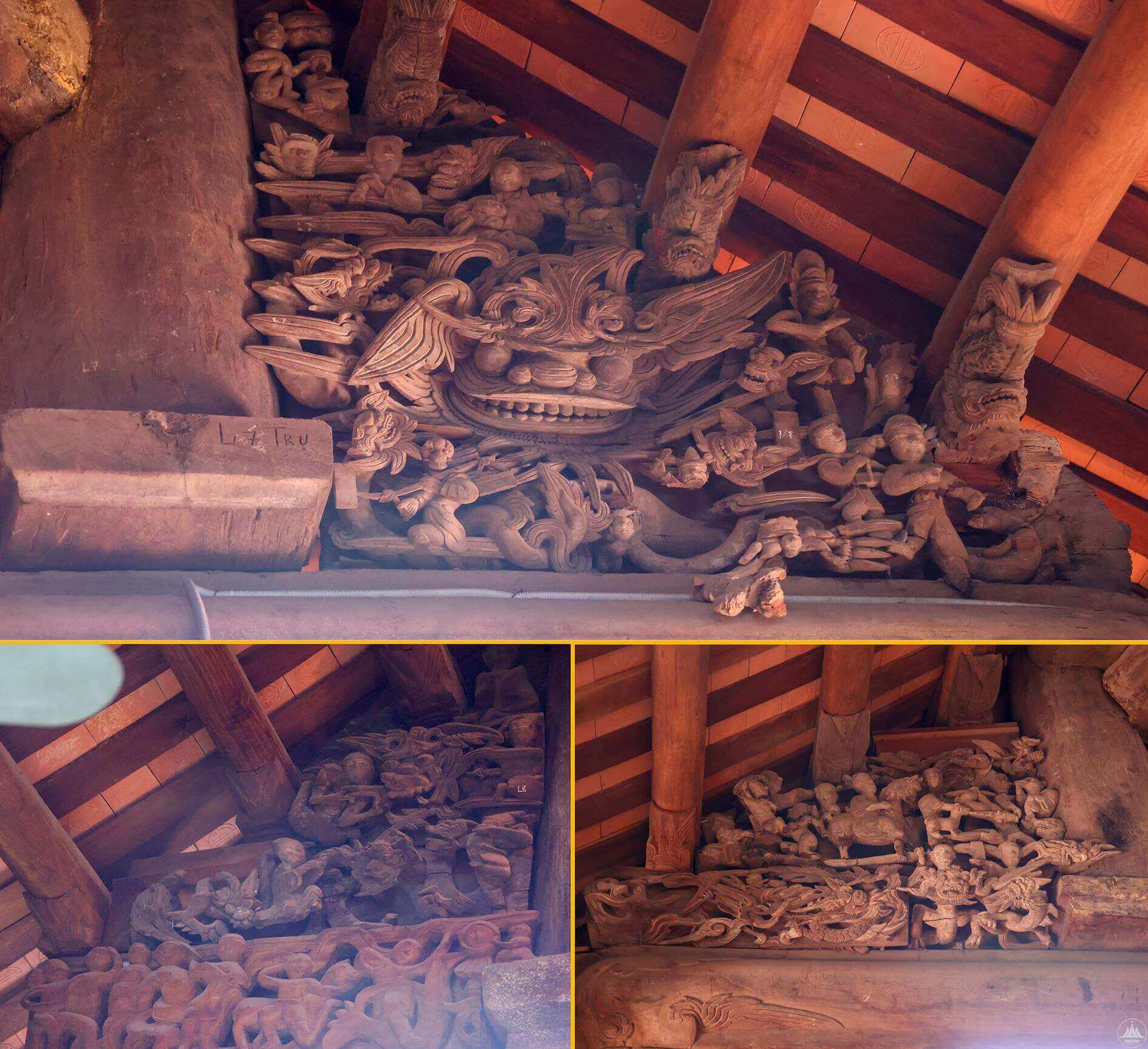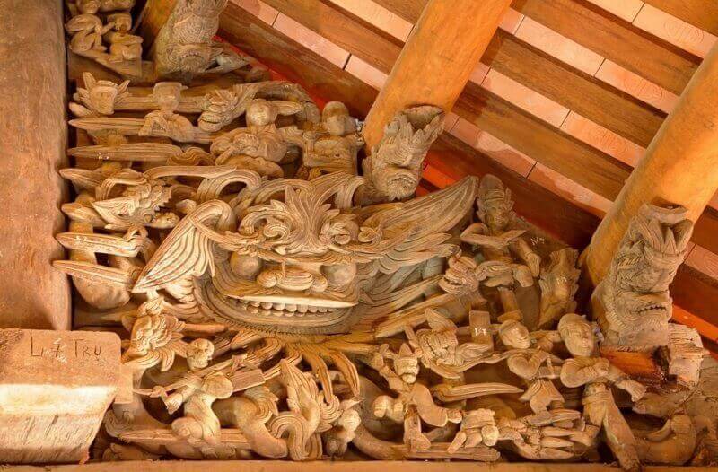 フオン・カインはもともと後レ王朝のソンタイ町アンラン地区のコミューンの名前でしたが、その後グエン王朝の一般名となり、今日の町の名前であるフオンカイン町(ビンスエン区)となりました。ヴィンフック省)。民間伝承によると、フォン カインはタム カインとも呼ばれます。これは、フォン カイン、ゴック カイン、ティエン カインを含む 3 つのカイン村の通称であるためです。 Huong Canh という地名には、Ke Canh という古代名もあります。この名前は、粒の両側に 2 つの尖った光条がある地元の米の品種に由来しています。人々はその鋭い二本の光線を翼と呼び、その翼を村の名前として米粒を翼と呼んでいます。 当初、ここにはフオン・カイン村が 1 つしかありませんでしたが、徐々に人口が増え、村は分離され、真珠のように美しい米粒であるギー・カイン米が採れる場所、ゴック・カインと名付けられました。最後に、フオン カイン (香り高いカイン米) とゴック カイン (美しいカイン米) の両村に人口が密集したとき、別の村とともに西部と北西部に拡張し、「米」を意味するティエン カインという名前が付けられました。 フォン・カイン、ゴック・カイン、ティエン・カインの3つの村にある3つの共同住宅はすべて国家歴史文化遺物に指定されており、現在、国家特別ランク付けを求める書類を準備中である。共同住宅は50メートルから100メートル離れて位置し、記念碑的な遺跡群を形成しており、国道2A号線に隣接しており、観光、観光、巡礼に便利です。 崇拝される神々については、地元の人々の伝説によると、侵攻してきた南漢軍を破った後、ゴ・クエンが王となり、コロア(現在のハノイ)に首都を築きました。国は独立し平和でしたが、ゴ・クエンは依然として警戒を忘れず、敵を防ぐために兵士と馬を訓練しました。当時、狩猟も運動の一種であったため、ゴ・クエンはかつて自分の2人の子供、ゴ・スオン・ガップとゴ・スオン・ヴァンに、側近の将軍ドー・カイン・タックを派遣し、狩猟という形での訓練を行うために軍隊を派遣させた。 。彼らはフオン・カインを行進し、野原の真ん中にある塚で野営し、人々はゴー・グーと呼んだ。神聖な印を記録し、ゴー王朝の英雄たちに敬意を表するため、フオン・カインの人々は「生は将軍、死は神」(生きることは神である)という概念に従って、ゴー・グーに彼らを崇拝する寺院を建てました。良い将軍 - 死は神聖です)。後レ王朝時代、フォン・カイン、ゴック・カイン、ティエン・カインの3つの村の人々は、各村に共同住宅を建て、その共同住宅で神聖な名前を崇拝し、今日のように毎年祭りや供物を行っていました。 1. フォン カイン コミュニティ ハウス 最も早く形成されたフオンカイン村は、他の 2 つの村よりも先に共同住宅を建設しました。ゴック・カインの共同住宅やティエン・カインの共同住宅ほど大きくはありませんが、フォン・カインの共同住宅は精巧に作られており、より多くの装飾や彫刻が見られます。この共同住宅はフォン・カイン市の南部に位置し、ファサードは南西に面しており、ディエムラン湖、リバーアリーナ、カウトレオ川を見渡せます。歴史の浮き沈みを経て、300 年近くの間、フオン カインの共同住宅は、太陽や雨に挑戦するかのように、その巨大で優美な屋根で自然と闘いながら、今もそこに立っています。共同住宅の屋根は、ドラゴンの鱗のネジのように整然と配置された面白い鼻のタイルで覆われており、非常にしっかりしていて美しく平らです。共同住宅の屋根は真っ直ぐに建てられており、羽根の先端は湾曲しています。共同住宅の屋根全体が、まるで大凧が空に飛び立とうとして動いているように見えます。 2. ゴック・カイン共同住宅は後レ王朝に建てられ、グエン王朝初期に修復されました。 ゴック・カイン共同住宅の最初の文には、次の 2 つの言葉が浮き彫りにされています。「ギアロンで 20 年、クイダウで 10 年、月が 10 年、古いトゥオンルオンで 26 日、土と木の修復、ザップトゥアットで 5 年」月、15日目が完了し、平和と繁栄は素晴らしいです。」 (意味:ザロン12年は酉の年で、10月26日に以前と同じように屋根の木を建てます。ザップトゥアトの年に木材とドアを修理します。良い調和を願って5月15日に完成します)。太陽暦によれば、クイダウは 1813 年、ザップトゥアトは 1814 年であり、修復は 7 か月続きました。 2番目の最初の文は、「ミンメンの年、カインティンの年、6つの月と10日、黄金のサイクルジュエリーの始まり、10か月と10日、非常に幸運で繁栄が完了しました」(意味:最初の年)ミンメンの今年はカイン・ティンの年で、幸運と繁栄を願って6月11日に建設が始まり、金色に塗られ、10月10日に完成しました。太陽暦によれば、Canh Thin は 1820 年、ミンメンの最初の年です。装飾は4ヶ月続きました。 3. ティエンカインの共同住宅は最後に建てられましたが、ティエンカインの共同住宅はゴ