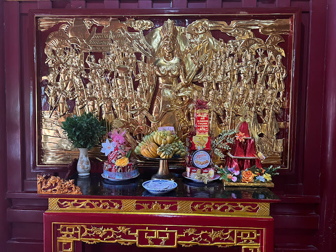 ビンキン共同体としても知られるグエン・ヒュ・カイン寺院はドンナイ川の左岸に位置し、以前はチャンビエン州ビンホアン村のビンキン村に属し、現在はビエンホア州ヒエップホア村のニーホア村に属していた。 1991 年 3 月 25 日に文化情報スポーツ観光省によって国家歴史遺物に指定されました。 グエン・フ・チャン寺院は、現在の寺院から約400メートル南に位置し、当初は板張りの壁と陰陽瓦屋根の小規模な寺院でした。文書には次のように書かれています。寺院はトゥドゥック 4 年 (1851 年) に初めて再建されました。 1923 年までに、寺院は現在の場所に再建されました。 グエン・フ・カインは、1650 年にタインホア省トンソン地区のギアミウで、王朝の多くの有名な将軍がいる家系に生まれました。彼は文武両道の人であり、数々の偉業を成し遂げ、グエン卿から信頼され、愛され、尊敬されていました。マウ ダン (1698 年) の春、彼はまだ荒廃していたダン チョンに侵攻するというグエン卿の命令に従いました。ドンナイに到着した彼は、クーラオポー(現在のヒエップホアコミューン)に本拠地を設置した。ドンナイの土地をフックロン地区として取り、チャンビエン宮殿を建て、サイゴンの土地をタンビン地区として取り、フィエントラン宮殿を建て、土地は数千マイルに拡張されました。彼は定住する移民を募り、行政機構を段階的かつ組織的に組織し、土地の埋め立てを奨励し、クーラオポーをこの世紀を通じて最も活気のある最も活気のある港町の一つに発展させることを促進し、南部の新しい土地を正式に併合しました。 Dai Vietマップに追加します。南部の侵略から帰還した後、翌年、彼は再びグエン・フック・チュー卿の命令に従い、チャンラップ王を制圧し南部国境地域を維持する軍隊を率いました。 Canh Thin 年 (1700 年) 4 月、任務を終えてラックガム (ティエンザン) に戻る途中、彼は病気になり、陰暦 5 月 16 日に 51 歳で亡くなりました。古い。埋葬のために故郷に向かう途中、彼の棺は、地元の人々が最後にもう一度彼に別れを告げる機会を持つことができるよう、かつて彼が本拠地を置いていたクーラオフォーの土地に停められた。マンダリンの共同住宅には、地元の人々がこの出来事を偲んで墓を建てました。グエン・フ・カイン氏の訃報を聞いたとき、グエン卿は非常に残念に思い、彼に「タン侯爵式」という町宰相の高官の称号を授与し、その位牌をタイの寺院に祀らせた。 出典: ドンナイ電子新聞