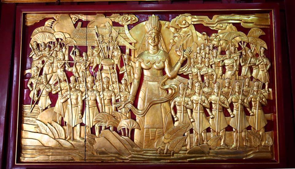 公に建国した私たちの先祖の功績を記念し、フン王の時代の精神的および文化的価値観を結集し、建国と防衛に貢献した私たちの祖先と先人の功績を記念するためです。ロンクアン湖の神父寺は、2007年3月26日にカインホア省のチュホアコミューン(ベトトリ)のシムヒルに建設が開始されたフン寺の歴史的遺跡群内に位置する新しい文化施設です。 2009年3月29日、ちょうど丑年のフン・キングの命日の日でした。 『ダイ・ベト全史』という本によると、「ラック・ロン・クアンのフルネームはソン・ラムで、デ・ライの娘アウ・コーと結婚し、100個の卵が入った袋を出産し、後に孵化して100人の息子が生まれ、彼らが祖先となった」バッハ・ベト。ある日、ラック・ロン・クアンはオー・コーに、「私は龍のようだ、彼女は妖精のようだ、水と火は相容れない、仲良くするのは難しい」と告げ、別れを告げ、50人の子供たちを手分けして父親を追って海へ向かいました。 , 49歳で母親を追って山へ行き、長男が次の王フン・ヴオンとなった。フン・ヴオンは王位に就き、国をヴァン・ランと名付け、フォンチャウに首都を置き、国を15の部分に分割しました。王の住居はヴァンラン、王の息子はクアンラン、王の娘はミーヌオン、将軍はラックハウ、軍将軍はラック将軍、みかんはボーチンと呼ばれ、父から代々受け継がれてきました。息子とのつながりは家庭教師と呼ばれます。伝説によると、18世代にわたってフン・ヴォンと呼ばれてきた人々がいます。 国家の父であるラク ロン クアン寺院は、同期的な建築物を備えた新しい建設に投資されました。装飾的なモチーフは、ドン ソンの青銅ドラムのパターンをモデルとしており、次のように様式化されています。落花生の鳥は独特の鮮やかさで表現されており、その荘厳な古代性を失うことなく、寺院のユニークな建築的特徴をもたらしています。 ラックロンクアン寺院の建築には、本堂、門、象徴的な柱、象徴的な門、共同住宅、左ヴュー、右ヴュー、金閣、補助工事、総敷地面積13.79ヘクタールの技術インフラが含まれます。 本堂:建築面積210平方メートル、伝統的な古代建築様式の木造建築で、正面玄関は3室、左2室、脚4列。ハーレムは3部屋4列の脚があり、奥には壁があり、扉はテーブルになっています。前堂の正面には、1間2左2列の足を持つ祭壇があります。山門(祭門):伝統的な建築様式で建てられ、門は4本の柱で、正門の幅は4.2メートル、通用門の幅は2.05メートルです。 シンボル的な門:共同住宅の正面に位置し、鉄筋コンクリートの柱構造を石で覆い、彫刻で模様を彫ったもの。 フォンディン: 儀式用の門の後ろ、中庭レベル II にあります。建物は木造で、屋根にはマッチが積み上げられ、床にはバッチャンタイルが敷き詰められています。 左のvu、右のvu:ヤードレベルIIIに位置し、伝統的な古代建築様式で建てられ、5つのコンパートメント、2列、建築面積54平方メートルの家。 象徴的な柱:主軸を中心に対称に位置する2本の柱、高さ9.2m。鉄筋コンクリート製の構造物で、様式化された鳥の模様が刻まれた緑色の石で覆われています。 金塔:本堂の後ろの両側にあります。建物の構造は石ブロック、セメントモルタル、鉄筋コンクリート柱、アンティーク瓦屋根で造られています。 ロンクアン湖寺院に似た祭壇には、ハンモックの扉、香炉、銅鑼台、貴重な鉢、横板、平行文などがあります。木製の柱で作られ、模様が彫られ、金漆で塗られています。特に注目に値するのは、Lac Long Quan の礼拝像です。建国の父ラク・ロン・クアン像は青銅で鋳造されており、重さは1.5トン、高さは1.98メートルで玉座に座っており、文学的なモチーフに沿った模様が刻まれたブロック石で作られた石の台座の上に置かれている。変換。両側には、高さ 1.80 メートルの立像、重さ 0.5 トンの 2 体の将軍像 (ラックハウ、ラックトゥオン) が置かれています。 今日フン寺院を訪れる訪問者は、フン王の功績に敬意を表して香を焚くだけでなく、精神的および文化的価値観が詰まったラック・ロン・クアン寺院とアウ・コー総主教の寺院も訪れます。 、ベトナム人の意識と親孝行を表現しています。 出典: フート新聞
