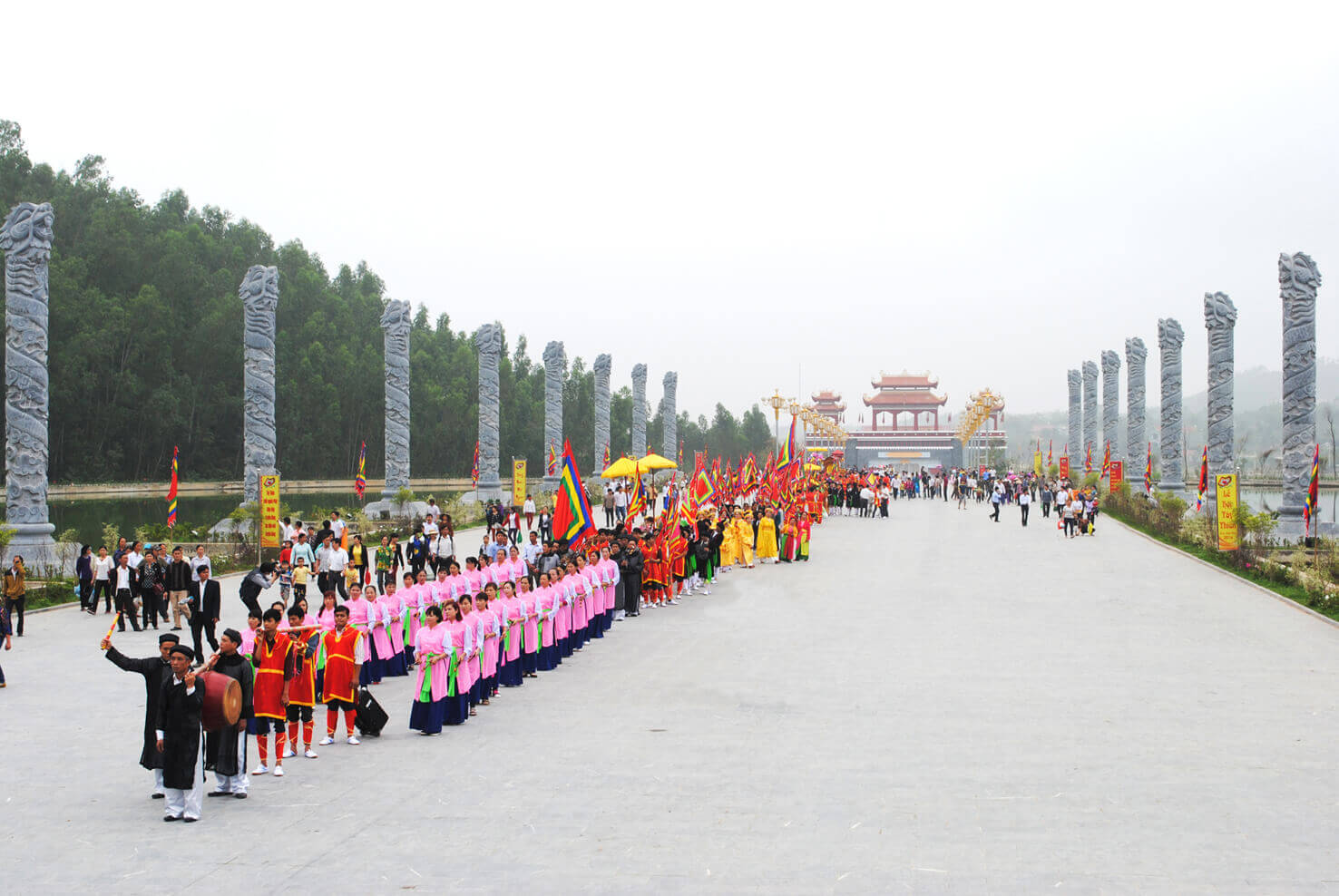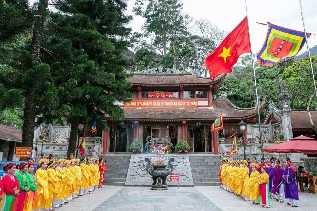 タイティエン - タムダオ歴史景勝地(タイティエン景勝地)は、ヴィンフック省タムダオ地区ダイディンコミューンに属します。タイティエンはタムダオ山系の渓谷に位置し、標高は54mから1,100m、分布範囲は約11km2で、美しく雄大な景観が広がっています。タムダオとは、雲海に浮かぶ 3 つの島のように、突然雲の中に浮かび上がる 3 つの連続した山 (山脈の中にある) を指します。古代の地質学によれば、フーギ山の高さは 1,250 メートルです。ティエン ティ (キム ティエン) の高さは 1,585 メートルです。サッチ・バンの高さは1,585メートルです。 タイティエン遺跡と景勝地は、タムダオ山脈のタックバン山の斜面に位置し、長さ11km、幅1kmで、共同住宅や住宅群を含む歴史的・文化的遺跡と景勝地の複合体です。トゥオン寺院、トーン寺院、マウ寺院、カウ寺院、コー寺院など、文化的および考古学的価値のある仏塔...この場所には、古い遺跡だけでなく、古いものの下に隠された考古学的研究にのみ価値のある文化的作品や地域が集中しています。タイティエン川沿いの森... トーン寺院: タイ ティエン遺跡システム全体の出発点となる建築物です。この寺院は山のふもとにあり、伝統的な様式で建てられた高くて広い壇の上にあります。石の台座システムは正面に沿って 3 方向に伸びており、4 つの大きな龍によって区切られています。続いては石材を用いて伝統様式で新たに再建された四柱神門です。儀式の門の後ろには、石が敷き詰められた非常に広い寺院の庭があります。メイン寺院は、正面玄関を含むディン型の間取りで、3 つの区画と 2 つの大きな翼があり、聖母の祭壇が置かれている「モール」には 3 つの垂直区画があります。 カウ寺院 - コ寺院: 川岸に沿ったでこぼこした石の道をトーン寺院を通過し、カウ寺院まで 1 km 以上進みます。かつては小さなお寺があったのですが、今は一見簡素な家屋に建て替えられ、礼拝の場となっています。本殿の中央には、3人の森の少年の像が安置されています。カウ寺院はチュオン シン川に由来し、国母に従うために「カウ」が兵を募り、集めるため滞在した場所と言われています。寺院は 1993 年に改修されました。 コ寺院は、カウ寺院から約2km、シルバーの滝の近く、ジャイオアン川(チュオンシン川の上流)の隣にあり、衆生が世界の塵を振り払い、静かに聖地に進むことができます。コ・テンプルにも長い歴史があり、現在は国母とともに民と国を救った天の子と言われるコ・ベを祀っています。ここの風景は優雅で広々としており、穏やかで、豊かな植生と一年中新鮮で涼しい気候に恵まれています。ジャイ オアン川と寺院の麓近くの古い井戸が、ここの空間に孤独と静けさを加えています。誰かがそこから水を汲んでお供え物と一緒に捧げ、それから飲むと、不思議なことにリラックスし、平和で穏やかな気分になります。 トゥオン寺院エリア: 現在、ここは民間信仰と宗教の両方が共通する精神的なエリアであり、その中心にはタイティエン聖母の祠があります。 トゥオン寺院: ここの山岳回廊の交互のレベルは、さまざまな神社の基礎を形成しています。トゥオン寺院は中央に位置し、その背をタック バン山に傾け、その両側には 2 本の山の腕が下に伸びています。フロントは広々としています。ここでは、雲が山と戯れ、木々が生い茂り、鳥が集まり、小川のせせらぎが心地よく鳴り響き、タムダオ山脈の聖地の一つを形成しています。トゥオン寺院は西 - 南を向いています。祭門は大柱と脇柱を壁でつなぐ四柱式の構造で、参詣者が出入りするための扉は中央に一つだけ残っています。この壁面にはドラゴンフルーツ(緑龍)やホワイトタイガー(白虎)、四季を象徴する植物などが描かれています。中央の石畳の中庭には、Phuc、Loc、Tho という 3 つの大きな文字 (縦につながった) が刻まれており、寺院に続く階段へと続く霊的な道があります。この建築にはディン様式の基部、3 つのコンパートメント、および 2 つの大きな翼があります。正面から見ると、この建築は 2 つの「一致する」床と 8 つの優雅に湾曲した屋根の角によって非常にバランスが取れています。中央の「マッチ山」には、国語で「タイ・ティエン祖国の寺院」と題された大きな横長の絵が掛けられている。本堂には中央の台座に座る像だけがあり、両足をまっすぐに垂らし、両手を枕に置き、右手に扇子を持った荘厳かつ豪華な姿をしている。 さらに、この地域にはソンタン寺院、コーチン寺院、ディアマウ寺院、タムトアタンマウ寺院、タ/フウヴーなどの新しく建てられた寺院もあります。 タムダオ山神廟: 伝説によると、チャン ニャン トン (1279 ~ 1293 年) の治世中に神が島の橋に祝福を与え、王から「タン ソン ダイ ヴオン」の称号を授与されたとされています。レ王朝初期、タイホア年第 8 年(1450 年)のニャントン王の治世中、王は大臣のレ・カック・フックを犠牲に送り、この出来事を記録したマ