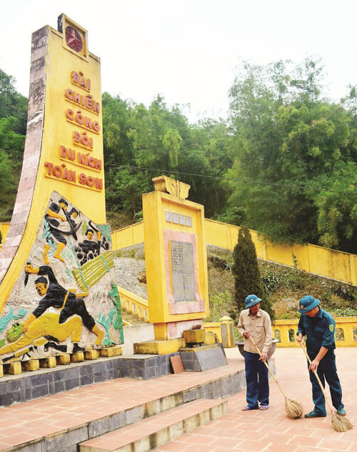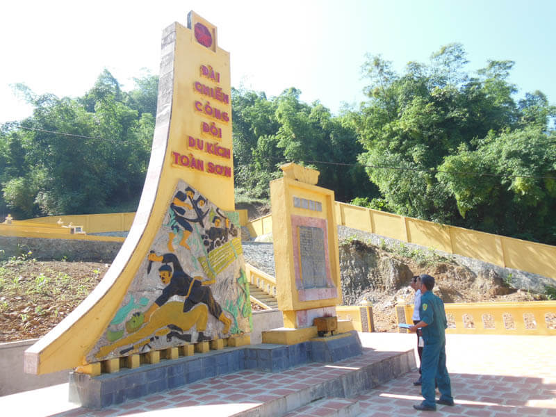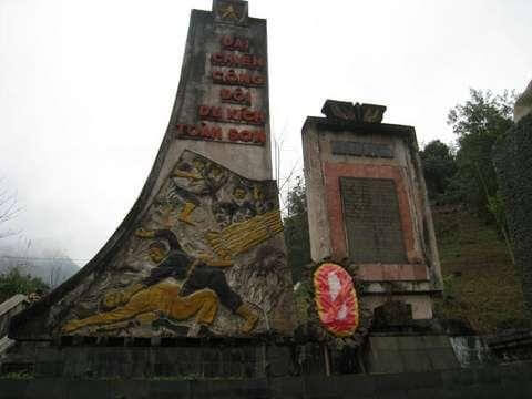 ホアビン省ダバック地区、トアンソンコミューン、トラ坂にあるトリウ・フック・リッチ記念碑。この記念碑は 1979 年に建てられ、芸術家のナン マイによって描かれました。この記念碑は高さ 3 メートル以上で、ダ バックの町に向かう道路の右側の丘の中腹にあり、1996 年に文化スポーツ省によって国家歴史遺物として認められました。 おそらくトアンソンコミューンの人々は、祖国へのフランス侵略者による度重なる襲撃を阻止するために戦ったゲリラチームを指揮する上で、常に勇敢で狡猾なキャプテン、トリウ・フック・リッチを知らないだろう。特に 1947 年 9 月 10 日の出来事は永遠に世代に語り継がれるでしょう。チェ村の駐屯地(旧トゥリーコミューン)にいるフランスの敵が、トアンソンコミューンの地域を掃討するために20人以上の軍団兵と兵士からなる小隊を動員したという知らせを彼らが受け取ったのはその時だった。トリウ・フック・リッチ率いるコミューンのゲリラチームは30人から構成され、敵を攻撃するための待ち伏せ計画を迅速に展開した。メンバーの初歩的な武器は、クロスボウ、毒を混ぜた弓矢、石の罠、竹竿、竹竿、ライフル、敵から盗んだ手榴弾でした。正午近く、敵が大挙して到着した。彼らが待ち伏せに陥るのを待って、トリウ・フック・リッチは攻撃を命令した。銃声、手榴弾が爆発する音、敵に向かって飛んでいく一連の毒矢。山の中腹から敵の陣形に石の罠が落ちたため、敵はパニックになって逃走した。この戦いで、トアンソンコミューンのゲリラチームは14人の敵を破壊し、4人を生け捕り、7丁の銃を捕獲しました... 歴史書には次のように書かれています:予期せぬ攻撃を受け、前進は失敗し、退却は阻止され、敵はサウ川を通って道に沿って逃げ、トゥ・リーまで退却しようとした。敵の意図を巧みに察知したトリウ・フック・リッチは、敵小隊を完全に破壊する決意を持って追跡するゲリラを送り込んだ。艦長自らが素手で敵指揮官を追いかけ、軍団兵を倒し、素早く短機関銃を奪った。その直後、敵の退却方向が我が陣地であることが判明した。基地エリアの秘密とゲリラチーム部隊の安全を確保するために、トリウ・フック・リッチは田んぼに逃げてすぐに敵の注意をそらした。敵は彼を発見し、すぐに追いかけて撃ち、重傷を負わせた。それでも彼は全力で短剣を引き抜き、近くに立っていた兵士を刺そうとした。トリウ・フック・リッチの勇敢な行動に夢中になった敵の兵士たちは彼に向けて弾丸を発射し、トアンソン・コミューンのダオ族の優秀な息子は英雄的に命を犠牲にした。 素手で敵の銃を奪い、粘り強く戦い、英雄的に犠牲を払ったトリウ・フック・リッチの行動は、敵の愛国心と憎しみに火をつけ、特にダオ族のフランス侵略者に対する戦意と勝利を奨励した。州内のすべての民族グループ全般。殉教者トリウ・フック・リッチは死後、フランスに対する第一級の抵抗戦争勲章を授与された。 1999 年 6 月 11 日、トリウ・フック・リッチは死後、国家から人民軍英雄の称号を授与されました。 彼とトアンソンコミューンのゲリラチームの多大な貢献を記念し、同時に将来の世代のための伝統的な教育に貢献するために、省人民委員会はトアンソンゲリラチームの戦勝記念碑の建設を指示し、完成しました。 1991年9月2日、建国記念日46周年。この記念碑は、英雄トリウ・フック・リッチが過去に倒れたまさにその場所に建てられました。彼の墓は記念館の敷地の最も高い場所にあります。現在、休日と新年には、トアンソンコミューンの役人、党員、住民が敬意を表して線香と花を捧げ、優秀な子供たちを追悼し、力を合わせて団結してより良い祖国を築こうという決意を新たにしています。 出典: ホアビン電子新聞