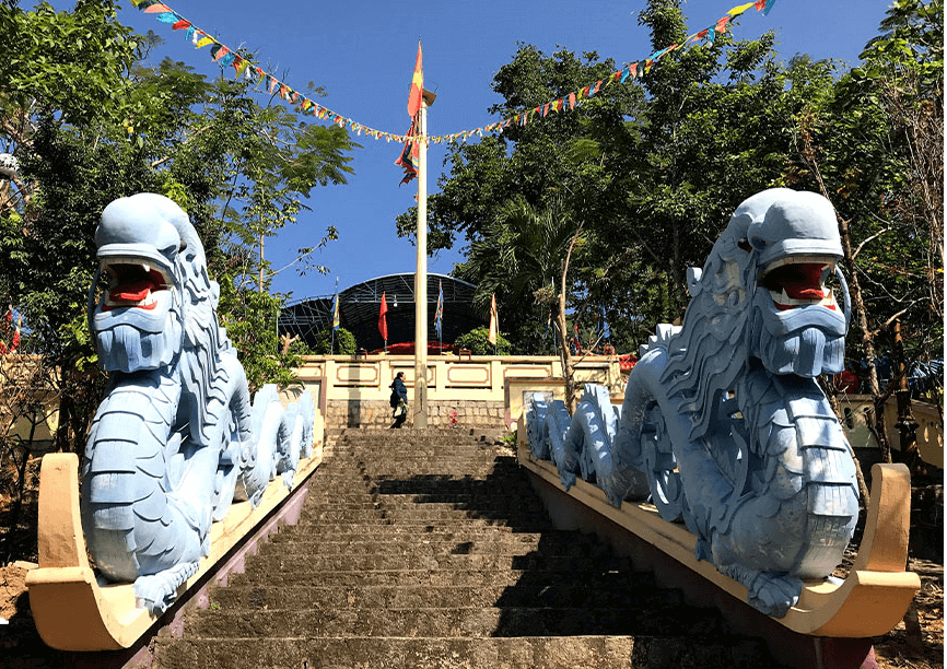 アム チュアは、クア ソン (クア ラン、チュア山、カム山) としても知られるダイ アン山にあり、かつてはダイアンが最も一般的な名前でした。ヌイチュアは、カインホア省ディエンカン地区ディエンディエンコミューンのダイディエンチュン村、海抜80メートルの山の中腹に位置する高さ284メートルの山です。 現在までのところ、アム チュアが建設された具体的な時期を特定する文書はありません。しかし、地元の長老たちの話によると、アム・チュアは当初、ホアソン山のダイアン山塔の隣にあった小さな庵であり、多くの修復を経て、この庵はティエン・イ・タンを崇拝する場所になったという。 。ダイ アンという名前の小さな塔はもう存在しませんが、母なる女神の崇拝と仏教儀式の融合は今もそのまま残っており、アム チュアの典型的な文化的特徴となっています。 アム チュアの礼拝の建築システムは、カインホアの共同住宅の建築と多くの類似点があります。この礼拝構造は、この地域の宗教建築と同様に礼拝と犠牲が調和しており、これがカインホア族の宗教的な特徴となっています。アム チュアの建築作品には、3 つの門、ティエウ夫妻の墓、碑文、ソンラム寺院、グーハン寺院、本堂などがあります。 本堂は戌年(1958年)に三度目、辰年(1988年)に四度目、そして、丑年(2009年)に三間大修理が行われました。建築的なフォルム。 神神殿は、祭壇、対向する一対のトゥレン、繊細かつシャープに彫刻された横隔膜で装飾されています。 最初の祭壇は、レディ・ティウの神を崇拝する香の祭壇です。ティエン・イ・タイン・マウの神聖な祭壇は見事に装飾されており、メインホールの礼拝構造の中で最も集中している場所です。両側には六仙と十二仙を祀る祠があります。聖母を崇拝する祭壇の左側には、四皇太子と十二幹部を崇拝する祭壇があり、叔父(聖母の息子トリ王子)の祭壇としても知られています。 右側には六仙と十二仙を崇拝する祭壇があり、貴婦人(クイ王女 - タイン・マウの娘)の祭壇としても知られています。本堂の祭壇はすべて銘木で作られており、繊細で独特な模様やモチーフが彫刻されています。本殿全体はトラス式の屋根構造で、価値の高い銘木を使用した主柱や軍柱が並びます。アム・チュアは今でもグエン王朝の王から与えられた2つの称号を保持している。 民間信仰によれば、3月はヴィア・バの月であり、「8月は父の命日、3月は母の命日」とされています。アム チュア フェスティバルは、毎年陰暦 3 月 1 日から 3 日まで行われ、モック ドゥック (像の入浴) 儀式、タム ヒエン ルオンの儀式、主な犠牲の儀式、ヴァン マウの歌唱、女性への捧げものといった伝統的な手順に従って行われます。役人、ハウトゥオン崇拝の儀式、焼香の儀式、そして影踊り。 伝説や民話を通じて、アム チュアはチャムとベトナムの 2 つの文化の価値観を自らの中に持ち込んだ文化と信仰の連続性を示しています。さまざまな痕跡はありますが、ティエン・ヤ・ナのイメージはベトナムの創造物であり、チャム族のポー・ナガルのイメージに由来し、すべての種の創造物を体現するイメージに由来していることは確認されなければなりません。 その有形および無形の文化的価値により、アム チュアは 1999 年に国家歴史文化記念物に指定されました。 出典: カインホア省ホーチミン共産主義青年同盟
