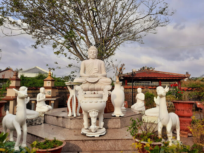 ファット トー パゴダはカマウ市 4 区にあります。この塔は 1840 年に建てられ、19 世紀の古代建築が残されており、カマウで最も早く仏教を広めた場所です。ファット トー パゴダの元々の名前は、この塔を建てた僧侶、ティク トリ タム尊者に対するカマウ地域の人々の長年の敬意に由来しています。 伝説によれば、1840 年頃、カマウ地区は葦地帯でしたが、人々がその土地を開拓しようとしていたとき、トー・クアン・スアンという青年が森に薪を集めに行ったとき、斧がそこに当たりました。古代の菩提樹の幹に木が現れ、その根元に経典が置かれていました。それ以来、青年はクアンロー運河のほとりで人々を治療するために薬を栽培し服用しながら、観音菩薩を崇拝するための神社を建てました。伝説によると、トー・クアン・シュアンは『金剛経』を唱えて野獣を変身させたという。言葉を知っている人々が、薬を求めたり、宗教を学んだりするために大勢やって来ます。この弟子の中には猛虎も法を学びに来ました。現在、その虎の塔は現存しており、寺院の弟子たちはそれをスーカウの塔と呼んでいます。 その後、人々の寄付のおかげで、トー・クアン・シュアンは木の葉で作った簡素な寺院を建てました。これを見て、その地域にいたド・ヴァン・ビエンは嫉妬し、彼を不誠実な道士だと非難した。彼は上官に逮捕され、サイゴン(現ホーチミン市)に軟禁された。 しかし、トー・クアン・シュアンの道徳心は、マンダリンたちに彼を賞賛させた。彼はフエに連れ戻され、キムチュオン塔で僧侶として出家しました。受戒後7日後に亡くなった。王は彼を「僧侶」に叙階し、同時に錦を授け、彼の遺骨をカマウに持ち帰るよう人々を派遣した。 彼を気の毒に思ったティウ・トリ王(グエン王朝)は、1842年にトー・クアン・スアンをティク・トリ・タム尊者に叙階することを布告し、古い森の隣にある茅葺きの庵を修復し、塔に「古代四観世音菩薩」の名前を飾りました。寺"。ティク・トリ・タム尊者は地域の人々から「仏祖」として崇められており、この塔は「仏祖塔」とも呼ばれています。 ファット・トー・パゴダは何度も改修されており、大規模な修復は1937年に行われました。しかし、基本的には古代の塔のオリジナルの状態が今でも維持されています。木像、木製盆、一輪挿し、銅鐸、平行文、国王からの勅命などの崇拝品が今も保存されており、ベトナム人が重要な進歩を遂げ始めた時期の仏教の発展を証明しています。南の地では、開拓活動とキン族、中国人、クメール族の3民族による共同体社会の形成が進められてきた。 アメリカに対する抵抗戦争中、仏塔は革命兵士を隠す場所でした。 2000 年 11 月 24 日、ファット トー パゴダは文化情報省によって国家歴史文化遺物として認められました。 山門の右側には、古代寺院の主要な建築物に加えて、仏教協会執行委員会の事務所、カマウ仏教中等学校、および尼僧特別委員会の事務所もあります。主要な建築物の左側には、貧しい人々のための無料のトゥエティンホール、仏教家族集会ホール、サンガハウスもあります... ここでは毎週、仏教の研究や講演会が開催されます。毎年、1月の満月祭、お釈迦様の誕生日、ヴーランなどの主要な仏教行事のたびに、仏塔はお祭りの場となり、多くの僧侶、尼僧、仏教徒が集まります。 出典: カマウ観光局