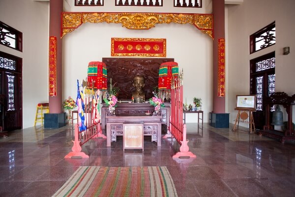 ビンキン共同体としても知られるグエン・ヒュ・カイン寺院はドンナイ川の左岸に位置し、以前はチャンビエン州ビンホアン村のビンキン村に属し、現在はビエンホア州ヒエップホア村のニーホア村に属していた。 1991 年 3 月 25 日に文化情報スポーツ観光省によって国家歴史遺物に指定されました。 グエン・フ・チャン寺院は、現在の寺院から約400メートル南に位置し、当初は板張りの壁と陰陽瓦屋根の小規模な寺院でした。文書には次のように書かれています。寺院はトゥドゥック 4 年 (1851 年) に初めて再建されました。 1923 年までに、寺院は現在の場所に再建されました。 グエン・フ・カインは、1650 年にタインホア省トンソン地区のギアミウで、王朝の多くの有名な将軍がいる家系に生まれました。彼は文武両道の人であり、数々の偉業を成し遂げ、グエン卿から信頼され、愛され、尊敬されていました。マウ ダン (1698 年) の春、彼はまだ荒廃していたダン チョンに侵攻するというグエン卿の命令に従いました。ドンナイに到着した彼は、クーラオポー(現在のヒエップホアコミューン)に本拠地を設置した。ドンナイの土地をフックロン地区として取り、チャンビエン宮殿を建て、サイゴンの土地をタンビン地区として取り、フィエントラン宮殿を建て、土地は数千マイルに拡張されました。彼は定住する移民を募り、行政機構を段階的かつ組織的に組織し、土地の埋め立てを奨励し、クーラオポーをこの世紀を通じて最も活気のある最も活気のある港町の一つに発展させることを促進し、南部の新しい土地を正式に併合しました。 Dai Vietマップに追加します。南部の侵略から帰還した後、翌年、彼は再びグエン・フック・チュー卿の命令に従い、チャンラップ王を制圧し南部国境地域を維持する軍隊を率いました。 Canh Thin 年 (1700 年) 4 月、任務を終えてラックガム (ティエンザン) に戻る途中、彼は病気になり、陰暦 5 月 16 日に 51 歳で亡くなりました。古い。埋葬のために故郷に向かう途中、彼の棺は、地元の人々が最後にもう一度彼に別れを告げる機会を持つことができるよう、かつて彼が本拠地を置いていたクーラオフォーの土地に停められた。マンダリンの共同住宅には、地元の人々がこの出来事を偲んで墓を建てました。グエン・フ・カイン氏の訃報を聞いたとき、グエン卿は非常に残念に思い、彼に「タン侯爵式」という町宰相の高官の称号を授与し、その位牌をタイの寺院に祀らせた。 出典: ドンナイ電子新聞