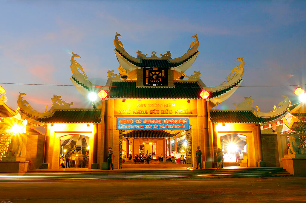 ブイ フ ギア総代記念エリアは、カントー市ビン トゥイ地区、ブイ フ ギア区、フイン マン ダット ストリートにあります。ここは、愛国的な詩人であり、ベトナムのオペラ劇場の草分け的作家であり、四大英雄または南部の 4 つの黄金龍の 1 人として知られる総代のブイ フ ギアの眠る場所です。 ブイ・フウ・ギア、ニックネーム・ギ・チーは、ヴィン・チャン宮殿のディン・ビエン地区ビン・トゥイ村(現在のカントー市ビン・トゥイ地区)で貧しい漁師の家庭に生まれた。山羊年(1835 年)、彼はフオン・チュオン・ザ・ディン試験でグエン賞(総代)に合格したため、人々はしばしば彼をギア総代と呼びました。彼はグエン裁判所によってビエンホア県(現在のドンナイ県)フックロン区トリ・フォック・チャン区に任命された。その後トリ地区、トラヴァン地区(現在はチャビン省)。 1848年、「ラック・ラン・ザ」事件で貧しい人々を弁護したため、マンダリンや富豪から無実の罪で告発され、法廷で死刑判決を受けた。妻のグエン・ティ・トンさんは夫の不当行為を訴えるため首都フエへ赴いた。ブイ・フウ・ギアは死は免れたが、ヴィン・トン(チャウ・ドク)の国境を守るために追放された。 1862年、彼はマンダリンからカントーのロントゥエンに戻り、貧しい人々に病気を教え、治療する学校を開き、その後フランス植民地主義者に対する愛国運動に参加した。彼は 1872 年 1 月 21 日に 65 歳で亡くなりました。 総代のブイ・フウ・ギアは、公正さ、誠実さ、国民と国への献身を示す輝かしい例であり、彼の有名なオペラ「キム・タック・キー・ズエン」はベトナム最古と考えられており、ベトナム全土で上演された最初のものでもあります。ベトナムのオペラがフランス語に翻訳される。 彼はカントーの文化的著名人の一人であり、人々から信頼され、愛され、尊敬されています。彼の名前は、侵略、抑圧、不正と戦う精神で輝いています。彼の優しさと国の文学への多大な貢献は、カントーの人々だけでなく南部地域全体の誇りです。 彼の才能と威厳を賞賛し、ビントゥイ村の人々は彼の像をビントゥイ共同住宅に崇拝しました。学生たちはナムニャ・パゴダで彼を崇拝するためにタブレットを設置しました。ラテライトで建てられた総代の墓は、何世代にもわたるカントーの人々によって常に手入れされており、定期的に修理され、装飾されています。 記念エリアのキャンパスは約1万平方メートルで、総工費は500億ドン以上。このプロジェクトは、彼の没後 141 周年にあたる 2013 年 3 月 1 日に発足しました。 遺跡地区の主な建築物は、赤茶色に塗られた直径約1メートルの柱が並ぶアンティーク様式です。木製の間仕切りと祭壇には精巧な彫刻が施されています。涼しげな緑の瓦屋根。 屋根の上部には、一対の魚が龍に変化するシンボルが強調され、屋根の四隅には鳳凰の羽が描かれています。 記念エリア内には、木々が生い茂る広々とした風通しの良い庭園があります。記念エリアには 3 つの大きな建物を含む 4 つの主要な作品があり、中央が教会、左側が展示室、右側がゲストハウス、そして入り口すぐに彼の才能と功績を要約した石碑と記念碑があります。 . 近隣および遠方からの観光客を訪問し、敬意を払うためのその他の補助的な作業も数多くあります。 出典: カントー観光局