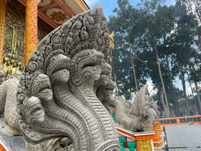 ソクチャンにある最も古いクメール塔の 1 つは、15 ~ 16 世紀頃に建てられ、チャ ティム パゴダです。現在、ソクチャン市内には同じチャ ティムという名前の塔が 3 つあり、人々はよくオールド チャ ティム、新チャ ティム、中期チャ ティムと呼んでいます。その歴史に基づくと、古いチャ ティム パゴダは最も古く、最も荘厳なものです。これは単なる古代の仏塔であるだけでなく、国を救うためにアメリカと戦ったソクチャン町(現在のソクチャン市)の僧侶とクメール人の勝利を記念する革命の遺跡でもあります。 チャ ティム パゴダは、約 500 年前、ソクチャン市ミースエン地区、ダイタムコミューン、タムチュン村にある 38,600 平方メートルの高地で乾燥した土地に建設が開始され、現在は 10 区のタムチュン地区にあります。市。パゴダはソクチャン市の 2 つの大きな道路、トラン フン ダオ通りと国道 1A 号線に隣接しているというユニークな場所にあります。 当初、塔は上級僧侶と寺院の僧侶が一時的に休憩するために数軒の僧院を建てただけでした。次に、上級僧侶が儀式に適した場所を選び、次に本堂、そして集会所(沙羅)を建てました。塔、灰貯蔵庫、火葬場...すべての建物は木または砂でできており、葉で屋根が覆われています。パゴダの周囲には、樹齢100年を超える数百本の古代の油の木や星の木があり、涼しくて神秘的で神聖な空間を作り出しているだけでなく、塔の修復や家、ボート、ゴーボートの建設のための木材を集めるのにも役立ちます。木は古くなりました。 寺院の建築には、本堂、サラ、地域の子供たちにパーリ語を教える学校、火葬場、パゴダのゴボートハウス、遺骨を納める塔など、クメール人の伝統的な特徴が残っています。木、石、青銅、ガラス、セメントで作られた釈迦牟尼仏像 40 体、漆塗りの木で作られた 2 体の龍獅子像 (龍の頭と獅子の胴体) (鹿 - 茶 - 石積みとしても知られています) など、数多くの工芸品が展示されています。 )、漆塗りと金メッキを施した木で作られた鹿の像で、僧侶が座って説教するために使用されます。 9 つの主要な就任式石板.... トラ ティム パゴダは、ソクチャン県のクメール人の芸術的な建築作品であるだけでなく、クメール人の寺院移転計画に対する直接闘争におけるソクチャン町の僧侶とクメール人の勝利を記念する場所でもあります。 1962 年に US-ディエム ソクチャン空港を拡張するために他の場所に行きました。 空港が仏塔の隣に設置されて以来、昼夜を問わず飛行機のエンジン音で僧侶たちが修行する清らかな神聖な空間に影響を与え、破壊してきた。この空港の場所は、以前はフランスの将校や役人のための競馬場でした。 1940年に日本はインドシナを占領し、1941年に捕虜を捕らえ、ソクチャンの人々は太平洋戦線で日本空軍を支援する後方基地として機能するソクチャン空港を建設するために競馬場を破壊した。 チャ・ティム・パゴダの人々と僧侶たちの闘争は小さな町内で行われたもので何ら被害はなかったが、この出来事はソック各地で僧侶とクメール人の直接的な闘争のきっかけとなったと言える。トラン県、僧侶を弾圧する敵に対して、修行僧である子供たちを兵士に強制する敵に対して。 1975 年の解放後、現在に至るまで、ソクチャン空港は第 9 軍区の軍事学校として使用されていますが、チャ ティム パゴダは依然として平和で自由であり、ますます以前よりも広く目立つように改修されています。 これらの勝利により、ソクチャン省人民委員会の決定により、この仏塔は 2004 年 5 月 12 日以降、革命の歴史的遺物として分類されました。パゴダはまた、善良で美しい宗教生活を目的として、農村部の交通機関、素晴らしい団結の家、新しい文化的生活の構築、貧しい子供たちの文盲の解消などに多くの資源を動員し、寄付した先駆者でもあります。 出典: ソクチャン観光局