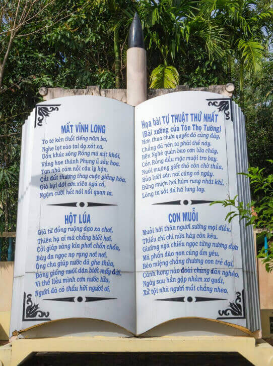 詩人ファン ヴァン トリの歴史的な墓は、カントー市フォン ディエン地区フォン ディエン町ニョン ロック 1 村にあります。 ここは愛国的な詩人ファン ヴァン トリ学士の眠る場所です。ファン トリは儒学者であり、生涯を通じて詩を武器として国の存続と発展のために戦い、人々から詩人、兵士として知られていました。この墓地は 1991 年に国の記念物に認定されました。 以前、詩人の墓は単純なセメントのみで建てられ、墓石のある緑の芝生の真ん中に位置していました。 1990年、人々の敬意を込めて、人々は協力して詩人ファン・ヴァン・トリの墓を磨かれた石で修復しました。墓は階段を上がって、立派な磨かれた石の碑文があり、柵があり、緑の芝生が少しの雰囲気を醸し出しています。詩、美しさ、そしてペンの勇気や生前の詩人の気質のようなちょっとしたエッジのようなもの。 2005 年までに、遺物は 2,060 平方メートルの面積でより大規模に修復されました。含まれるもの:記念館、展示場、墓、本と石碑(学士ファン・ヴァン・トリの有名な詩が記録されている)、蓮の池、観賞用植物、待合室...。 墓の敷地内で最も印象的なのは、詩人がページに書いたペンからのインスピレーションに基づいて建てられた石碑です。ペン先は上を向いており、中央には彼の有名な詩が書かれています。記念碑のすぐ後ろには、魂と誠実さに満ちて建てられた詩人ファン ヴァン トリの肖像画があります。 詩人のファン ヴァン トリは、1830 年にベンチェ県ギョントロム地区のタン フー ドンコミューンで、道徳を尊重し愛国的な伝統に富んだ儒家の家庭に生まれました。彼は幼い頃から聡明なことで知られ、1849年に20歳でギアディン学校のフオン試験で学士号に合格した。彼は儒学者であったが、人民搾取政策に直面していた。グエン王朝の法廷封鎖は国を弱体化させ、非常に失望し、役人にはならず、教育と詩を楽しむために引退した。ザーディンでは、グループ「Bach Mai Thi Xa」の創設に参加した。ここは学者や学者、客人が集まり詩を朗読する場所です。 1858年、フランス植民地主義者がダナンを攻撃するために発砲し、我が国への侵略戦争が始まりました。この時、ファン・ヴァン・トリはタンアンのビンチャ村(現在はティエンザン省)に移り、その後ビンロンに戻り、貧しい人々に薬を教え、集めるための学校を開きました。 1868年、ファン・ヴァン・トリはカントー省フォンディエンのニョンアイ村に戻って居住し、「国家の栄光を永遠に求めた」マンダリンを批判する詩を教え、作曲する学校を開き続け、同時にマンダリンの士気を称賛した。国民、愛国的な兵士、学者。彼の詩の各行には、愛国心、国民への愛、そして友人と敵の間の決定的な区別に満ちた魂が刻み込まれています。 Canh Tuat 年 (太陽暦 1910 年 6 月 22 日) の 5 月 16 日、愛国的な詩人で独身のファン ヴァン トリは、フォン ディエンのニョンアイ村にある簡素な茅葺きの家で純粋な心で休息し、多くのものを残しました。人々の間で後悔が広がっている。学士ファン ヴァン トリの眠る場所は、何世代にもわたって地元の人々によって常に修復され、保存されてきました。 現在、詩人ファン ヴァン トリの歴史的な墓は、観光、学習、伝統的な活動、文化交流の場所となっています。特に、毎年太陽暦の 6 月 22 日、バチェラー ファン ヴァン トリの死に際して、地元当局と地域の人々は非常に厳粛な命日式典とその死を記念する文化芸術活動を企画します。詩人であり兵士であり、特にフォンディエン地区とカントー市全般の記念碑の毎年恒例の祭りを企画しました。 出典:カントー観光情報ポータル