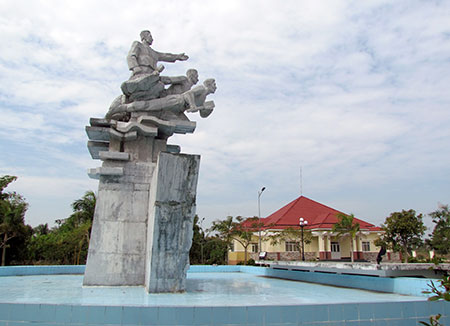 ヴァン カイ シン戦勝記念碑は、ハウザン省ヴィタン市 7 区にあります。 1949 年以来、ロンミ地区の解放地域は広大で、フランス植民地主義者に対する抵抗戦争中に人々を保護する場所であり、州および地方機関の拠点でした。 1951 年と 1952 年、敵は大敗を喫し、主戦場で消極的であったため、フランス植民地主義者は「すべてを燃やす、すべてを破壊する、すべてを殺す」という 3 つのクリーン政策を実行し、経済を妨害し、多くの大規模な軍事作戦を開始しました。ロンミ地区の解放地域への襲撃を拡大し、ウミン革命基地地域への襲撃を拡大した。 上記の陰謀を実行し、フランス植民地主義者は我が国の軍隊を破壊し、革命後方部隊を妨害するために、ロンミとヴィタインの革命基地の解放地域への大規模な掃討作戦を開始した。敵の意図をしっかりと理解し、カントー省大尉フイン・トゥー同志は、機雷戦で豊富な経験を持つ部隊であるカントー省第410大隊所属の第4053部隊に直接任務を割り当てた。そしてチャウタン川。戦場を視察した後、敵はロンミ解放区の腸内を攻撃したいと考え、カウドゥックからホアルー - ヴィタンまでの唯一の道である道路を使って行進した。解放区への敵の襲撃と襲撃を防ぐために、道路を攻撃し、道路のこの区間にあるカイシン鉄橋を破壊しました。 1952年12月22日の朝、敵が道を空けるために砲撃を行った後、フランス人将校に率いられたフランス人、ベトナム人、カンボジア人の兵士を含む第14機動大隊は、破壊された道路上で慎重にホアルー地区に進軍した。 、草や木は忙しいです。午後3時、敵はヴァンカイシン運河に到着し、橋が我々によって崩されたため、彼らは船がカイシン運河を渡ってくれるのを待つためにここに軍隊を集めた。 私たちの予測通り、1952 年 12 月 21 日の夜、私たちはヴァン カイ シン運河に 2 つの地雷と数千キログラムの爆薬を設置し、戦闘の準備を整えた第 410 大隊の工兵グループ (3 人の同志) を派遣しました。午後3時近くになると、カウドゥック交差点から鉄電車が発車する音がうるさく聞こえてきた。私たちの兵士たちは非常に冷静で、敵の兵士がLCT(兵員輸送船の一種)から完全に下船するのを待っていました。船が軍隊をホアルーの海岸に連れて行くためにヴァム運河の真ん中まで後退すると、私たちの兵士たちは電気を流し、空が爆発し、白水の柱が数百メートルの高さまで上昇して崩壊し、逆さまの船を川に沈め、マンダリン・バー(船長)1名、マンダリン・ナット(少尉)2名を含む400名近くの敵が襲った。 )は破壊され、12 mmピストル、運用地図、20 mmと13.2 mmの2つの重砲、5丁の短機関銃、12丁のライフルが押収され、ロンミー-ヴィタン解放基地エリアの襲撃計画は完全に失敗しました。 。 ハウザン - カントーの戦場でのフランス軍との抵抗戦争中、ハウザン - カントーの軍隊と人々は、最も多くの敵を破壊するという 2 つの輝かしい偉業を成し遂げました。それは、タムの戦いでの 4 つの戦闘における自動車との戦いでした。ヴー、タム・ヴー 4 の戦いとヴァン・カイ・シン運河での艦艇戦闘で 105 mm 大砲を捕獲し、勝利を西側と国全体に轟かせました。カイ・シンの勝利は重要な意味を持ち、1951年から1952年のベトバック国境作戦における主戦場や全国の他の戦場と連携して敵を受動的な位置に追い込むことで敵軍の損失と破壊に貢献した。 、失敗し、抵抗戦争の力強い発展を促進するための新たな立場と勢力を生み出し、世界を震撼させた「ディエンビエンフー」の勝利(1954年5月7日)につながり、フランス植民地主義者にジュネーブ協定への署名を強制した。 、ベトナム戦争を終わらせ、半独立国ベトナムの古い植民地体制を終わらせ、南部ではアメリカ帝国主義の新しい植民地体制に対する抵抗戦争を続けた。 「ヴァン・カイ・シン」の勝利の意味と重要な歴史的価値から。 2007 年 8 月 3 日、文化情報省はヴァン カイ シンの勝利を国定記念物に指定しました。 出典: ハウザン省電子情報ポータル