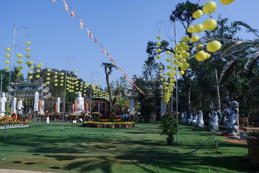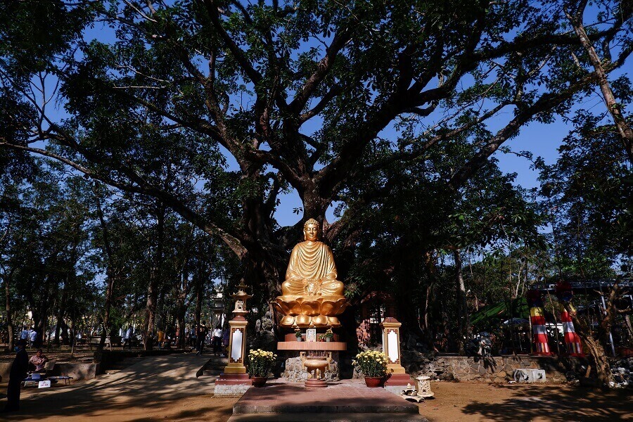 ティエン アン パゴダは、クアン ガイ市内中心部から 3 km、ソン ティン区ティン アンコミューンのティエン アン山の頂上にあります。古代の塔はクアンガイで最も美しくユニークな建築物です。 ティエンアンパゴダは 1716 年に開設され、形成されましたが、当時、ここは小さな静かな庵に過ぎず、訪れる人もほとんどいませんでした。その後、寺院は修復され、ここを訪れる僧侶、尼僧、仏教徒の数はますます増えました。 1717 年、この場所にはグエン フック チュー卿から「Sac Tu Thien An Tu」と書かれた銘板が与えられました。パゴダで数か月間風雨にさらされていたため、標識は深刻な損傷を受け、1946 年に禅師ホアン フックによって再作成されました。そして、この場所が正式に修復され建設されたのは 1964 年になってからでした。 1965年。 ティエンアン寺は創建以来、5 回の修復、建設、拡張を経てきました。現在までに、寺院の敷地は約1ヘクタールに増加しました。設立と存在から 300 年以上にわたり、ティエンアン寺には約 15 人の住職がおり、そのうち 6 人が僧侶、つまり 6 番目の祖先として崇められています。パゴダの豊かな歴史により、ティエンアンパゴダは 1990 年に文化スポーツ省の国の歴史的遺物リストに登録されました。 ティエンアンパゴダは周囲を壁で囲まれた非常に広い空間を持っています。ティエンアンパゴダは、月の側面にある龍の精巧なモチーフと、巻物や並列文のシステムが印象的です。三つ門の上には守護神の像が安置されています。内部には仏像の両側に羅漢像が2列に並んでいます。ティエンアンパゴダの敷地内には、一年中木陰を提供する古木が茂る広大な土地があります。ティエンアン寺はルオン建築様式で建てられ、すべて木造で、正面に主塔があり、寺院の敷地の後ろに祖霊舎があります。特に境内には地域に広く響く貴重な鐘がある。ティエンアンパゴダの周りは花畑です。中でも、周囲の寺院の境内にある観世音菩薩像には花や美しい観葉植物がたくさん植えられています。 パゴダの東には墓エリアがあり、これは住職の埋葬場所です。南にはフイン・トゥック・カンの墓があります。北には香り高い花が咲く大きな蓮の湖があり、湖の水は青く、湖の真ん中にある岩場が最も印象的です。次は蓮の像と仏塔のある僧侶の墓です。ティエンアンパゴダは境内に仏井戸があることで有名で、井戸の水は深くて一年中冷たいです。仏陀の井戸の特別な点は、この井戸の水源が枯れたことがなく、ここの人々は井戸の水を飲むとあらゆる病気が治ると信じていることです。 ティエンアンパゴダ - 多くの神聖で神秘的な逸話に関連する 300 年以上の歴史を持つパゴダ。寺院は、近い将来に良いことが起こることを願って祈りを捧げる場所です。 出典: クアンガイ省人民委員会
