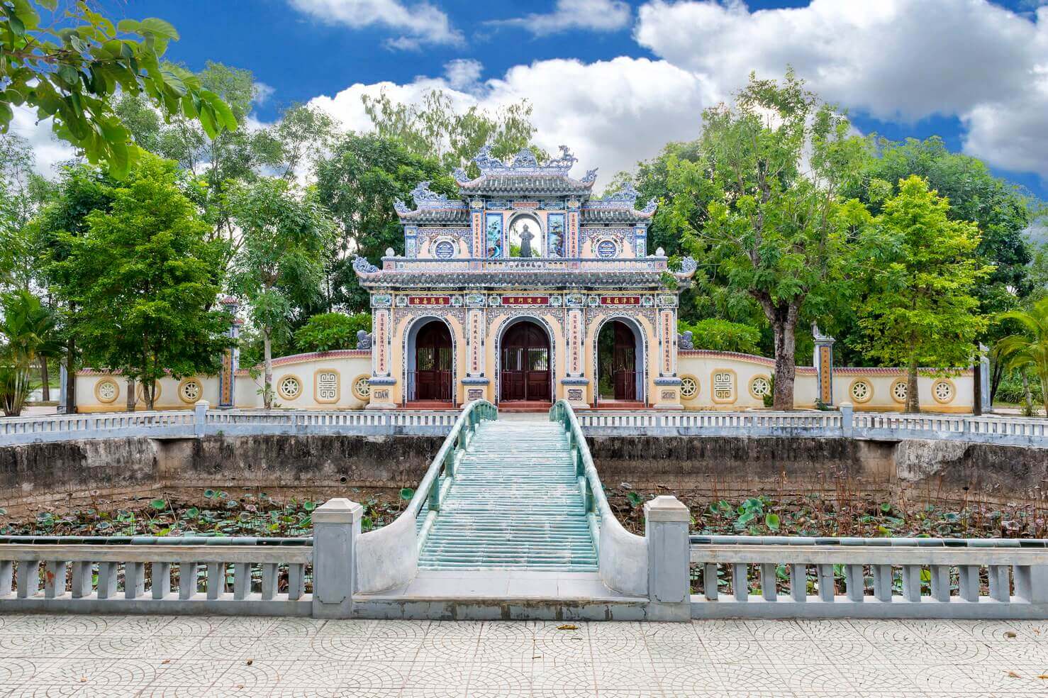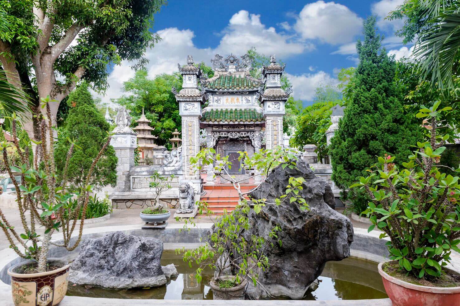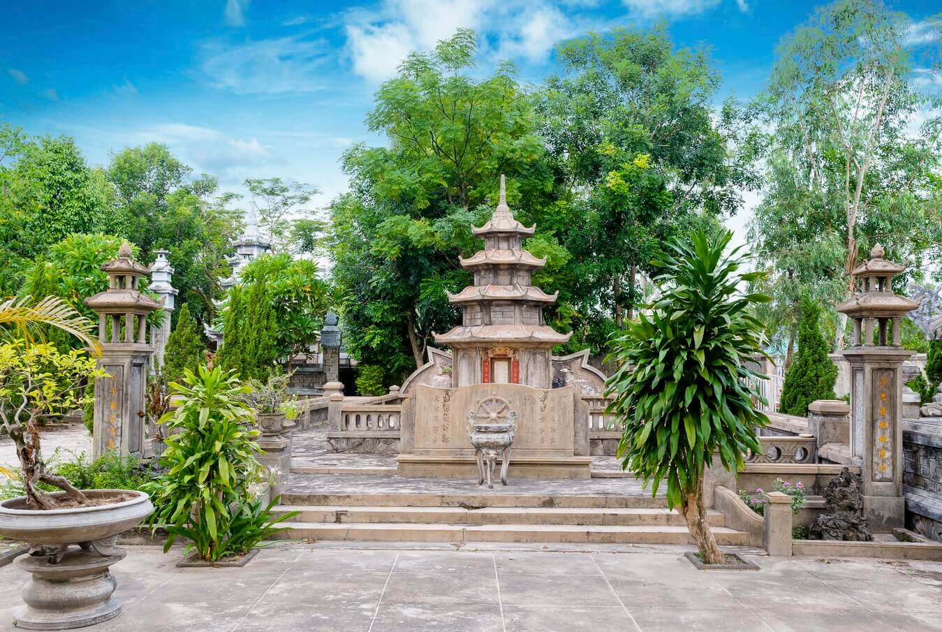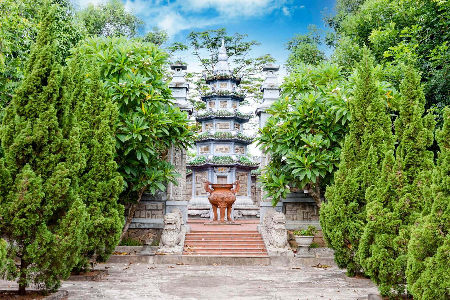 サックトゥパゴダは、クアントリ県トリウフォン地区アイトゥ町のアイトゥ村の南西の丘の上にあります。この塔は北方仏教宗派に属します。 サック トゥ ティン クアン パゴダはもともとアム ティン ドーと呼ばれ、レ王朝 (1735 ~ 1739 年) の初期に建てられました。キー・スー王の 5 年(1739 年、レー・イ・トン王の治世)、グエン・フック・コート卿(ヴオン・ヴォ)はある時クアン・トリを訪れ、仏殿の風景と寺院の評判に感銘を受けました。そこで彼はペンを使って「Sac Tu Tinh Quang Tu」という 5 つの単語を書き、それを赤い漆で作り、金メッキを施した額を塔に贈りました。 それ以来、ティン ド アムはティン クアン パゴダに変更され、それ以来人々はこの塔をサク トゥ パゴダ (国家が定めた塔) という名前で呼ぶようになり、仏教徒はサク トゥという組み合わせを使用していました。ティンクアンパゴダ。 塔の構造はマッチ積み屋根の伝統的な梁家屋で、主な材料はセメントと鉄筋で、総面積は 837 平方メートルです。屋根は漆喰アートや磁器で精巧に装飾されています。塔の屋根は真っ直ぐで、龍の模様が施されています。境内には観世音菩薩碑(1976年建立)や亡き住職の墓である塔が多数ある。 三つの入り口がある門は屋根が 2 階で建てられており、上階には塔に面して護法の像が飾られています。三つの門の後ろに蓮池に架かる橋があり、塔の前庭と本堂に入ることができます。本堂は奥行き31メートル、幅27メートル、高さ約15メートル、マッチ積み屋根の建築で、屋根には四頭の神聖な動物が飾られています。正面の 2 つの屋根の間には、誕生、出家、悟り、説法、涅槃という釈迦の生涯を描いた 5 つの浅浮き彫りがあります。 サックトゥパゴダの本堂は中央の空間にあり、上流階級はタム・ザ像を崇拝し、その隣に釈迦牟尼が瞑想し、左右にアナン・ダとカ・ディエプが立っています。一番外側は弥勒菩薩、生まれたばかりの釈迦です。左側には観世音菩薩像が祀られています。正面には一角獣の上に座る観音菩薩の像があります。友人たちは地蔵菩薩像を拝み、その前には龍馬に乗った文殊菩薩像が安置されている。ホールの後ろには、達磨大師、サック トゥ パゴダの創始者チ カ総主教、そしてパゴダの第一世代の住職に属する 2 人の僧侶、トゥエット フォンとブウ ガンの像が祀られています。 この塔には、1997 年に鋳造された重さ 2,700 kg の青銅製の釈迦牟尼仏像と、水牛の革で作られた直径 165 cm の大きな太鼓があります。境内には観世音菩薩駅があります。 サック トゥ ティン クアン パゴダは、ダン チョンにある有名な仏教の祖先寺院であり、多くの有名で高徳な僧侶が育成され、訓練を受けてきた場所です。 旧暦 2 月 18 日に毎年行われる命日祭は、クアントリや近隣の省の数千人の僧侶、尼僧、仏教徒、そして各地の巡礼者が参加して大規模に開催されます。 1991 年 11 月 15 日、塔は国家歴史文化遺物に指定されました。 出典: クアン・トライ新聞