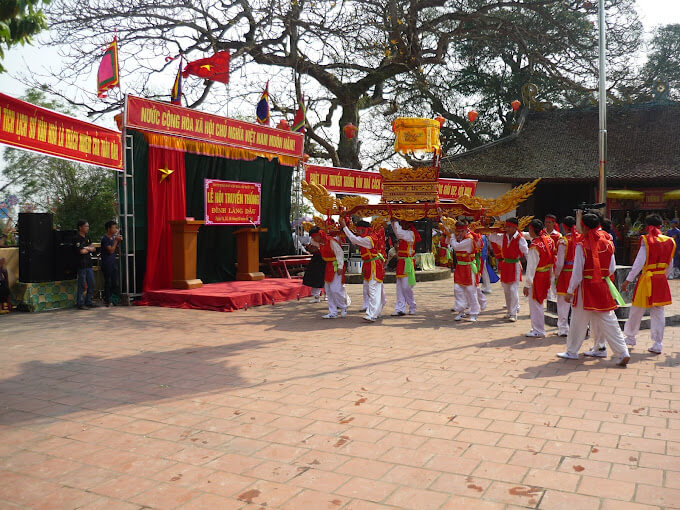ダウ村はミ・ドイ村とも呼ばれ、ハナム省ビンルック地区アンミ・コミューンにあります。豊かな歴史を持つエリアに位置します。ここでは、15 世紀初頭に明の侵略者と戦うために反乱軍を指揮したア ダオ、グエン フオン、グエン クエの 3 姉妹が崇拝されています。 ゴック・ディン・ダウの家系図と地元の伝説によると、アー・ダオ姉妹の父親はフン・イェンのティエン・ルー地区からボー・サ・ビン・ルクコミューンに来て、側室のティ・フォンと結婚し、ア・ダオ、グエン・フオンを出産したとされています。 、グエン・クエ。当時、明の侵略者が我が国を侵略し、トランコートー(現在のアンミコミューン)で人命を奪い、財産を略奪し、多くの悲劇を引き起こしました。 明の敵の横暴な行為に直面したア・ダオは、敵と戦い、人々への被害を取り除く方法を見つけるために、二人の子供たちと村人たちと話し合った。 ボサ村とコートー村の反乱軍はミンの敵基地を攻撃することを決定した。 2月14日の真夜中、ア・ダオは軍隊を3つのグループに分け、コトーの村民と連携して敵の拠点を攻撃して破壊した。出発前、武装勢力はバインデーを食料として使用し、サトウキビを水として使用し、火は絶対に使用しませんでした。襲撃は敵の拠点を破壊することに成功した。古代トーの人々は解放され、村に平和を取り戻しました。 人々と国を救った英雄たちへの感謝の気持ちを忘れないよう、地元の人々は行進ルートに寺院を建てました。そのため、ダウ村には三方に小さな寺院が 3 つあり、それぞれの寺院にはア ダオ王女、グエン フオン王、グエン クエ王などの将軍が祀られています。 ダウ村の人々はまた、長い年月を経て良い言葉で任命された神々を地域社会が崇拝する場所として、湾曲した屋根と精巧な彫刻を施した大きな共同住宅を建てました。特別なのは、村が2月15日に「ミンビン城の破壊、伝説の暴露」(明の敵の城を攻撃した伝説のデモンストレーションの冒頭)を行うことだ。 上記の伝説に加えて、ダウ村の共同住宅では、ブイ コン バンとブイ コン ミンという 2 人の医師も崇拝されています。ル王朝の二人の医師は名を馳せ、ダウ村の人々の勤勉さの象徴でした。 ホーチミン時代、ダウ村は党委員会とビンリュック地区の人々の歴史の英雄的なページが書かれた「赤い住所」でもありました。 1930 年、ミトーコミューンの党支部がダウ村の遺跡群の寺院地区に正式に設立されました。フランス植民地支配に対する頑固な闘争運動を開始した。ダウ村の共同住宅と祖国のエリート党員は、同志ホアン・クオック・ベト(北部党委員会)、同志チャン・トゥ・ビン、ファム・モン・サック、カなど多くの上級革命兵士を保護し、保護した。ハナムで革命運動を主導する。 1950 年から 1954 年にかけて、ダウ村のゲリラは国道 21 号線上の敵陣地や周囲の駐屯地を何度も包囲し、攻撃しました。 1954年3月、ハナム省の第37中隊とビンリュック地区の第60中隊がフランス第9大隊を襲撃し、多くの損失を出した。 ダウ共同住宅の歴史的および文化的価値と、地元住民の英雄的な革命闘争の伝統への広がりを考慮して、国家はダウ共同住宅を歴史的遺物として認定することを決定した。 出典: ハナム省ビンリュック地区電子情報ポータル