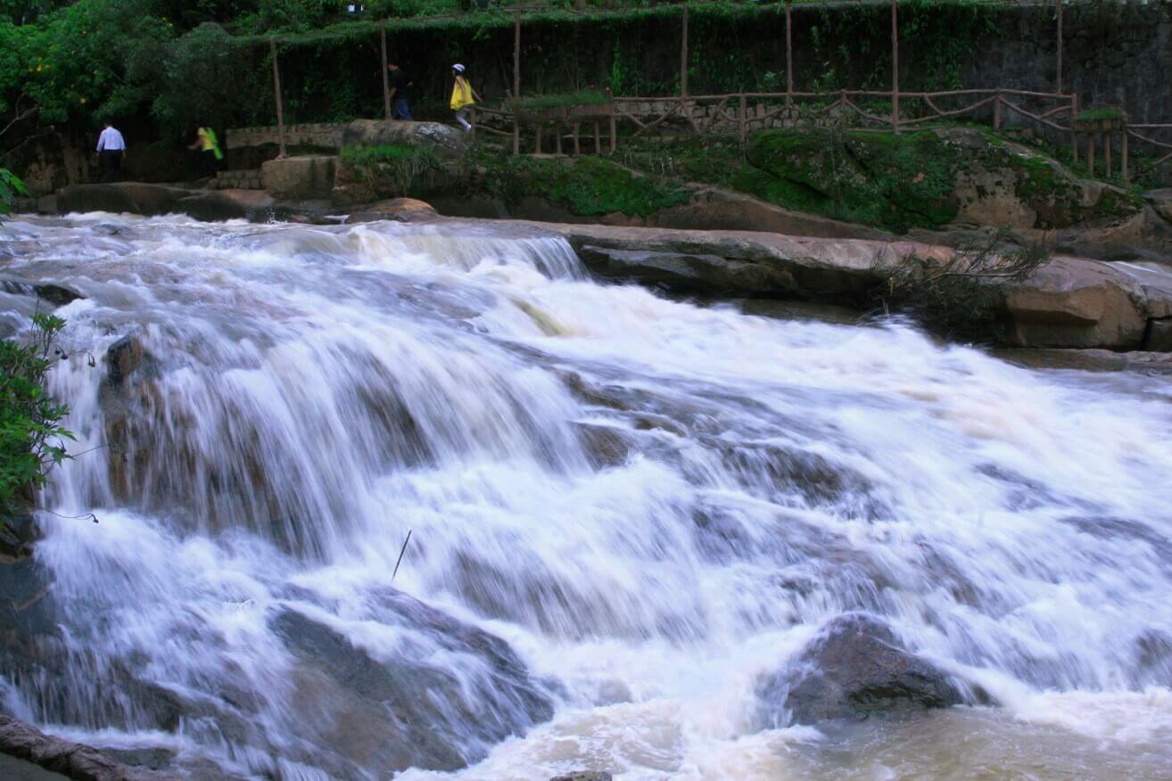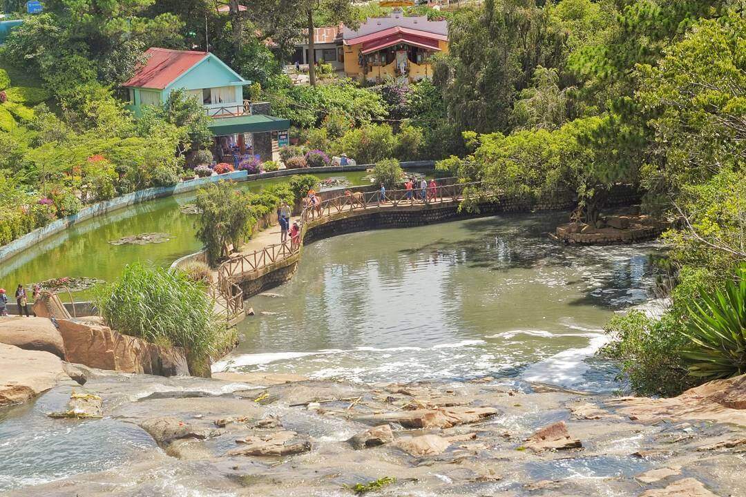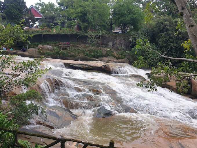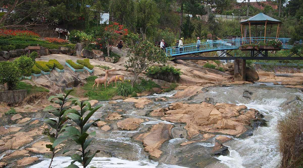 カムリー滝はダラット市の西2kmに位置します。これは市内中心部に最も近い滝と考えられています。カムリー滝はカムリー川の隣にあり、この滝はスアンフーン湖から流れ込む水の一部で形成されており、別の流れであるカムリー川もここを流れています。 カム リー滝は、この時代に功績を残した人々に対する人々の追悼、感謝、敬意を物語る滝の 1 つです。伝説によると、カム リー滝はコー言語に由来するとされています。ラッハ(ラット)族の人々は、カム リー川とダ ドン川の境界であるカム リー滝をリエン トゥ スラと呼んでいます。新しい村の人々は、当時のラック族(ラット族)の族長クムリーの名前を名乗り、この族長への感謝の気持ちを表し、記念しました。この酋長は部族全体の食事と睡眠の世話をし、人々と調和して暮らし、村の人々の生活が豊かで豊かで完全なものとなるよう配慮しました。したがって、滝に与えられたこの首長の名前は K'MLy であり、後にカム リーと発音されました。 中国とベトナムの語源によると、カム リーは淡水の小川を意味します(カムは甘い、リーは浸透性を意味します)。 カム リー滝は詩的な美しさを持ち、特に雨季には水の流れが速く、巨大な水塊が激しく流れ落ちます。市内中心部に近い便利な場所にあるカム リー滝には、毎年多くの観光客が訪れます。 カム リー滝のふもとには小さな花畑があり、調和のとれた美しい景観の形成に貢献しています。さらに、滝のエリアには、多くのユニークな建築物で建てられたグエン・フ・ハオ廟もあります。 1998 年、カム リー滝はダラットの景勝地および歴史的遺跡として州によってランク付けされ、国家記念物として認識されました。 出典:ダラット観光情報ポータル