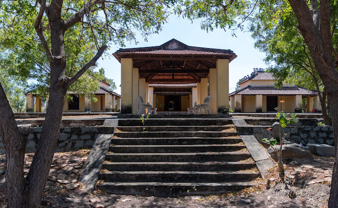 ポー クロン モ ハナイ寺院は、ビントゥアン省バクビン地区ルオンソン町ルオンビン村の高台に建てられました。この寺院は、チャンパ王国の最後の王の 1 人であるポー クロン モ ハナイ王を祀る場所です。 ポー・エクランの前の統治下で、ポー・クロン・モ・フナイにはマハ・タハの称号が与えられました。彼は 1622 年に王位に就き、1627 年に亡くなり義理の息子に王位を譲るまでその職に留まりました。伝説によれば、ポー・クロン・モ・フナイには息子がいなかったため、愛するチュールの羊飼いに王位を譲り、娘をポー・ローマと結婚させたという。 パンドゥランガの伝説と歴史によれば、ポー・クロン・モ・ハナイには2人の妻がいた。1人は王妃ポー・ビア・ソム(チャム人)、もう1人は側室のグエン・ティ・ゴック・トゥオン(ベトナム人)だった。ゴック・トゥオン夫人はサイ・グエン・フック・グエン卿の娘です。 ポー クロン モー ハノイは非常に短期間の権力の座にありましたが、第 1 区ルオンソン町ルオンビン村にあるチャンパで最も美しい霊廟群 (現在のポー クロン モー ハノイ寺院) を後世に残しました。ビントゥアン省ビン。しかし、戦後は荒廃が激しく、子孫の手によって復元されました。さらに、ビントゥアンにはポー クロン モ ハナイ王家の黄金の宝物が数多くあり、彼の子孫によって大切に保管されています。彼らはまた、パンドゥランガとグエン卿の2つの王朝の間の書簡を完全な状態で保存しました。 ポー クロン モー ハノイを崇拝する寺院は 4 つの部屋で構成されており、すべての部屋のドアは東と北を向いています。寺院の主要な空間は 3 つのフロアで構成され、上部に行くほど小さくなります。上部には王の権威を象徴する4匹のマカラ(チャム神話に登場する動物)が取り付けられています。 寺院の中央には、独特の精緻な模様で装飾された大きな緑色の石の塊から彫られたポー クロン モ ハナイ王の像があり、これは今日まで無傷で残っているチャム族の像としては最大のものの 1 つです。 本堂とつながっており、本堂を経由して副堂が 2 つあり、チャム王妃や宮廷功労者のマンダリン、ベトナム人の側室などが祀られています。 北の寺院には、ハノイのポー クロン モー王の最初の妻であるチャム女王ポー ビア ソムの像が祀られています。寺院には、国王の息子と娘への崇拝を象徴する、美しく装飾された 2 つのクート像もあります。南の部屋にはベトナムの側室グエン・ティ・ゴック・トゥオンの像が祀られています。 毎年、ケート テトの機会に、ファン タイン コミューン (バクビン) のチャム族の人々は、ハノイのポー クロン モー寺院で多くの厳粛な儀式を伴う犠牲を組織します。 クロンモー・ハノイ国王を祀る寺院ですが、この寺院には国王の像が祀られているだけで、グエン・ティ・ダオさんの家(ティンミー村~ファンタインコミューン~バク)にはクロンモーハノイ国王時代の王室の遺物が保管されています。 Binh) 寺院の北 15 km。以前、このコレクションはファン ソン (バクビン) のラグライ族によって保管されていましたが、犠牲の儀式が行われると、ファン タインのチャム族は品物を受け取るために人々のグループをファン ソンに送り、その後行列を行いました。 (歴史上、チャム族とラグライ族は密接な関係にあります)。 ハノイのポー クロン モー寺院は、今日までユニークな建築物と遺物が保存されており、1993 年 7 月 13 日に国家歴史的遺物として国家に認められました。 出典: ビントゥアン観光局