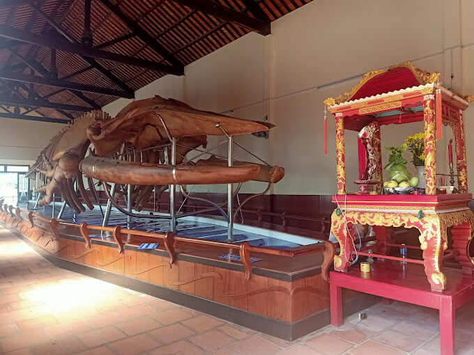 Van Thuy Tu Palaceは、ビントゥアン省ファンティエット市ドゥックタン区のグオン通りにあります。これは、航海の歴史と文化、特にビントゥアン省、特にファンティエットの漁民の神ナムハイ(魚 - クジラ)を崇拝する習慣に関連した古代の芸術的な建築作品です。 特に中南部地域の海乗り住民とベトナム人全般の信仰によれば、オング魚は海で嵐や事故に遭遇すると必ず現れて助けてくれる水の神であるため、海に行く人々は崇拝しています。オングの魚を守り神と考えています。したがって、死んだオング魚(慣習的にオンギアイ魚と呼ばれる)に遭遇した場合、人々はしばしば埋葬の儀式を行い、非常に敬意を持ってそれを崇拝します。 ヴァン トゥイ トゥ宮殿の話に戻りますが、古文書によると、この宮殿はオング魚を崇拝するためにニャム ゴーの年 (1762 年) に設立されました。宮殿は当初、茅葺き屋根の木造家屋でしたが、徐々にレンガの壁と陰陽瓦屋根に改修され、総面積は約500平方メートル以上になりました。 250 年以上の風霜を経たにもかかわらず、この建築物はまだ完全な状態で残っています。 ヴァン トゥイ トゥ宮殿のデザイン、装飾、礼拝は共同住宅と非常によく似ているため、共同住宅と呼ぶこともできます。ヴァン トゥイ トゥ宮殿の中央にあるメインの香箱はナム ハイ ク ゴック ラン トン タン (つまりナム ハイ氏) を祀っており、左側はティエン スー トン タン (農業と漁業の祖先) という名前のハイ ホアン タイを祀っています。右側はトゥイ ロン タン妾ヌオン ヌオン トン タン(水の女神)を崇拝しています。一言で言えば、海洋職業に関連するキャラクターを崇拝することです。 さらに、ヴァン トゥイ トゥ宮殿には、祭壇、彫像、水平パネル、並行文、ダイホン将軍の碑文などの礼拝内容に示されている、海洋工芸に関連した中国ノムの文化遺産も数多くあります。グエン王朝の王によって数多くの叙階が与えられた古代遺跡の 1 つ。古い歴史によると、過去にタイソン王朝と戦った際、グエン王朝の将軍たちは海でクジラに何度も助けられたという。現在、宮殿ではティエウ・トリ、トゥ・ドゥック、ドン・カーン、ズイ・タン、カイ・ディンという24人の王が叙階されている。ティウ・トリ王だけが10の神色を授けましたが、これは他の聖遺物と比べても珍しいことです。 ヴァン・トゥイ・トゥ宮殿の敷地内には、ゴック・ラン聖地と呼ばれる広大な土地があり、クジラが死んで海から流れ着くたびに埋葬されていました。慣例によれば、最初に「祖父」に出会った漁師がその「長男」となり、この人が葬儀を丁寧に執り行い、3年後に弔いをするというものである。信念は人と人との関係に似ています。 特に、ヴァン・トゥイ・トゥ宮殿には、ベトナムと東南アジアで最長かつ最大のコククジラの種であるオンクジラの、生きていた当時の長さと体重を再現した骨格が現在保管され、崇拝されている。約22メートル、65トン、骨がほとんど欠けることなく保存されています。骸骨は100年以上前のものです。 ヴァン トゥイ トゥ宮殿はファン ティエット沿岸地域の人々に多くの祝福をもたらす、まさに神聖な場所です。」 出典: ビントゥアン省観光促進センター