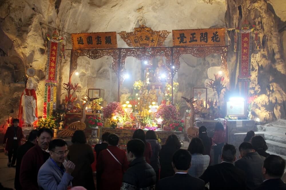 ティエン パゴダ - ティエン ウェルは、市の南にある大きな象の形をした山、ダイ トゥオン山の中心部にあります。山の中には、レ タン トン王の治世中に建てられた有名なティエン パゴダがある大きな洞窟があります。この塔はしばしばソン ティエン パゴダと呼ばれ、ランソン省ランソン市チラン区ホアンホアタム通りにあります。この塔は北宗に属します。 伝説によると、祖先が天から地上に降りてきて、人々を干ばつから救うためにダイトゥオン山を踏んで妖精の泉を作ったということで、ティエンパゴダと呼ばれています。そして、チェス盤に夢中になって天に帰るのを忘れて、ここで石になってしまいました。以来、地元の人々は衆生を救ってくれた恩を忘れずに、この地域の農耕の神として崇めるようになりました。毎年、村を記念し祝福するために大規模な祭りが開催されます。 山のふもとにある他の洞窟とは異なり、チュア ティエン洞窟は山の裏側にあり、塔に行くには、途中に妖精やライオンの頭など、さまざまな形の鍾乳石がある 65 段の石段を通過する必要があります。 、そしてコウモリは、異常に神聖で神秘的な感覚を生み出します。 この塔は、以前はパイルオン族によって設立された妖精の井戸の隣にあった寺院でしたが、老朽化のためソンティエン洞窟に移されました。パゴダには神の像、仏像、...才能ある作家が残した 13 個のマー ナイ石碑の体系があります。特に、ゴ・ティ・シの直筆の石碑「トラン・ドアン・バット・カーン」には、ランの8つの美しい場面が記されており、この場所もそのうちの1つです。 塔の中央には仏菩薩が安置されています。右の宮殿は英雄チャン・フン・ダオを崇拝し、左の宮殿は聖母を崇拝しています。 干ばつが続いていたとき、ファイルオンの人々に貴重な水源を与えるために、妖精の神が地上に降臨したという物語に関連しています。というのは、村の水牛飼いの子供たちに恩返しをするために、貧しい物乞いのふりをした彼に、彼らは一掴みの米を与えたからです。そこで妖精はかかとを踏んで、冷たい水を運ぶ妖精の井戸に変えました。 小さな井戸はすべて石造りで、水は一年中常に澄んでいます。人々は幸運を祈るために洞窟で妖精の水を三口飲むように言い合います。 毎年恒例の天塔祭りは、旧暦の 1 月 18 日に開催されます。 この塔は 1992 年に文化情報省によって国家歴史文化遺物として認められました。 出典: ランソン観光局