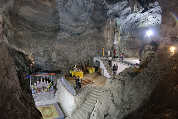タック ロン パゴダ (石龍) は、バッカン省チョモイ地区のカオキーコミューンにあります。ここは「洞窟の中の神聖な神殿」として知られています。この寺院には多くの美しい物語や伝説が残っています。 タック ロン パゴダには、毎年春に祭りに参加し、祝福と幸運を祈るために線香を捧げるために世界中から何千人もの観光客が集まります。北から南へ旅しても、タックロン・パゴダのような広くて清潔で風通しの良い洞窟の中にあるパゴダを見たことがないと言う人はたくさんいます。祭りに参加する僧侶や尼僧は洞窟に入り、数千人で仏陀を礼拝することができます。 話によれば、その昔、ヴィ フォン - バック トン コミューンの人々はカウ川を下って釈迦牟尼仏像を拾い、ピジャ ビョック山脈の頂上にある自分たちの村、ホア ソンで礼拝したということです。黄金の仏像はとても重いので、ヴィフオンに登るときはロープで引っ張らなければなりませんでした。今日、カオキーコミューンのボミ川に来ると、アレイが回転し続けて動くことができなくなりました。その夜はすでに暗く、像の処理をする人々は翌日の作業を続けるためにボミ園でテントを張って寝なければなりませんでした。翌朝目が覚めると、彼らはパニックに陥り、仏陀を見ることができませんでした。像を処理しようとする人は、大きなお香の束を焚いてこう祈らなければなりませんでした。「あなたがここに残りたいのであれば、私はあなたの願いに従いますが、将来の世代が香を崇拝できるように、あなたがどこに座っているかを教えてください」煙。"話し終えた線香の束と煙は川の向こう側に飛んでいき、永遠に山の中へ入っていきました。像を担いだ人は線香の煙を追い続け、美しく広々とした洞窟を発見しました。釈迦牟尼仏は最も高い場所に座っていました。 神聖な洞窟を知った村人たちは、この洞窟の中に神殿を建てました。この仏塔は、洞窟が岩山の中にあり、洞窟の入り口が開いた龍の口の形をしていることから、タックロン(石の龍)と呼ばれています。 パゴダには 2 つの主要な部分があります。最初の部分はティエンパゴダです。この塔は高いところにあり、山の麓から石段を登ると洞窟の入り口まで真っすぐに続いています。最上階には釈迦牟尼仏が祀られています。中央の空間の一番高い台座には、ホーおじさんを崇拝する像があります。パゴダの 2 番目の部分はアム パゴダです。アム パゴダへの道は山腹を迂回する必要があります。アム・パゴダの入り口はティエン・パゴダよりも少し狭いです。洞窟の内部はティエンパゴダほど広くありません。高さ約6メートル、幅約6メートルと推定され、内部には深い窪みがある。ティエン パゴダとアム パゴダには、仏陀を描いた天上の像が数多くあります。ティエン パゴダの中心部にある崖は、高くて豪華なパラソルが下に座る仏像を覆っているように、いくつかの部分に分かれています。 タハ ロン パゴダには多くの伝説が残っているだけでなく、歴史的遺物でもあり、対フランス抵抗戦争中のカオキー コミューンの人々の誇りでもあります。フランス植民地主義者に対する抵抗戦争中、ホーおじさんはここに 3 回来ました。 1954 年のディエンビエンフー作戦中、パゴダは武器輸送基地となり、わが軍の秘密兵器庫となりました。平和が回復し、塔は再び以前のように人々に崇拝されるようになりました。 毎年 1 月 7 日にはサッチ ロン パゴダ フェスティバルが開催され、家族や親戚の幸運と幸福を祈るために線香をあげに世界中から多くの観光客が集まります。 タックロン・パゴダはバッカンの美しい景観であるだけでなく、歴史的遺跡でもあります。この遺跡は、バッカン省の魅力的な文化観光地となるよう、多くの注目を集め、保護、修復されてきました。 出典: バックカン省電子情報ポータル