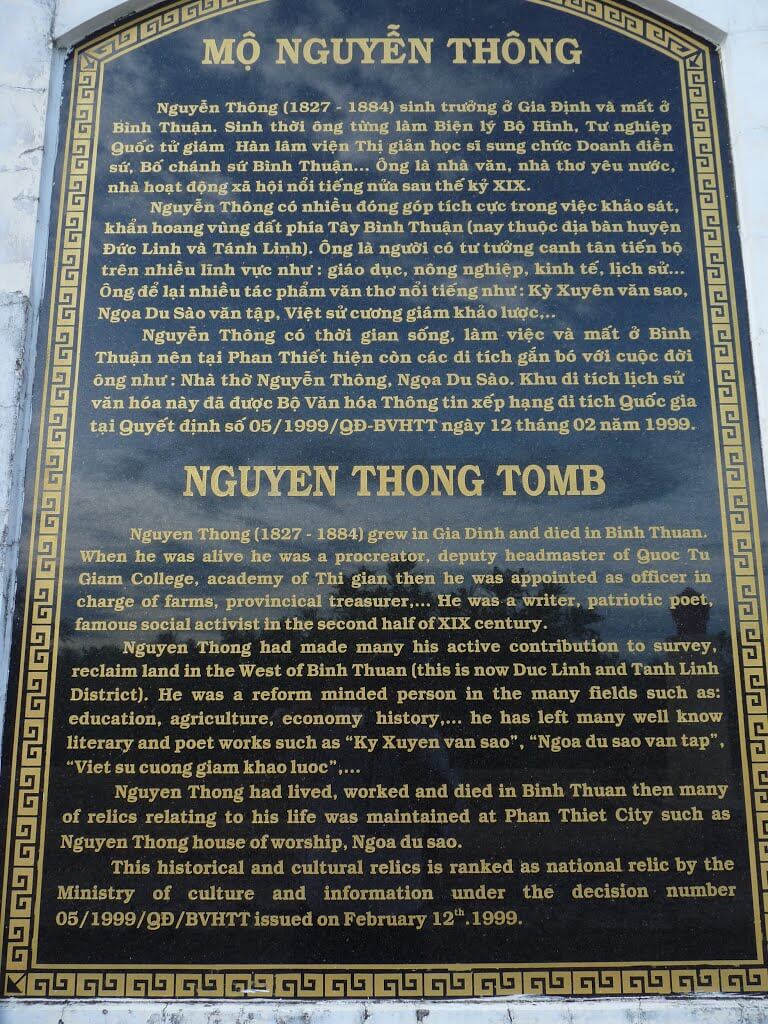 グエン トン記念地区は、ロンアン省チャウ タン地区、フー ガイ トリ コミューンのビン トリ 2 集落にあります。ここは、19 世紀後半の南リュック州の愛国的な知識人で偉大な文化活動家である、有名なグエン トンを記念する場所です。 グエン・トンの本名はグエン・トイ・トン、フルネームはハイ・ファン、愛称はキー・スエン、愛称はドン・アムで、1827年にフーコックタン州タンタイン地区のビンタイン村の貧しい儒家家庭に生まれた。アン、ザーディン(現在はロンアン省チャウタン地区、フーガイトリコミューン)。 子供の頃、グエン・トンはその知性と勤勉さで有名でした。 18歳のとき、家族はより良い勉強環境を求めて彼をフエに送りました。 1849年、彼はギアディン試験学校のフオン試験で学士号を取得したが、ホイ試験を受ける際にカードがインクで汚れてしまい不合格となった。グエン トンは 1851 年にアンザン省フーフォン地区の講師として公職に就きました。 1859年2月、フランスの植民地主義者がギアディン城塞を占領したとき、彼は南部で戦うために軍隊に加わり、トン・ザット・ヒエプ軍事総督の強力な補佐となった。キホアポストの陥落後(1861年2月)、彼はタンアンに戻り、地元の反乱軍指導者らとともにフランス軍と戦った。 1862年、グエン・トンはキン族の戦略家ファン・タイン・ジャンによってヴィン・ロン学校の校長に指名され、1863年から1864年7月までこの職を務めた。 1865年、コーチシナ西部の3つの県がフランス軍に侵略されたが、彼と多くのコーチシナ知識人は敵への協力を拒否したため、逮捕されビントゥアン省に連行された。 1867年、グエン・トンはカインホア殺人事件、次にクアンガイ殺人事件の担当に任命された。 1870年、彼はトゥアティエン学校の香水試験の審査員に参加し、その後法務省の司法長官、クアンガイ首席判事として勤務した。ここでグエン・トンは地元の暴君による汚職や人民の抑圧を排除するための措置を積極的に実施した。この行為は法廷で一部の高位官僚の権利を侵害したため、彼は罷免され、投獄され処刑されてから間もなく、国民に国王への告訴を求めた後に初めて無罪となった。 1873年、彼はビントゥアンで療養するために自宅に戻ることを求めた。 1874年、法廷は彼を復帰させ、儀式省で働くよう任命したが、フエに到着したときに病気になり、帰国しなければならなかった。 1876年、彼は首都に呼び戻され、クォック・トゥ・ギアムの職に就いた。 1877年、裁判所はラ・グーとバ・ダウ地域を取り戻す計画を承認したため、彼はビントゥアンへの軍事特使として派遣された。 1878年に持病が再発し、長期休暇を取った。 1880年、グエン・トンは地元当局と協力して少数民族の蜂起と南部からの移民の事件を処理するよう極秘に割り当てられた。またこの年、彼はドンチャウコミューンを設立し、詩を書いたり本を読んだりする場所としてゴア・ドゥ・サオを建設した。 1881 年、グエン トンはビントゥアン省の農業教育省副大臣に任命されました。翌年、彼はホン・ロー・トゥ・カーンに昇進した。 1884 年 8 月 27 日、グエン トンはゴア ドゥ サオ - ファン ティエット (ビン トゥアン) で亡くなりました。 グエン トン記念地区は、2001 年 1 月 19 日に文化情報省によって国家記念物に指定されました。 出典: ロンアン省党委員会の電子情報ポータル