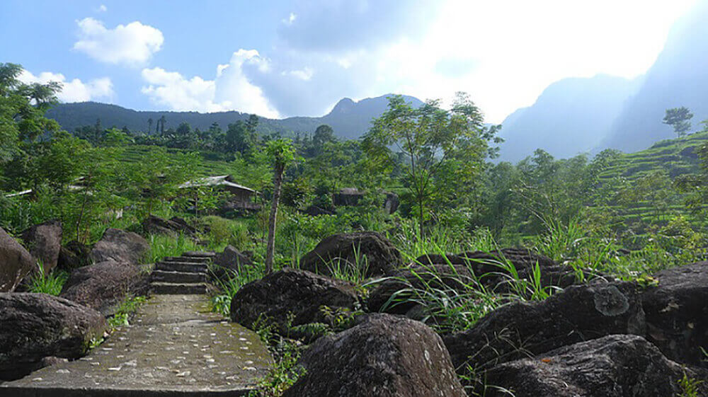 古代石浜の遺跡は、新満地区のナムダンコミューン、ナムダン村にあります。地元のヌン語によると、「ナムダン」は水源地域を意味します。南丹古石場は2008年2月21日、文化体育観光部によって国家遺物に指定された。 ナムダン古代石場は、考古学研究所とハザン博物館の科学者によって 2004 年に発見されました。広大な渓谷の中に、数千年前に絵が刻まれた石造りの遺跡があります。サパ(ラオカイ)の古代石遺跡とは異なり、ナムダン古代石場はまだほとんど知られていませんが、絵の美しさと石にまつわる謎は、同様に魅力的で魅力的です。 これらの巨石遺跡は、タイダン山脈とナムダン丘陵の間、ナムクーン川のすぐ隣にあります。川岸には多様で独特な形をした大きな堆積岩がたくさんあります。平らなチェス盤のような岩もあれば、カウンターや椅子のような岩もあります。石板の表面や端には自然の風化状態が残っています。 いくつかの岩には絵や言葉が刻まれているため、この地域の人々はこの地域をナライ(言葉の多い野)と呼んでいます。彫刻は非常に多様で、古代芸術の視覚的なスタイルに独自の美しさをもたらしています。 80以上の彫刻や絵に加えて、岩の表面には平均直径5〜6cm、深さ1〜2cmの約80個の穴があり、穴は主に岩の西端に分布しています。 。それぞれの岩は神秘であり、信仰の痕跡を刻むスリリングな物語と結びついており、この地域の少数民族の神への祈りの有効性を示しています。 この石原には、7 つの大きな石の板と 2 つの巨石 (非常に大きな岩) が含まれており、79 の形状が刻まれ、彩色されています。その中には、6 つの正方形の碑文、2 つの円形の碑文、40 の円形、1 つの正方形、2 つの長方形、段々畑に似た 6 つの彫刻が施された平行な彫刻が含まれます。 、女性の活力を象徴する5つの像、残りは等身大と同等の大きさの人間の足であり、足の指が深く刻まれており、その人物は両腕を上げ、足を広げた位置にあります... ナムダンの村の長老たちによると、「ここでは石を崇拝する長年の習慣があり、その神秘的な古代の石を敢えて犯す人は誰もいないのです。」それに加えて、地元の人々は、古代の石の海岸が神々が「明かされない天の秘密」を守る場所であるという伝説を何世代にもわたって伝えてきました。人々は岩に描かれた絵を「天の神殿」と考えており、この地は誰も軽視できない「聖地」である。 これまでのところ、ベトナムでは先史時代の視覚芸術の痕跡はほとんど見つかっていません。科学者らによると、ナムダンの巨石遺物は約2000年前に遡るという。これはコミュニティのリーダーの墓である場合もあれば、コミュニティの神、祖先、著名人を崇拝するための聖地である場合もあります。さらに、ナムダン巨石遺物も先史時代の住民の石神崇拝と関係がある可能性が高い。 南丹古石場は文化、歴史、信仰において特別な価値があり、科学研究価値も高いと言えます。 出典: ハザン省文化情報観光局