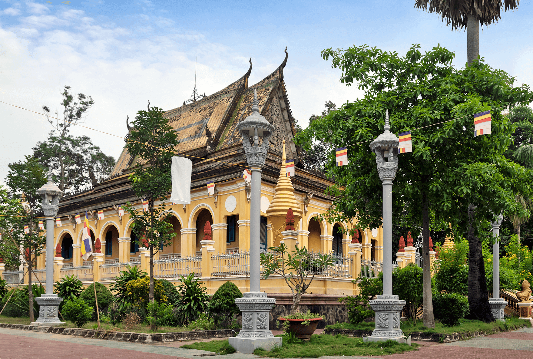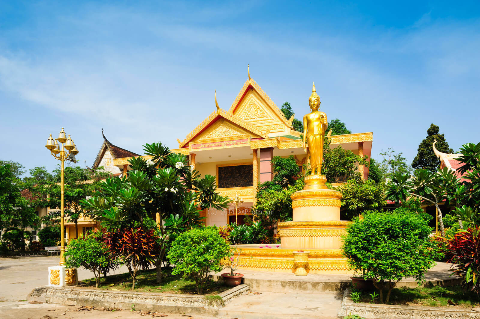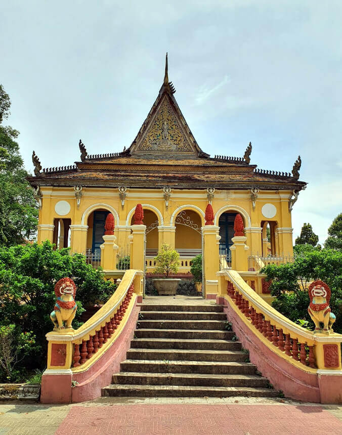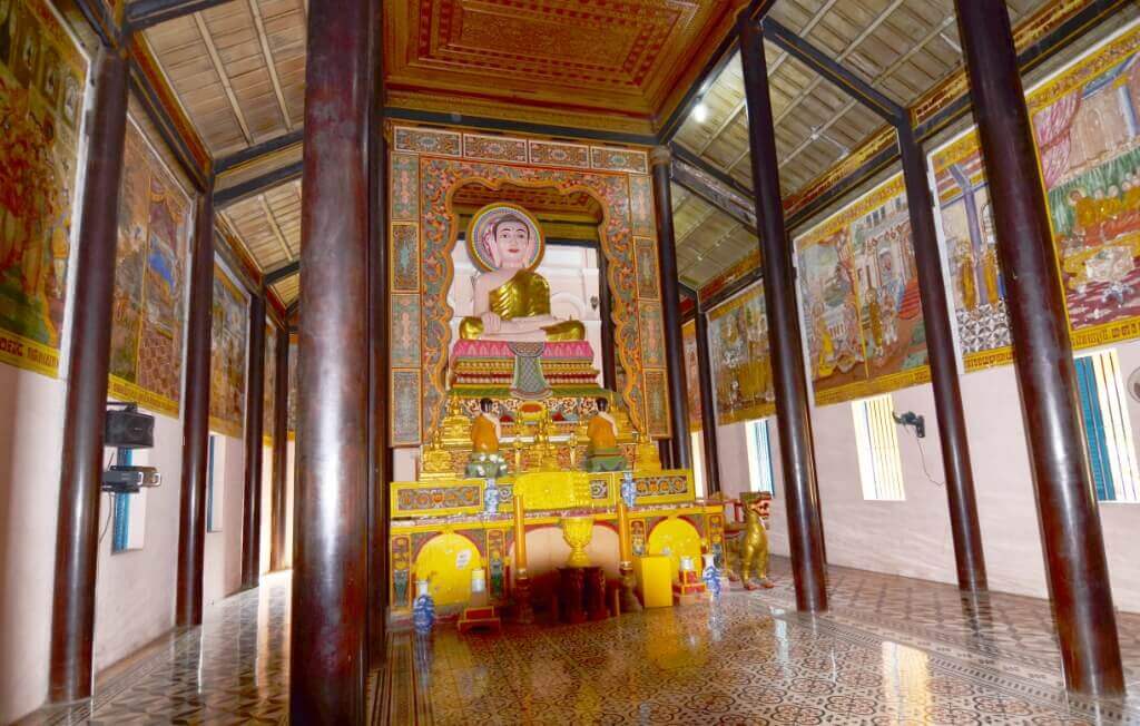 オン マット パゴダはチャビン市 1 区にあります。この寺院のサンスクリット名は「Bodhisàlaraja」ですが、クメール人は今でもこの寺院を「ワット コンポン」と呼び、ベン寺院と訳されます。オン マット パゴダは地方のクメール仏教センターであり、マハニカイ クメール仏教管理局の所在地として選ばれました。 20 世紀初頭、カトリック大聖堂が植民地政府によって投資され建設されたとき、クメール人コミュニティも力を合わせて、文化的価値を尊重する形で厳粛で雄大なオン マット パゴダを建設しました。 この塔は、約 1.3 ヘクタールの敷地内にあり、閉じられた壁に囲まれ、本堂を囲む多くの調和のとれた構造で構成されています。 オン マット パゴダの門は、8 本の柱が門の屋根を支え、門を中央の広いメイン通路と両側の 2 つの小さな通路に分けている美しい建築です。各柱の上部には、常に笑顔でゲストを歓迎する二つの顔を持つキーノエンジェルバードが飾られています。門の両側には、徐々に下がったり広がったりする 2 つの壁があり、伝統的なクメール美術のスタイルで一対の 7 頭の蛇が装飾されています。 オンマットパゴダの本堂は東を向いており、3 段の基礎の上に建てられています。高さ 1.35 メートルの青い石の基礎は、高さ約 2 メートルの鉄のフェンスで囲まれており、フェンスの支柱の両端には四面のブラマ像があります。 本堂内の祭壇には、高さ 4.4 メートルの蓮華座に座った荘厳な釈迦牟尼仏像が安置されています。長さ5メートル、幅4.3メートル。この大きな仏像の周りには、石、セメント、青銅、木など、さまざまな素材で作られた、さまざまな大きさや位置の小さな仏像がたくさんあります。 メインホールの裏手には、古代南クメール族の伝統的な木造高床式住居のユニークな建築様式を持つ図書館があります。中央と縦方向の 24 本の柱頭すべてに精巧な彫刻が施され、金色の朱色が塗られています。図書館には 3 つのコンパートメントがあり、中央のコンパートメントには多くの古い参考文献を含む書籍が保管されています。両側の 2 つの部屋は、プムソックの僧侶や親族が読書や勉強をする場所です。 オン マット パゴダのキャンパス内には、僧院、マハニカイ仏教管理事務所、講堂、ネアクタ礼拝堂、記念塔などの多くの建造物もあります。 オンマットパゴダから始まったこの運動は、フランス植民地主義者の「無知」政策に対抗して、サンスクリット語とクメール語の教育と学習を要求する運動で、州内のパゴダや村全体に広がりました。その後、クメール語の教育と学習だけでなく国語も教育に組み込まれるようになり、少数民族の子どもたちが学ぶのにより有利な条件が生み出され、民族間の平等の権利がよりよく実現されるようになりました。 オン マット パゴダの何世代ものクメール僧侶たちは、読み書きや知識を学ぶだけでなく、愛国心や侵略者を憎む意志を高めることにも重点を置きました。したがって、このパゴダは、この県の僧侶とクメール人の政治闘争運動の出発点であり、抵抗運動中に敵の兵士として奉仕しなければならない県のあらゆる民族グループの多くの若者を守る場所でもあります。アメリカとの戦争。だからこそ、春のマウタン攻撃が行われていたとき、敵は爆撃機を送り込んで大きな被害をもたらしたのです。 オン マット パゴダは、2009 年に文化スポーツ観光省によって国家歴史文化遺産に指定されました。 出典: チャビン省電子情報ポータル