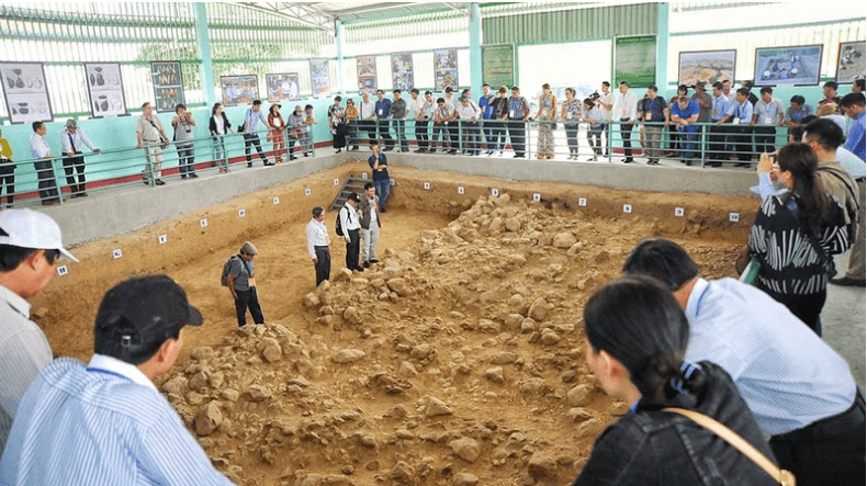 Gia Lai ProvinceのKhe町にある古い豊かなTung -Go Da Monument Complexには、ビン病棟のゴーダレリックと、Xuanの12 Roc Tung Relics、Che An Khe Town、Gia Lai州が含まれています。特に、発掘された4つの場所はGo Da、Rich Tung 1、Rich Tung 4、Rich Tung 7です。 石 Gia Lai州のKhe町のBinh区に位置し、座標13058’19,2”北緯13058’19,2、1080 39'05,1” Kinh Dong、421.5mの絶対高さ。記念碑は右岸にあり、BA川から約1.5 km、BA川の丘の地形にあり、蓄積するために疲れ果てています。モニュメントは、ベトナム考古学研究所とロシア科学アカデミーのノボシビルスクの考古学研究所と協力して、Gia Lai州の文化、スポーツ、観光局によって、94m2の総面積で2回発掘されました。マウンドの遺物には、石器とmet石が含まれている花崗岩で作られた1つの文化的層があります。いくつかの一般的な特徴:それらのほとんどは、石英、石英、大規模、傑出したタイプで作られています。2字の先端、3つのスピアヘッド、すりおろしたツール、タイトなツール、うつ病、ホンゲック、野球は、初歩的、より少ないチューニング、他の形状、そして現在はduh hahaのような古い石のモニュメントよりも古いです。石は遺物であり、ここから現代の人々(ホモ・サピエンス)への人類の進化において、ホモエレクトスの段階で、古い石の住民の道具を操作し、人類の最初の文化的証拠です。 ラッシュ1 Xuan an Communeに位置し、座標14002'25,3 "北緯1080 40'82,2” Kinh Dong、絶対高さ556mです。左岸に位置し、BA川から約2.5km離れて、3回発掘されました(2016年、2017年、2018年)。 2016年、48m2(6m x 8m)の面積を持つ穴1を発掘します。 2017年、70m2(10m x 7m)の面積を持つ穴2を発掘し、1.2グレードに掘るときにその場にディスプレイハウスを建設することを選択しました。深さ0.8m -1.1m(文化的高速道路); 2018年、レイヤー2.2の深さで、ホール2の70m2以内に20m2を発掘しました。残りの50m2は屋根に保存されています。 Rich Tung 1は住居の遺物であり、操作の場所であり、その居住地の要素は非常に典型的で、文化的な床の表面に示されています。 Go Daのような基本的な地質構造の観点から、遺跡1の遺跡は、更新世の時代に属し、2つの側面のゴーストツールの存在の特徴、すべての片側、先の尖った鼻、スクラップ、チョッパーなどについて。 Rich Tung 1は住居の遺物であり、操作の場所であり、その居住地の要素は非常に典型的で、文化的な床の表面に示されています。 ラッシュ4 14002'2,7 "北緯14002,7"と108040’35,7”の座標に位置し、高さ430mのキンドン、RO ROT 1から約500m、BA川の左岸に位置しています。記念碑は2015年11月に検出され、2016年、2017年、2018年に発掘されました。RocXung4 Relicの4ピット発掘の結果は、穴に層状構造である同じ特性であり、居住および製造ツールの特性を反映していることを示しました。 Tung 4の場所にある石器の複合施設は、基本的にRich Tung 1とGo Daに似ています。 Tung 7 Xuan an Commune、Kheの町に位置し、14001’452”北緯を調整し、108041’11.3” Kinh Dong、438mの高さ。記念碑は2016年に発見され、総面積が40m2で2回(2017年と2018年)発掘されました。掘削結果は、多くの石器を獲得し、締め、先頭、スクラップ、二重のゲージツール、リンパ節腫瘍、および多くのうつ病を取得しました。ラッシュ7には、Khe Valleyで掘削された場所との類似性の特徴、性質、日付があります。 Roc Chung 7 Relicsの発見と検出は、現在Khe Valleyの丘で知られている古い石の場所のリストに追加され、ベトナムの人類の古代の人々の存在の証拠を追加しました。 KHEの古い石の考古学的モニュメントは、海抜420〜450mの平均的なマウンドの丘に分布しており、高原から中央ベトナムの沿岸平野への移行に属しています。 Khe Stoneの古いモニュメントの種類は、材料の統一性、種類の安定性、製造技術、およびKHEテクノロジーと名付けられた古い石ベースの産業の共通の特徴を持っています。 KHEテクノロジーは、川の小石、地元の小川、大きなサイズ、硬い石、微細粒子、主に石英と石英から作られた複雑な石器が特徴です。石のツールは、典型的なタイプの基本的なものです。2つのサイドジェットツール、Handxe(Handaxe)、Spearhead(Pick)、先の尖った鼻、原油(チョッパー)。特に、粗いタイトなツールは、主にアジアで分布しています。アジアでは、古い西部の石用の2つの側面で顕著な手型のツールです。一方、先の尖ったスピアヘッドとスピアヘッドは、KHEの古い石で最も明確です。 上記の典型的な価値により、Roc Tung -go da、Gia Lai Provinceは、2020年11月4日に、決定No. 3237/決定 - 文化、スポーツ、観光文化の下で、国立考古学記念碑の文化、スポーツ、観光大臣によってランク付けされました。 2022年12月29日、首相のファム・ミン・チニは、ギア・ライのKheの町でRo Xoc-Gòdaの「特別な国定記念物」の認識に署名しました。 文化遺産の源。