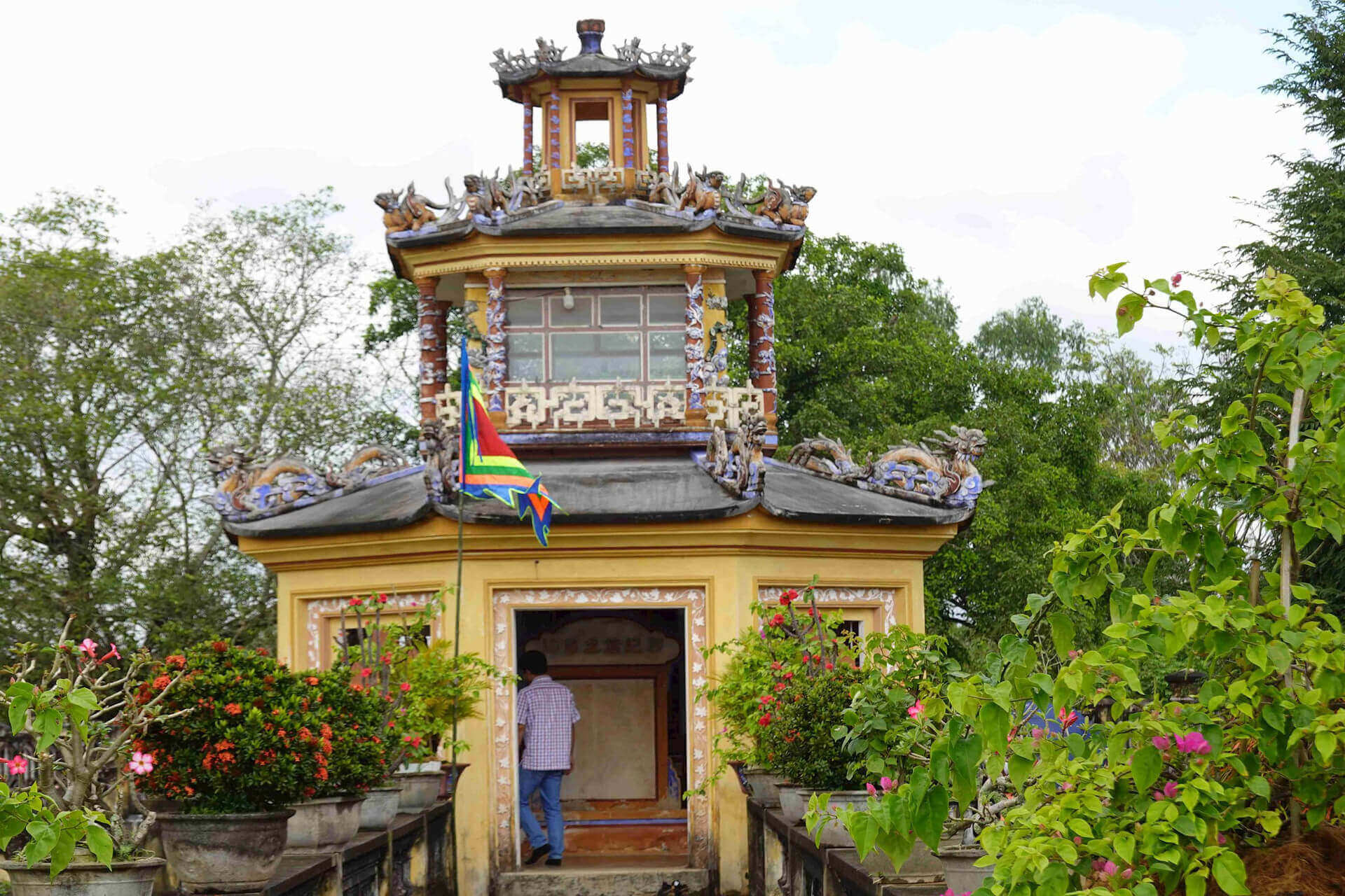 ビンキン共同体としても知られるグエン・ヒュ・カイン寺院はドンナイ川の左岸に位置し、以前はチャンビエン州ビンホアン村のビンキン村に属し、現在はビエンホア州ヒエップホア村のニーホア村に属していた。 1991 年 3 月 25 日に文化情報スポーツ観光省によって国家歴史遺物に指定されました。 グエン・フ・チャン寺院は、現在の寺院から約400メートル南に位置し、当初は板張りの壁と陰陽瓦屋根の小規模な寺院でした。文書には次のように書かれています。寺院はトゥドゥック 4 年 (1851 年) に初めて再建されました。 1923 年までに、寺院は現在の場所に再建されました。 グエン・フ・カインは、1650 年にタインホア省トンソン地区のギアミウで、王朝の多くの有名な将軍がいる家系に生まれました。彼は文武両道の人であり、数々の偉業を成し遂げ、グエン卿から信頼され、愛され、尊敬されていました。マウ ダン (1698 年) の春、彼はまだ荒廃していたダン チョンに侵攻するというグエン卿の命令に従いました。ドンナイに到着した彼は、クーラオポー(現在のヒエップホアコミューン)に本拠地を設置した。ドンナイの土地をフックロン地区として取り、チャンビエン宮殿を建て、サイゴンの土地をタンビン地区として取り、フィエントラン宮殿を建て、土地は数千マイルに拡張されました。彼は定住する移民を募り、行政機構を段階的かつ組織的に組織し、土地の埋め立てを奨励し、クーラオポーをこの世紀を通じて最も活気のある最も活気のある港町の一つに発展させることを促進し、南部の新しい土地を正式に併合しました。 Dai Vietマップに追加します。南部の侵略から帰還した後、翌年、彼は再びグエン・フック・チュー卿の命令に従い、チャンラップ王を制圧し南部国境地域を維持する軍隊を率いました。 Canh Thin 年 (1700 年) 4 月、任務を終えてラックガム (ティエンザン) に戻る途中、彼は病気になり、陰暦 5 月 16 日に 51 歳で亡くなりました。古い。埋葬のために故郷に向かう途中、彼の棺は、地元の人々が最後にもう一度彼に別れを告げる機会を持つことができるよう、かつて彼が本拠地を置いていたクーラオフォーの土地に停められた。マンダリンの共同住宅には、地元の人々がこの出来事を偲んで墓を建てました。グエン・フ・カイン氏の訃報を聞いたとき、グエン卿は非常に残念に思い、彼に「タン侯爵式」という町宰相の高官の称号を授与し、その位牌をタイの寺院に祀らせた。 出典: ドンナイ電子新聞