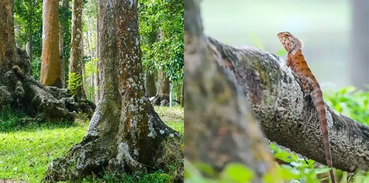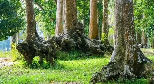 Những rễ cây cổ thụ tại đây trồi lên trên mặt đất từ 1 - 2m và to lớn đến mức phải nhiều người ôm mới hết. Những rễ cây trồi lên mặt đất là do hiện tượng xói mòn đất trong một thời gian dài. Một số cây tạo thành các hang hốc đủ rộng để người chui lọt. Mật độ cây dày đặc với độ che phủ cao tạo cảm giác như một cánh rừng nguyên sinh nằm trong thành phố.