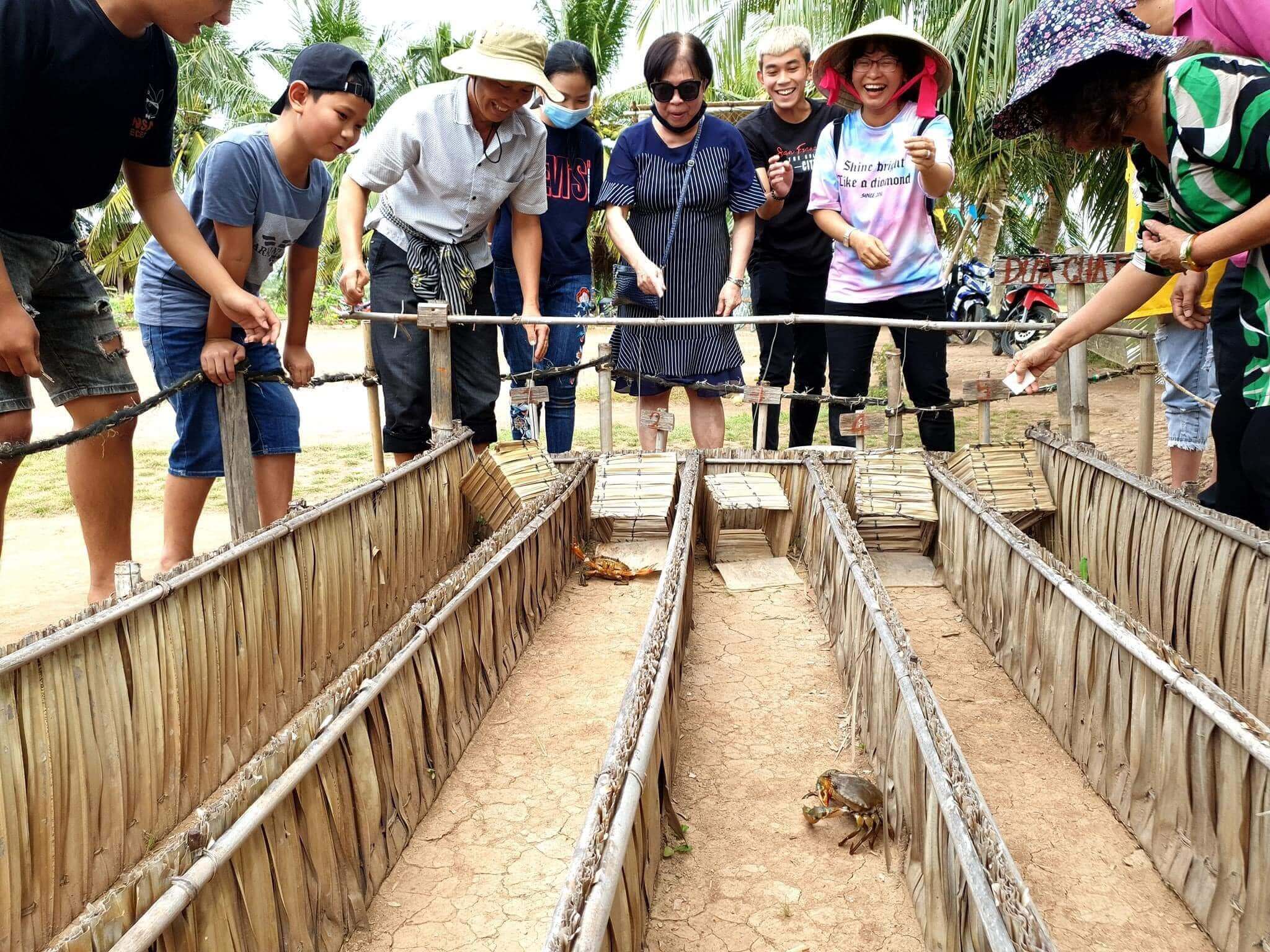 또한 방문객들은 물고기,새우 잡기 등의 활동도 경험할 수 있습니다. 코코넛 잎으로 제품 만들기,민속 게임(캔 놀이,구슬 쏘기,카우 카우 당기기,젓가락 연주 등)에 참여해 어린 시절의 추억을 되새기세요.