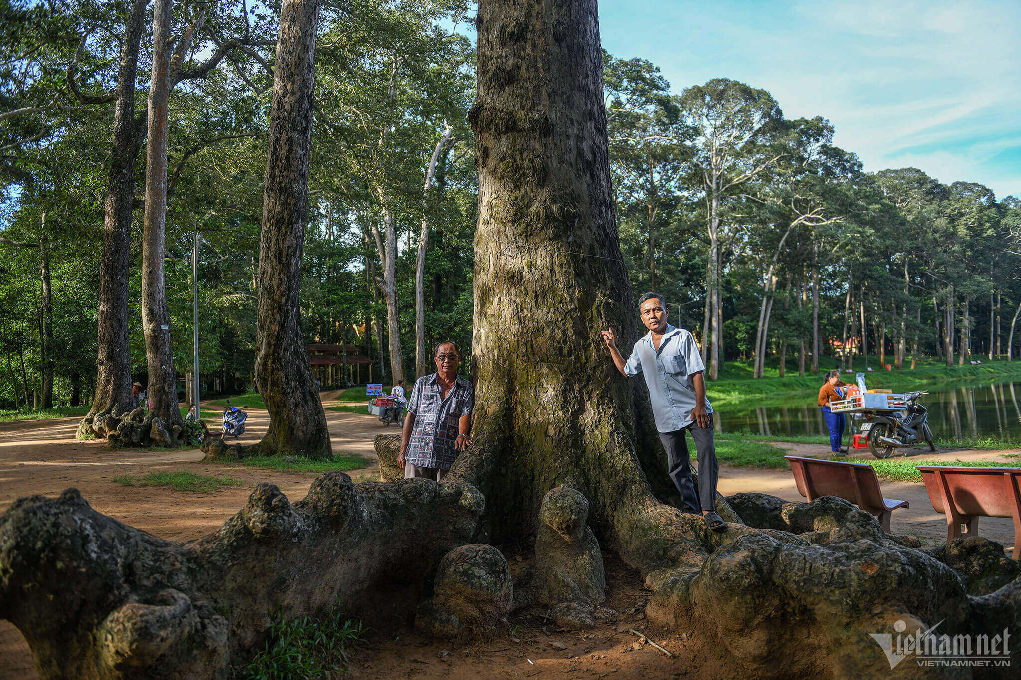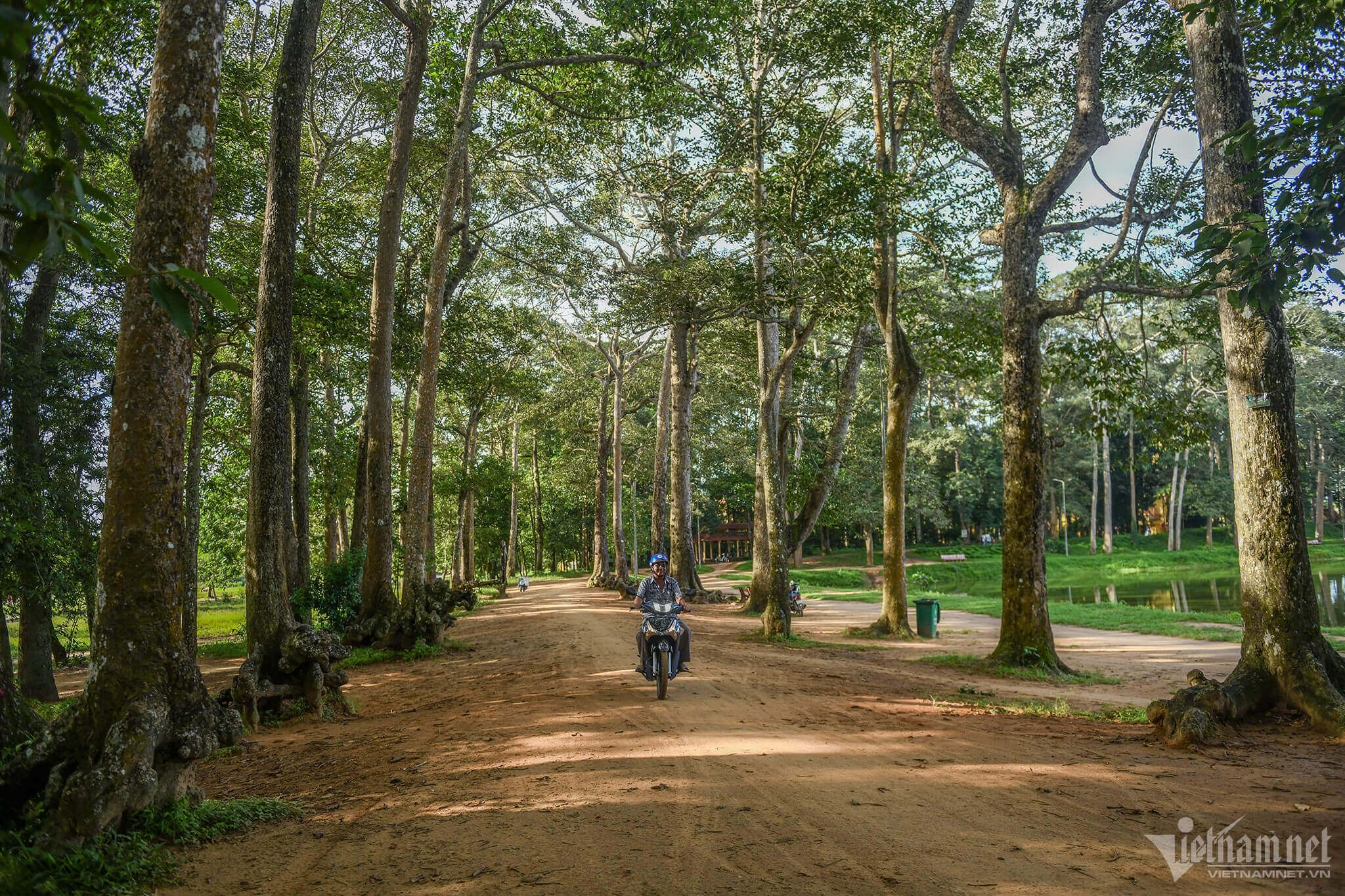 바옴(Ba Om) 연못 풍경 단지는 수면 지역,연못 제방,별나무 숲의 3개 부분으로 구성되어 있으며,그 주변에는 고대 기름나무가 많이 늘어서 있습니다.