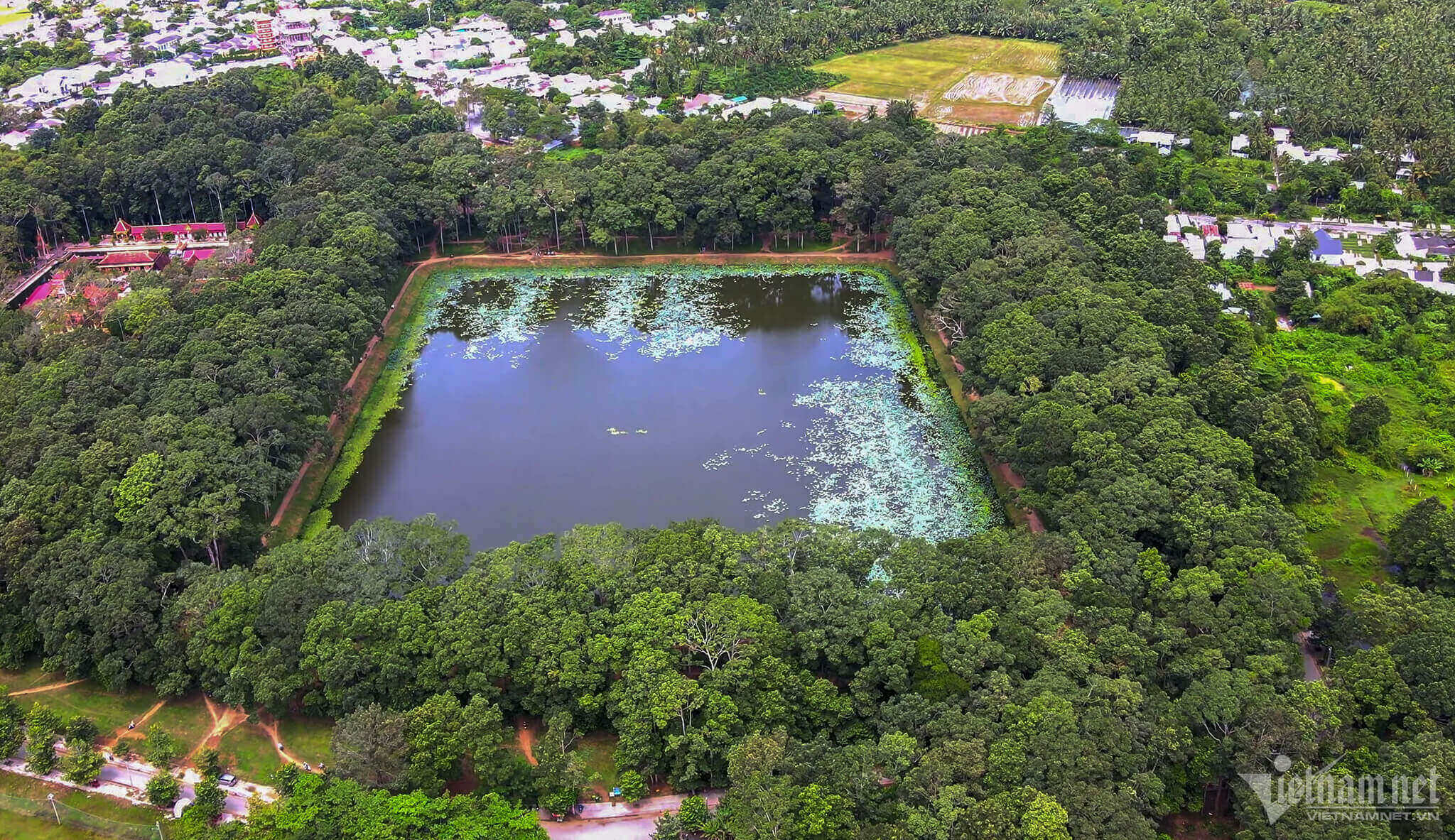 수세기 전에 사람들이 일상 생활과 농업 생산을 위한 물을 저장하기 위해 파낸 300헥타르가 넘는 연못은 짜빈의 독특한 명승지입니다.
