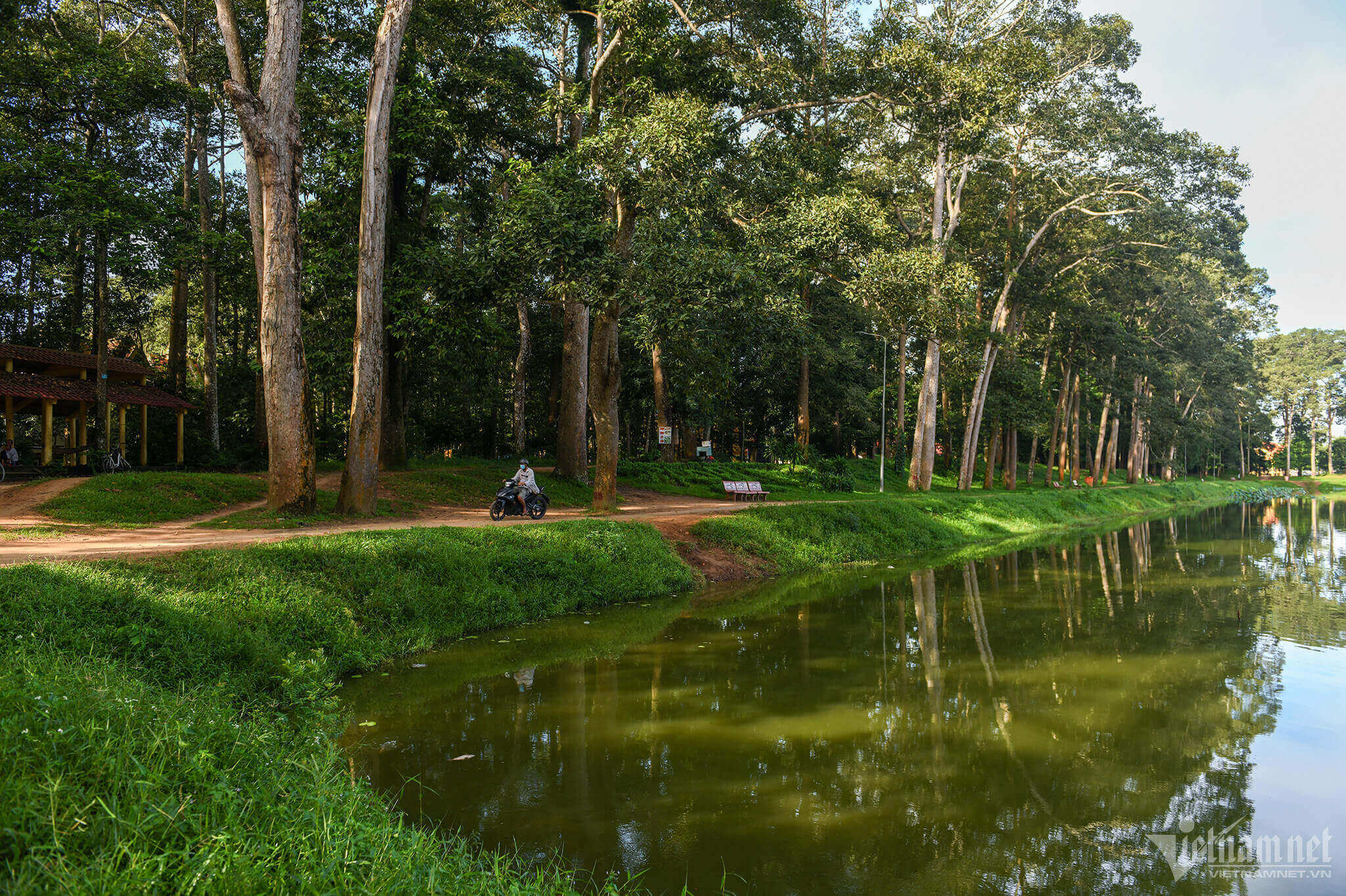 매일 아침 방문객들은 나무 그늘 아래서 시원한 공기를 마시며 산책하고,운동하고,앉아서 이야기를 나누고 있습니다.