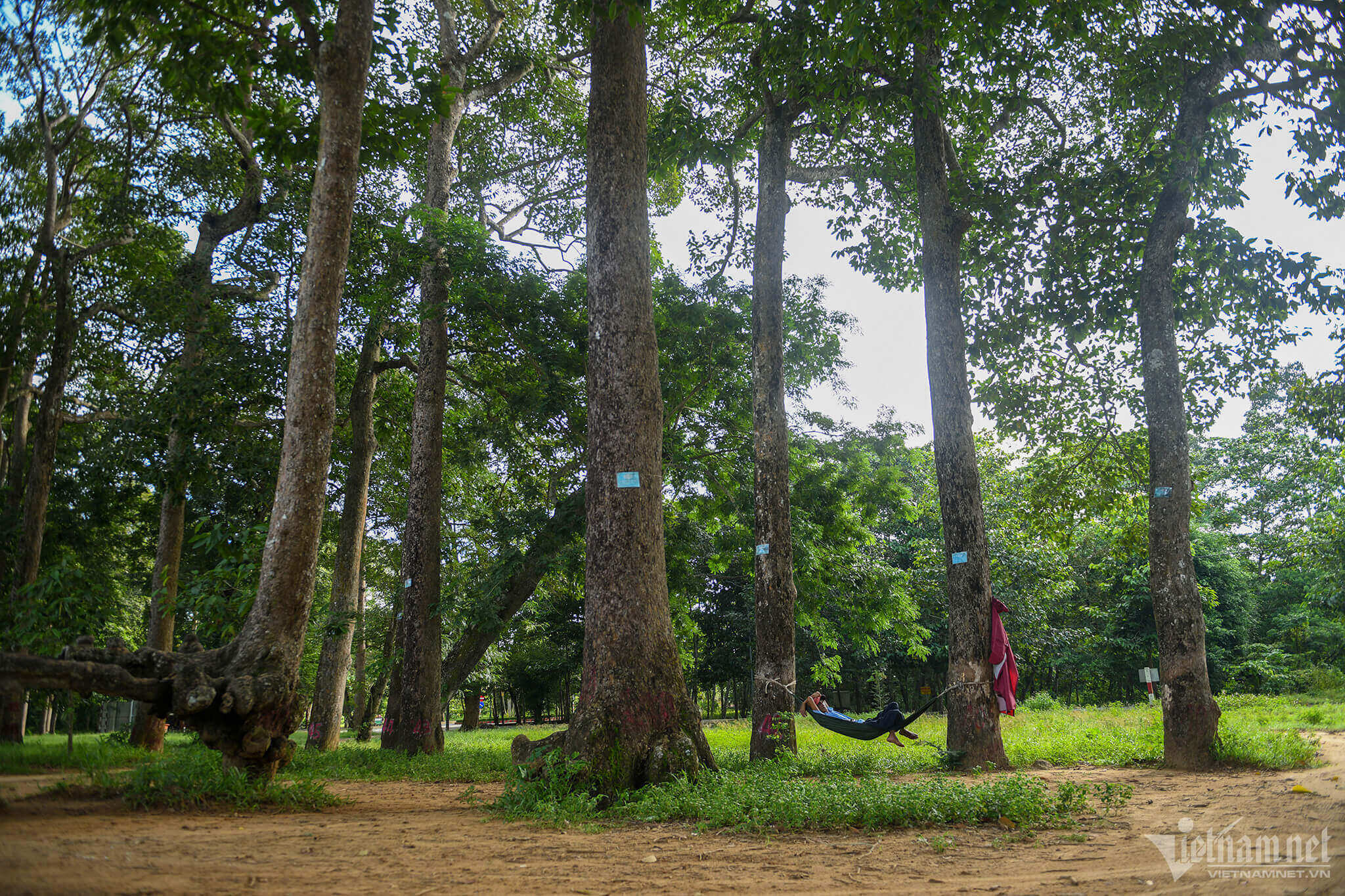 연못 주변의 고대 별나무와 기름나무에는 번호가 매겨져 있어 관리가 용이합니다.