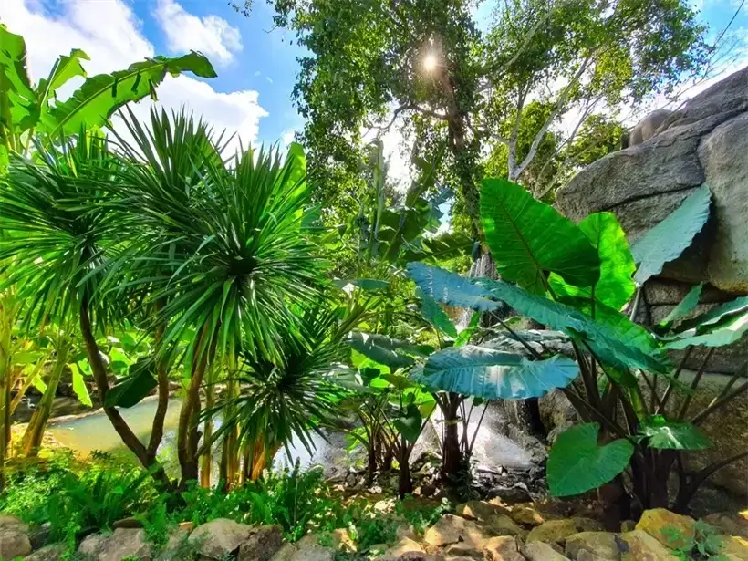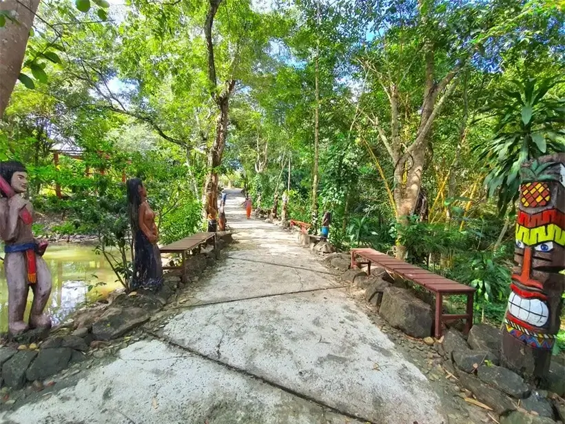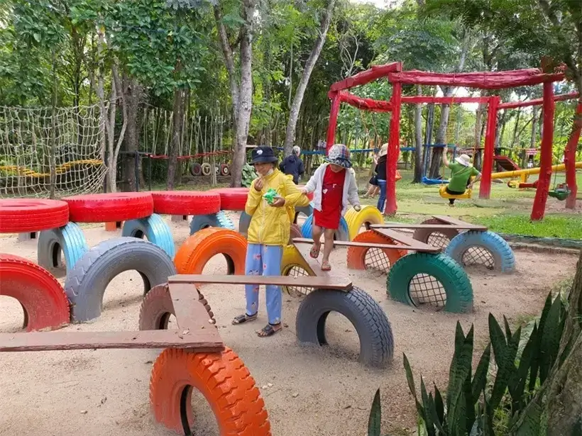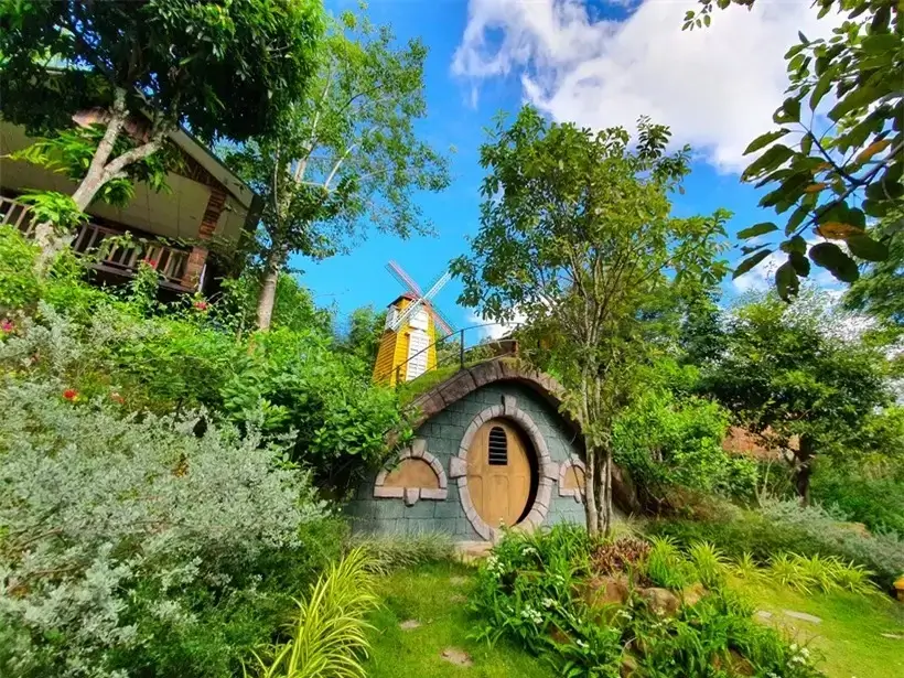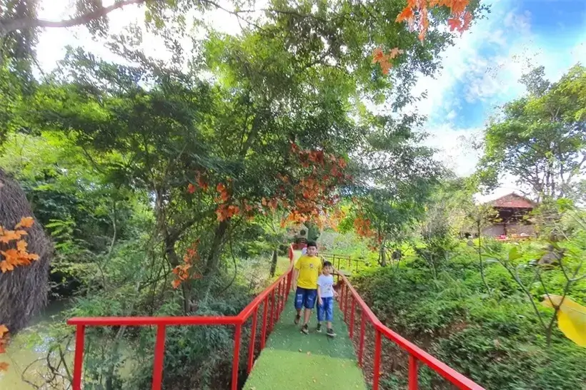 호수를 가로지르는 빨간색으로 칠해진 나무 다리의 구석구석,발리식 새둥지 그네,알록달록한 낡은 타이어 등이 눈길을 사로잡으며 방문객의 '가상 생활' 요구에 부응합니다.