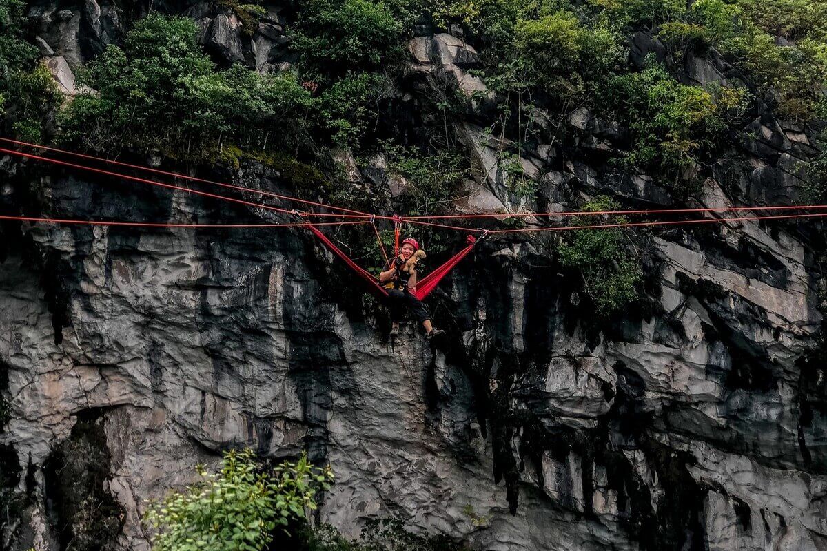 구멍 아래에는 식물이 다양하고 양치류가 많아 마치 시간여행을 하고 선사시대를 탐험하는 듯한 느낌을 줍니다. Meo Vac 싱크홀에서 집라인을 체험하고 있는 관광객 Minh Quang 씨는 그의 그룹이 구멍 입구 위로 집라인(도르래의 일종) 두 개를 뻗었다고 말했습니다. 둘 다 안전을 보장하고 긴장감을 보장합니다. 집라인,앵커 포인트,상하 로프 역할을 하는 정적 로프인 약 300m의 로프를 사용합니다. 디자인 시간은 4~5시간. (사진: 민꽝).
