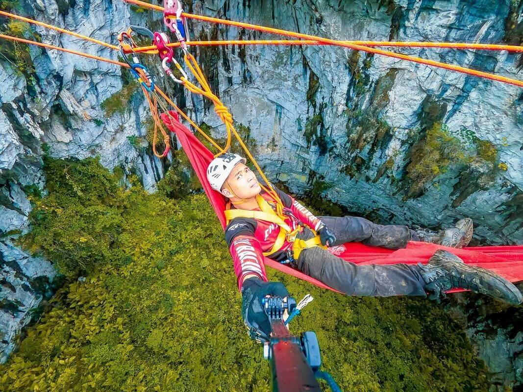 하이 씨와 그의 동료들이 구멍 바닥에 도달하는 데 몇 시간이 걸렸습니다. "아래에서 올려다보니 자연에 비해 너무 작게 느껴졌습니다. 하늘이 분화구 크기만큼 줄어들었습니다"라고 하이 씨는 말했습니다. (사진: Giap Van Hai).