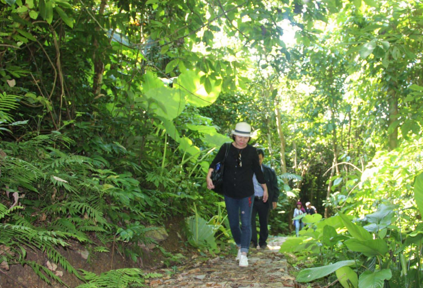 관광객들은 쿠오이 핀 동굴의 아름다움을 탐험하기 위해 오르막길을 걷습니다. 사진: Vu Kien/Tuyen Quang 성 외부 정보 페이지