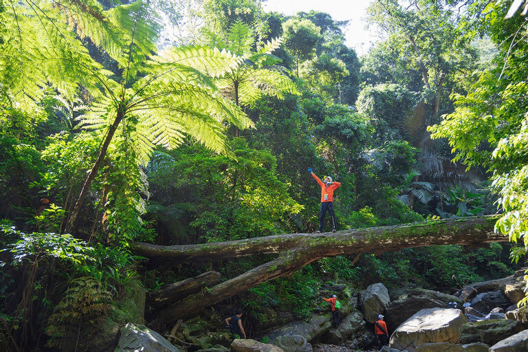 Duong Cam Stream에는 많은 오래된 나무들이 쓰러져 개울을 가로질러 자연적인 다리가 되어 Truong Son 숲의 낭만적이고 아름다운 풍경을 만들어냅니다.